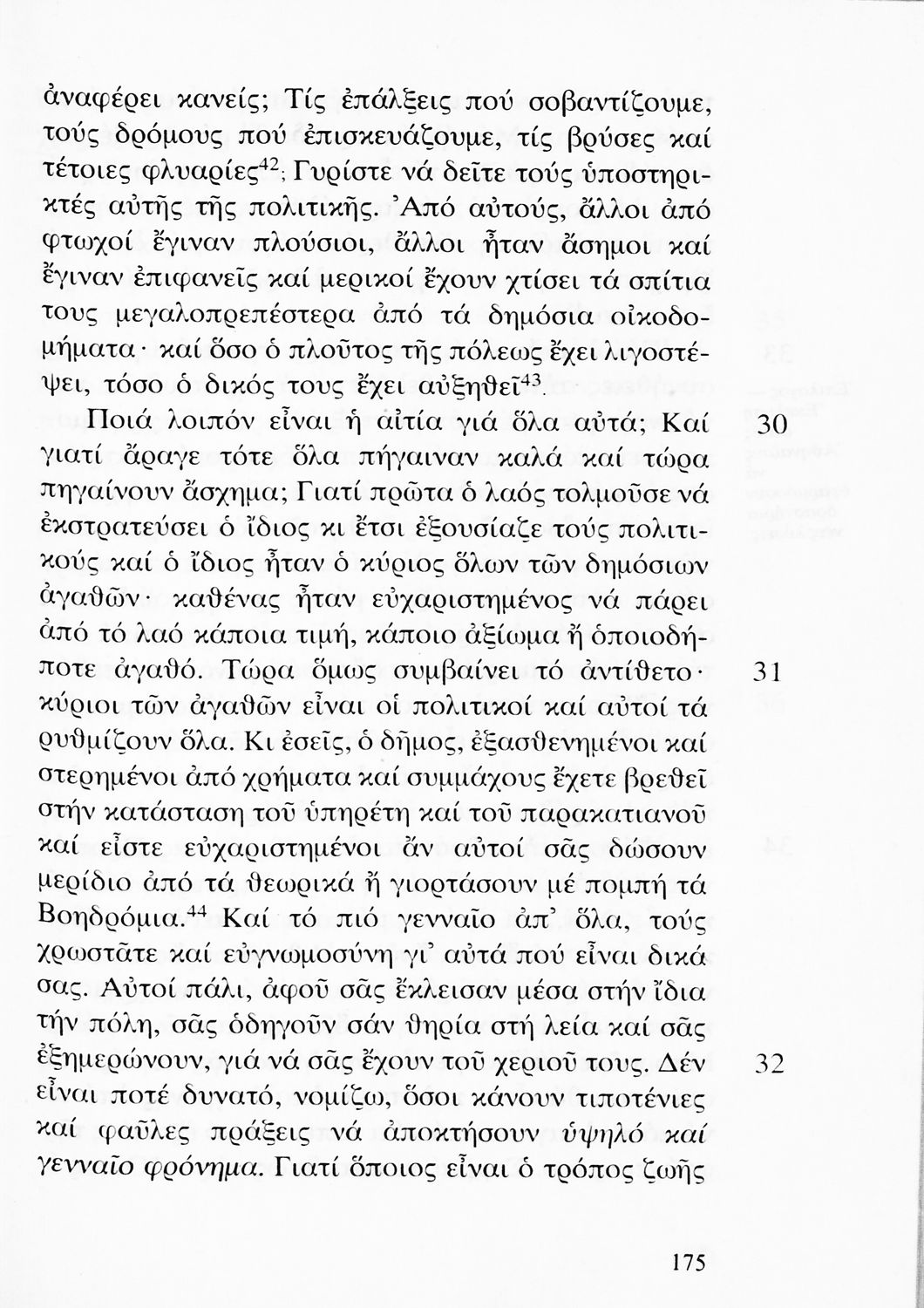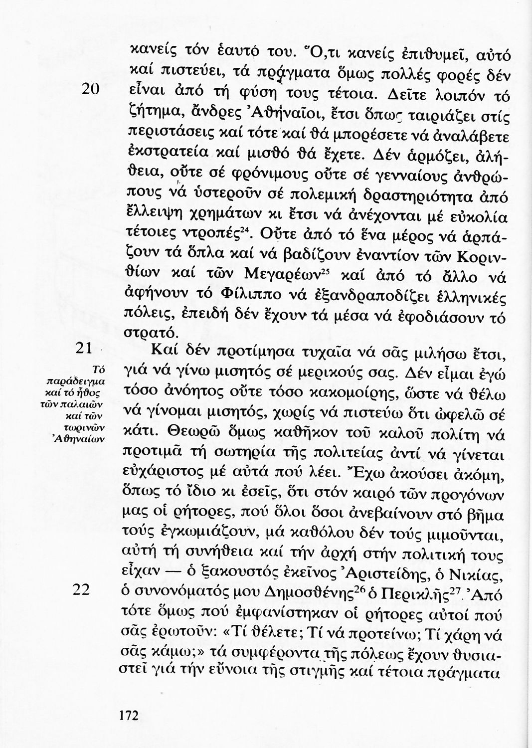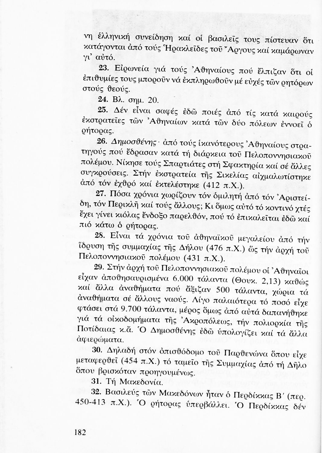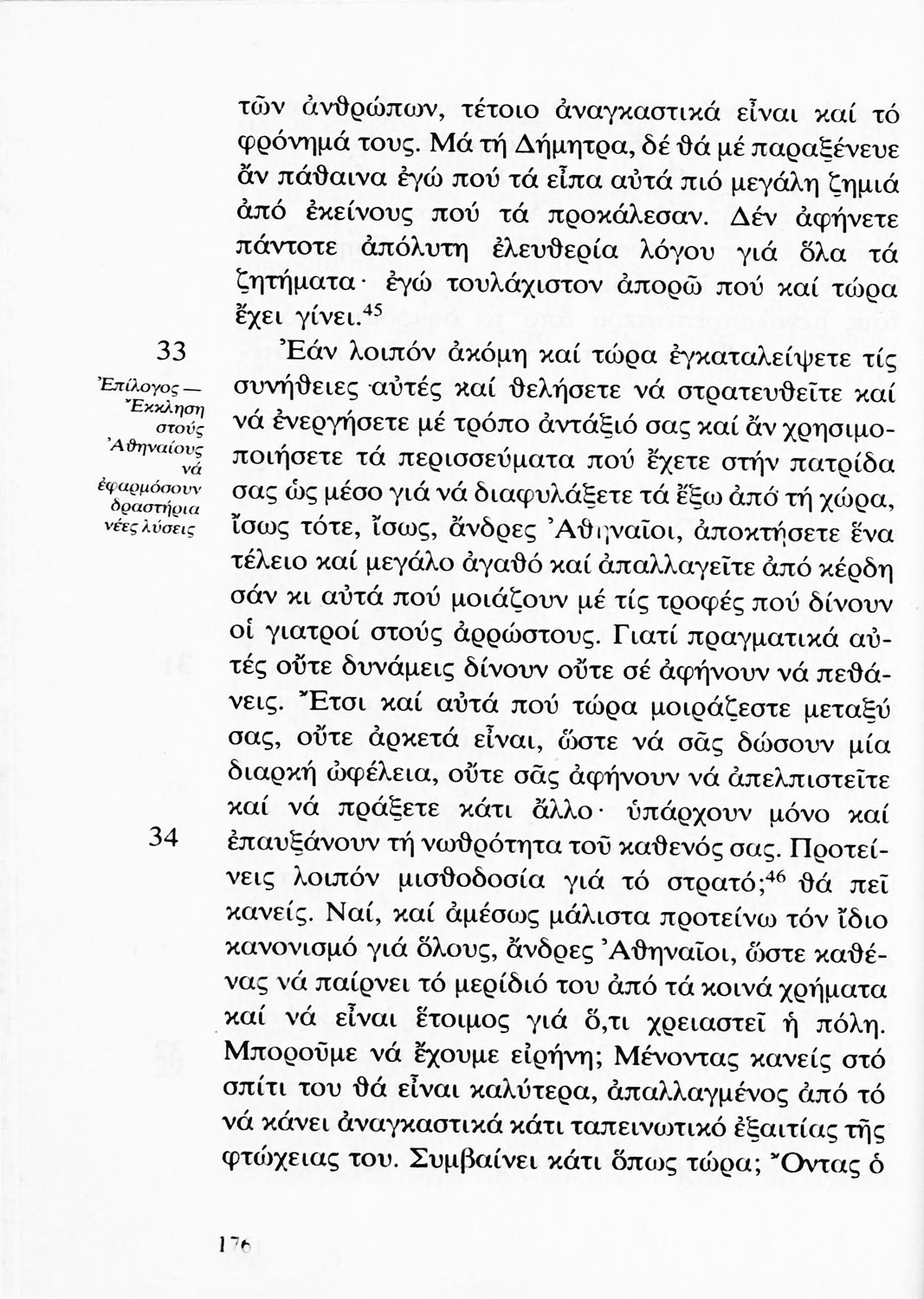 Σχολικό εγχειρίδιο Αρχαίων Ελληνικών για τη Β΄ Γυμνασίου που περιλαμβάνει Λόγους των Λυσία, Ισοκράτη και Δημοσθένη και αποσπάσματα από τα Ελληνικά του Ξενοφώντα σε μετάφραση, εισαγωγή στη ζωή και το έργο τους και ερμηνευτικές σημειώσεις.
