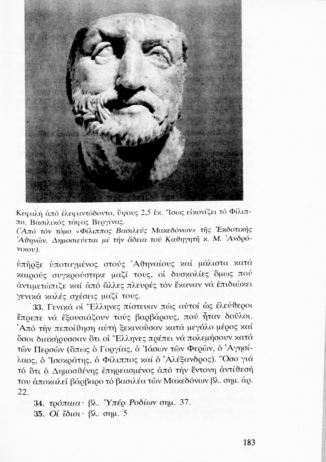 Σχολικό εγχειρίδιο Αρχαίων Ελληνικών Β΄ Γυμνασίου που περιέχει τους Λόγους του Δημοσθένη Φιλιππικός Α΄ και Γ΄, και ερμηνευτικές και πραγματολογικές παρατηρήσεις.