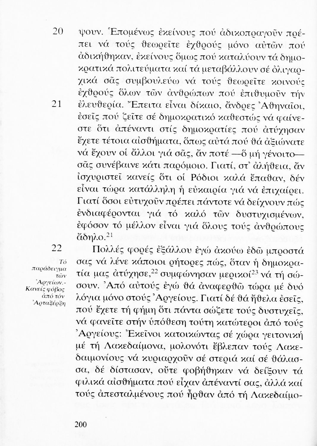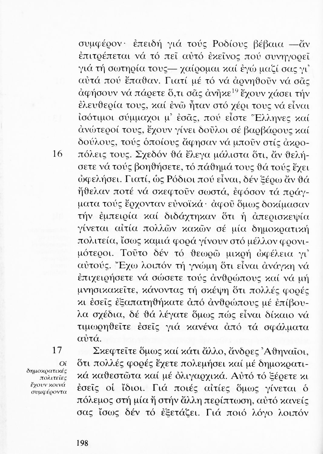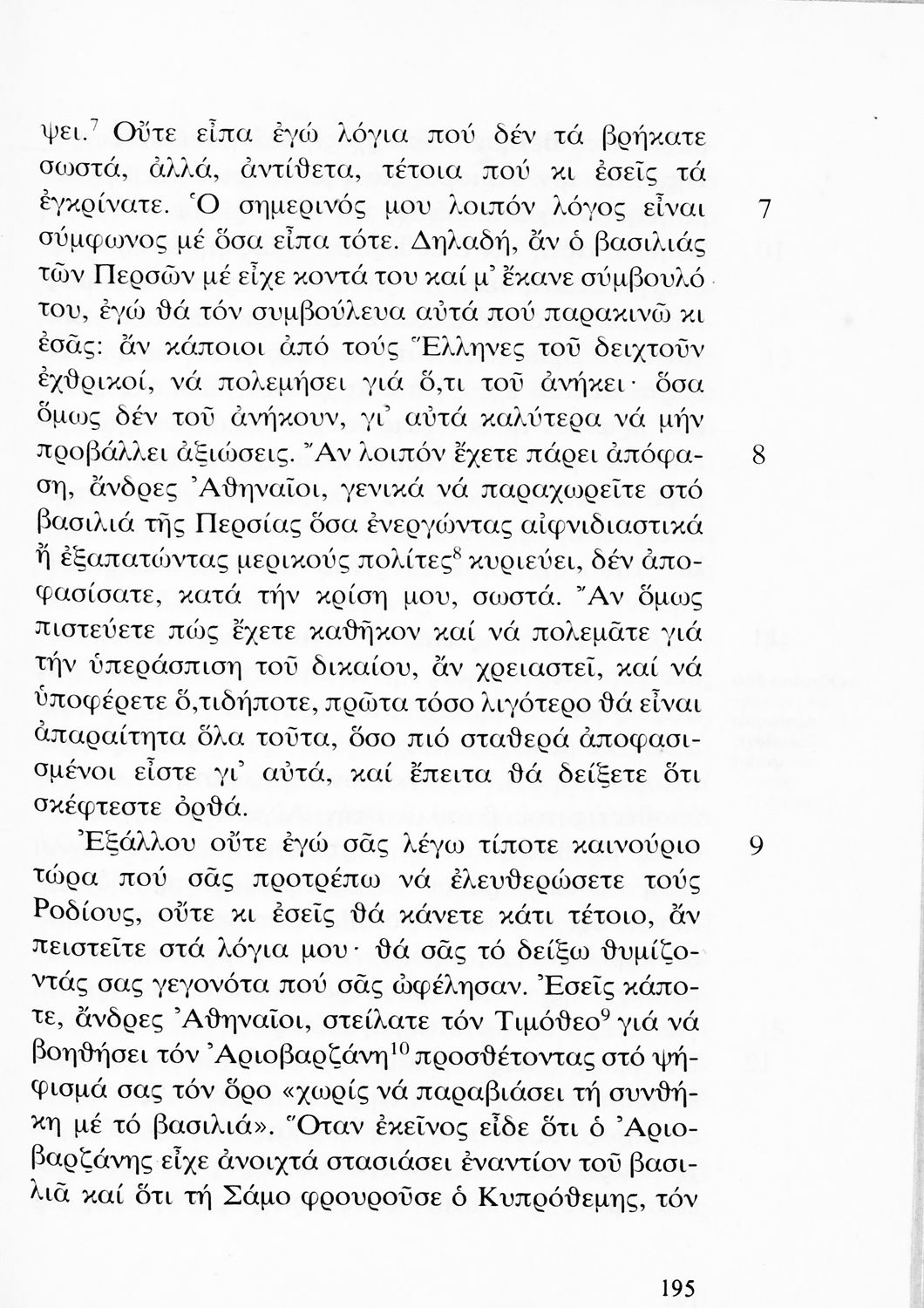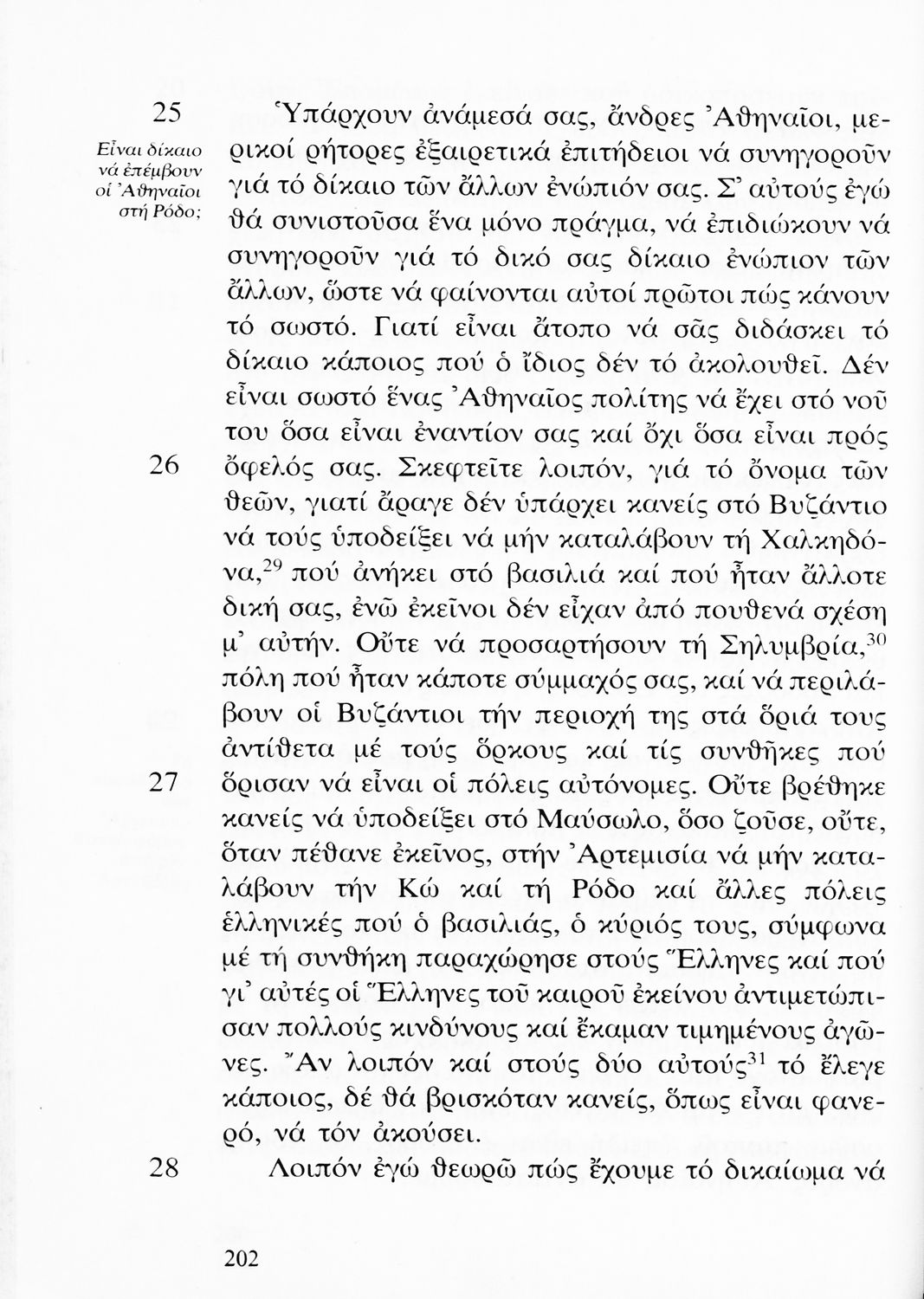 Σχολικό εγχειρίδιο Αρχαίων Ελληνικών για τη Β΄ Γυμνασίου που περιλαμβάνει Λόγους των Λυσία, Ισοκράτη και Δημοσθένη και αποσπάσματα από τα Ελληνικά του Ξενοφώντα σε μετάφραση, εισαγωγή στη ζωή και το έργο τους και ερμηνευτικές σημειώσεις.