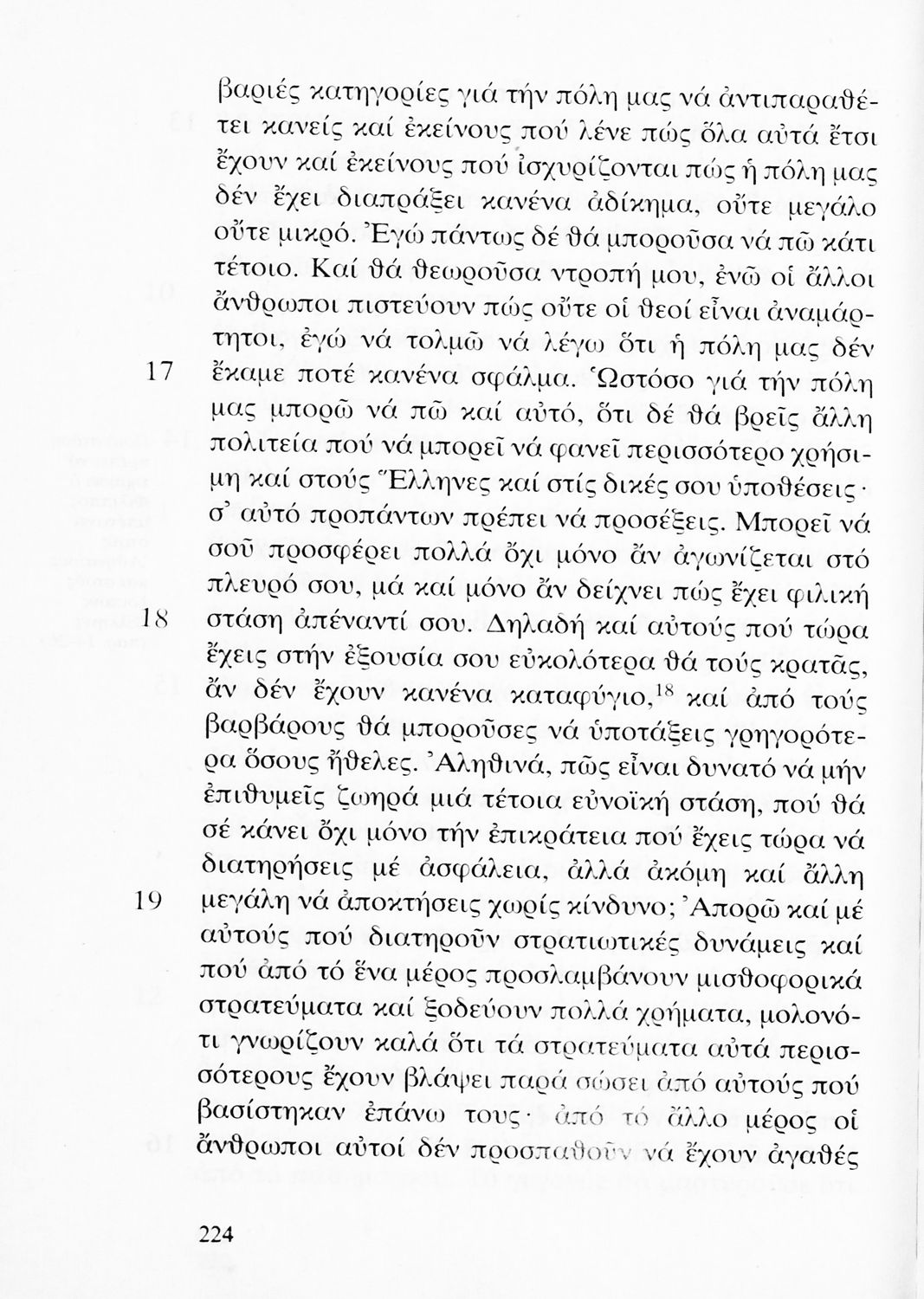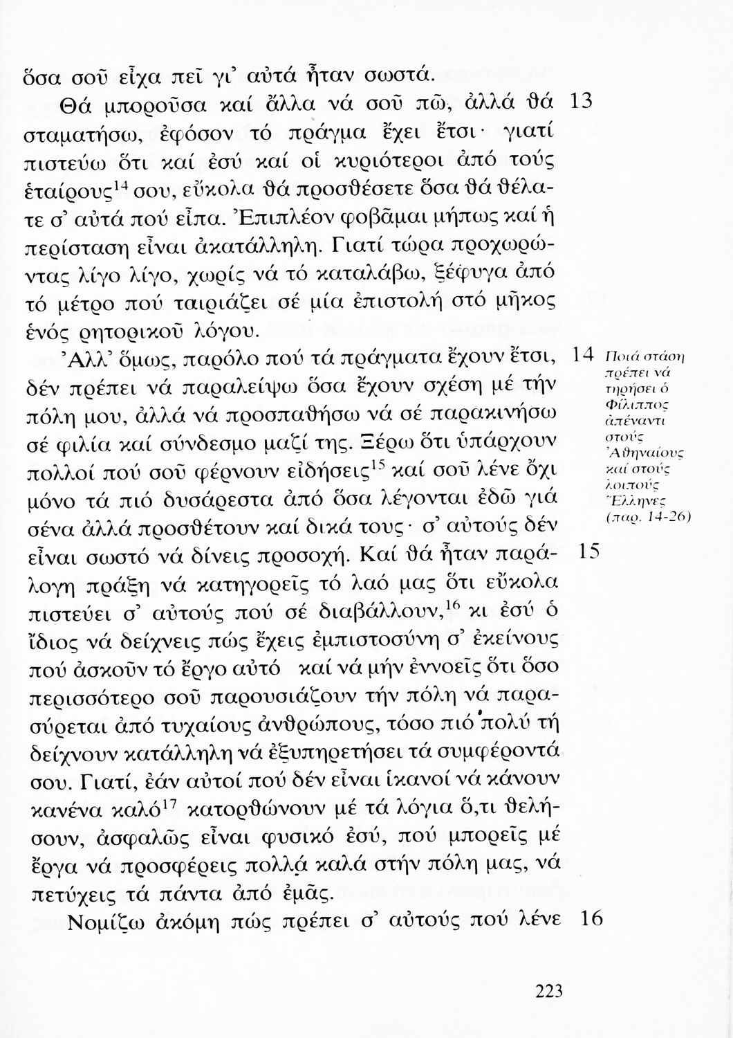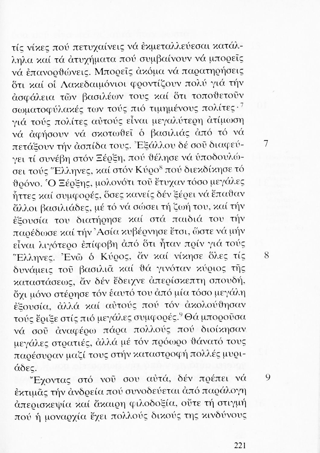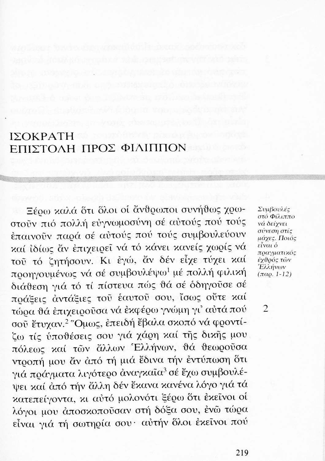 Σχολικό εγχειρίδιο Αρχαίων Ελληνικών για τη Β΄ Γυμνασίου που περιλαμβάνει Λόγους των Λυσία, Ισοκράτη και Δημοσθένη και αποσπάσματα από τα Ελληνικά του Ξενοφώντα σε μετάφραση, εισαγωγή στη ζωή και το έργο τους και ερμηνευτικές σημειώσεις.