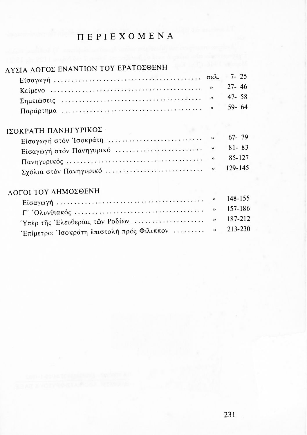 Συγγραφέας: Λυσίας, Ισοκράτης, Ξενοφών, Δημοσθένης, Νίκος Χουρμουζιάδης, Στέλλα Μπαζάκου- Μαραγκουδάκη, Β. Τσακατίκας (εισαγωγή, μετάφραση)