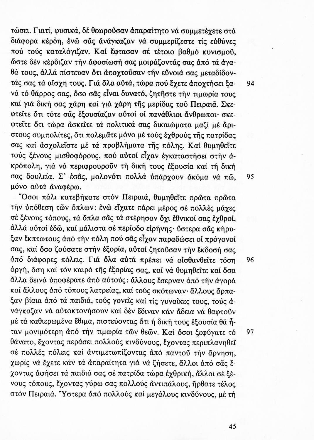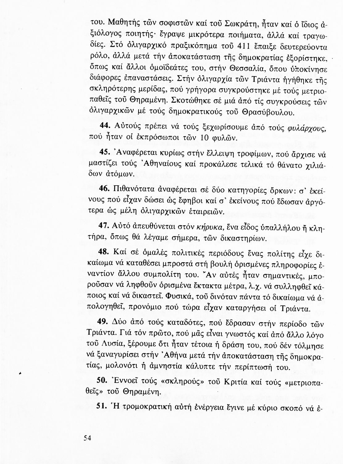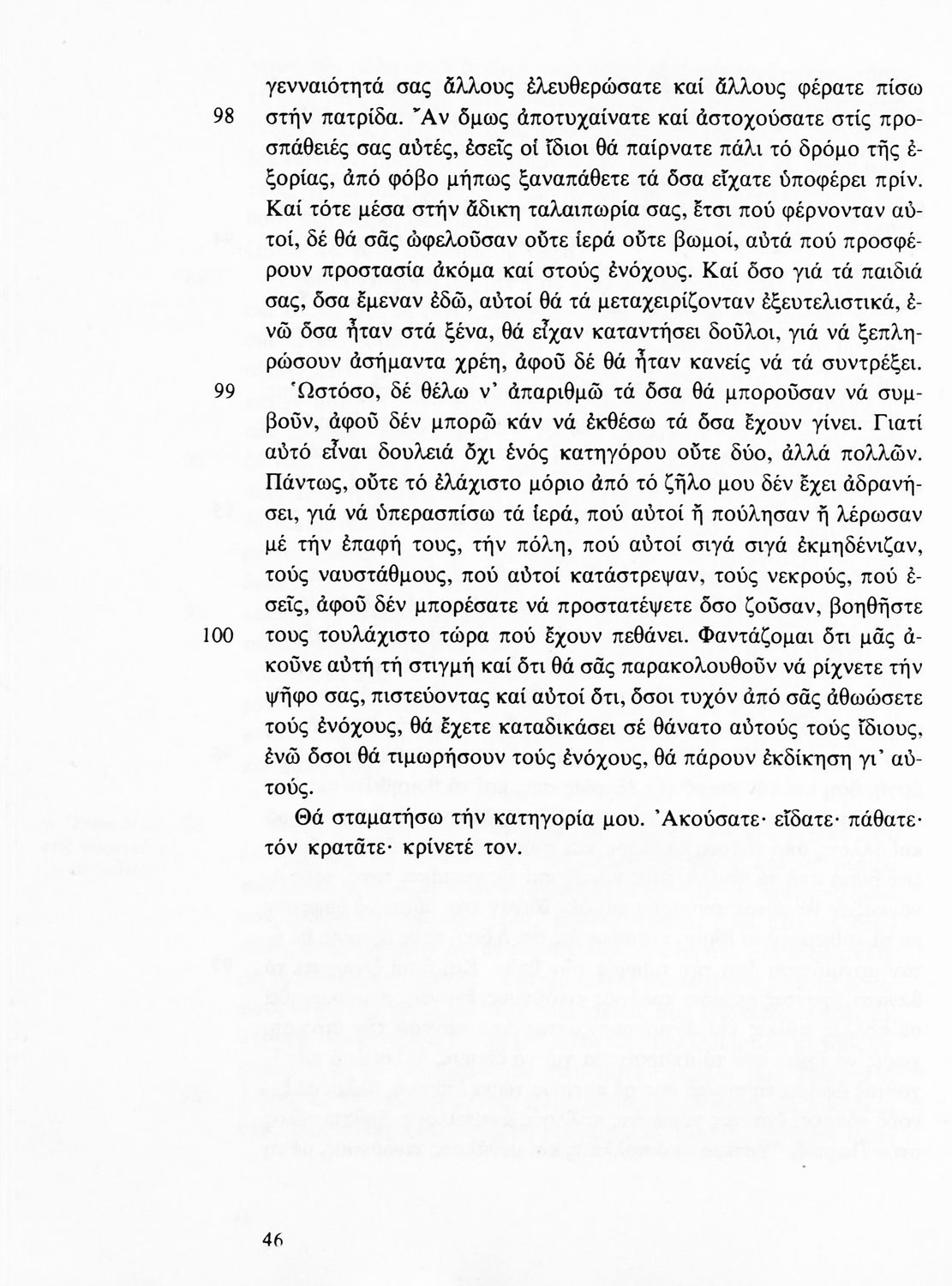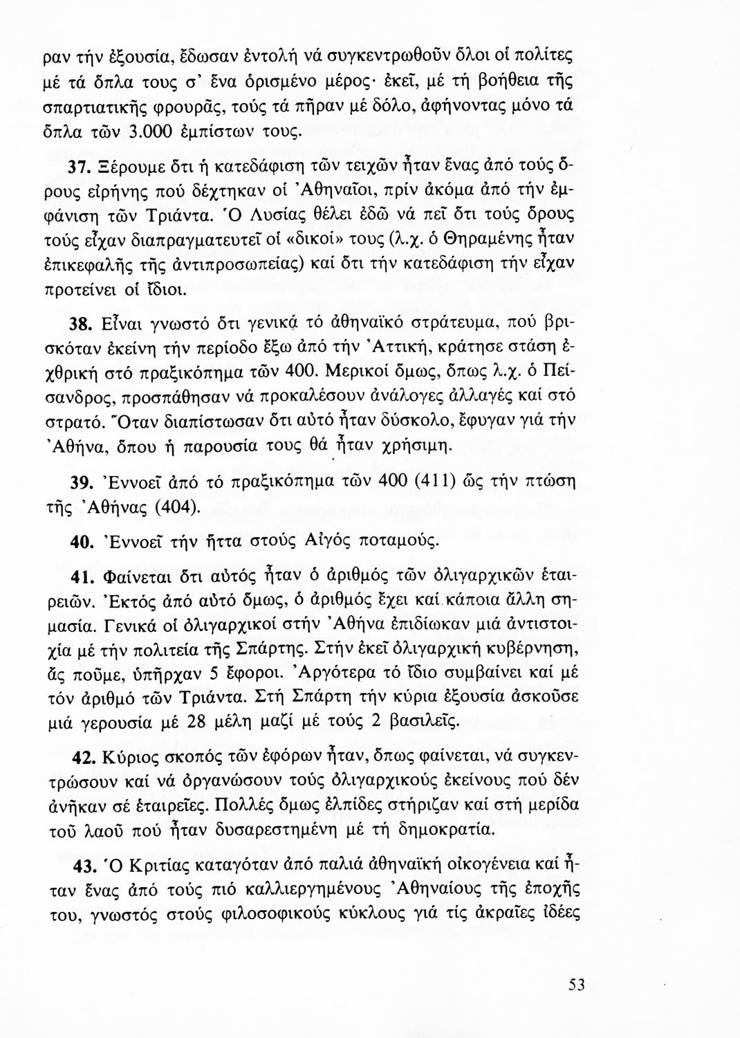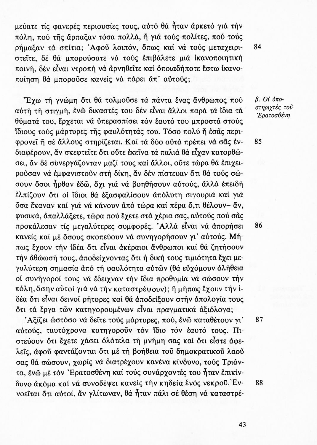 Σχολικό εγχειρίδιο Αρχαίων Ελληνικών για τη Β΄ Γυμνασίου που περιλαμβάνει Λόγους των Λυσία, Ισοκράτη και Δημοσθένη και αποσπάσματα από τα Ελληνικά του Ξενοφώντα σε μετάφραση, εισαγωγή στη ζωή και το έργο τους και ερμηνευτικές σημειώσεις.