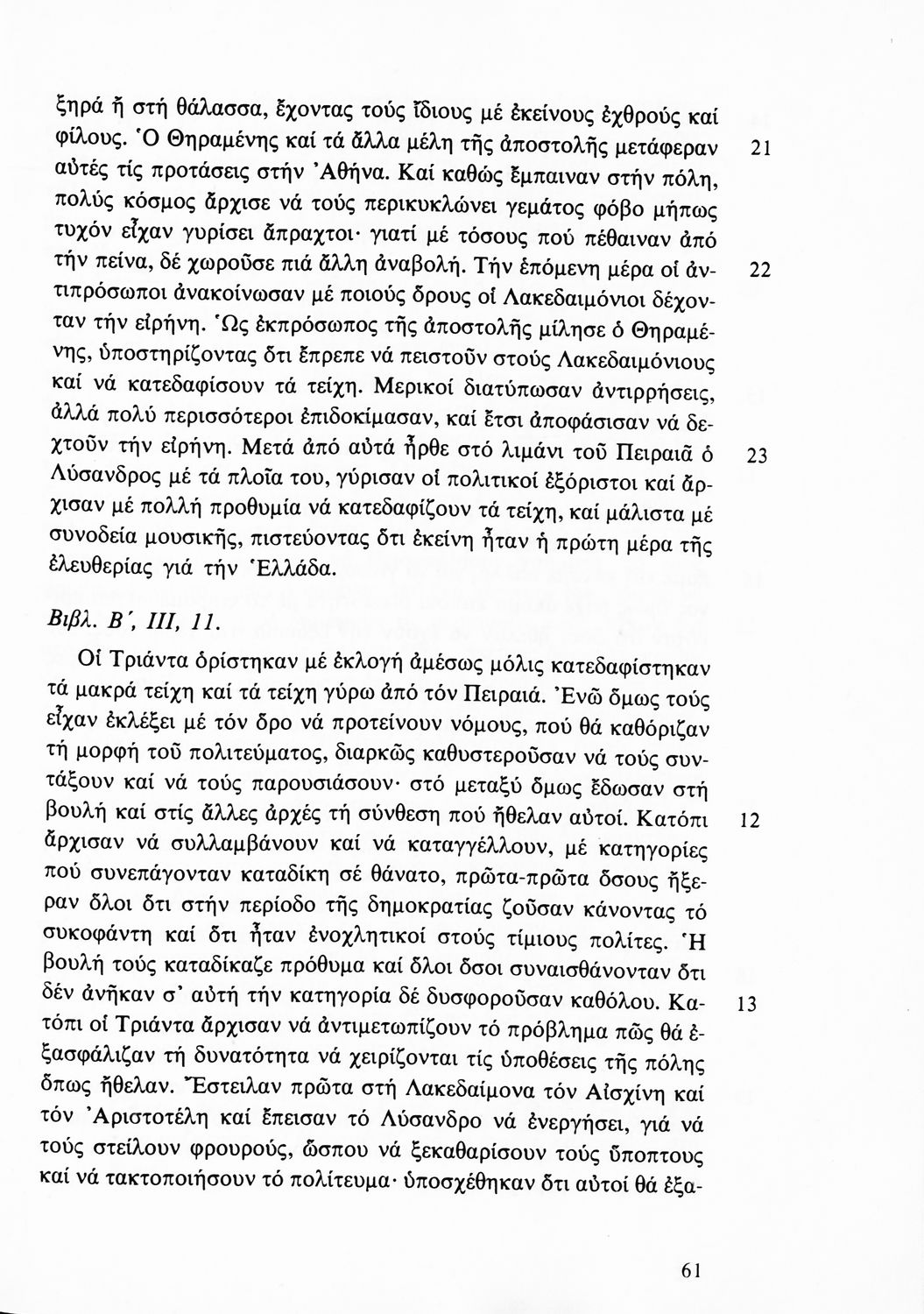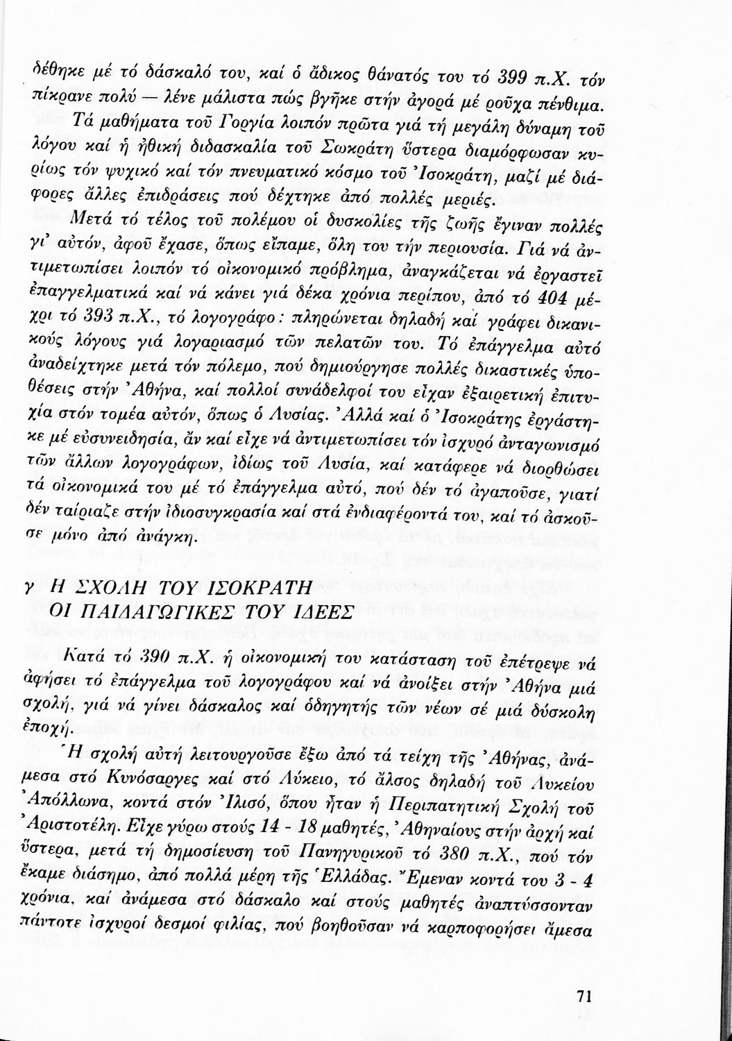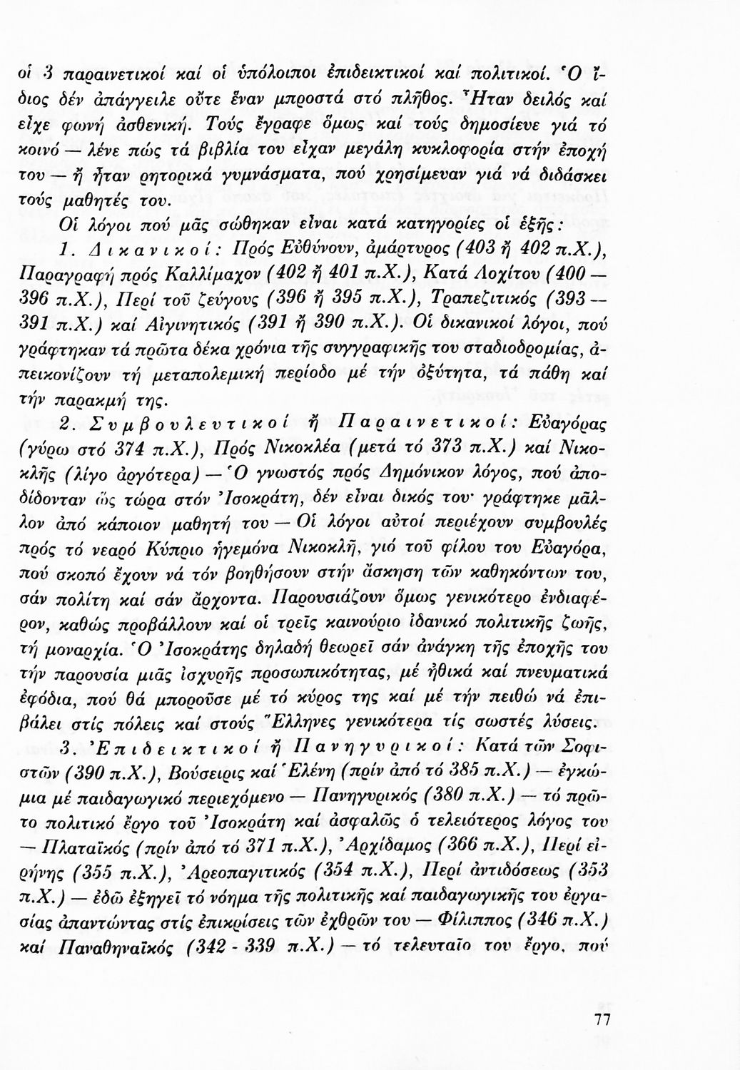 Σχολικό εγχειρίδιο Αρχαίων Ελληνικών για τη Β΄ Γυμνασίου που περιλαμβάνει Λόγους των Λυσία, Ισοκράτη και Δημοσθένη και αποσπάσματα από τα Ελληνικά του Ξενοφώντα σε μετάφραση, εισαγωγή στη ζωή και το έργο τους και ερμηνευτικές σημειώσεις.