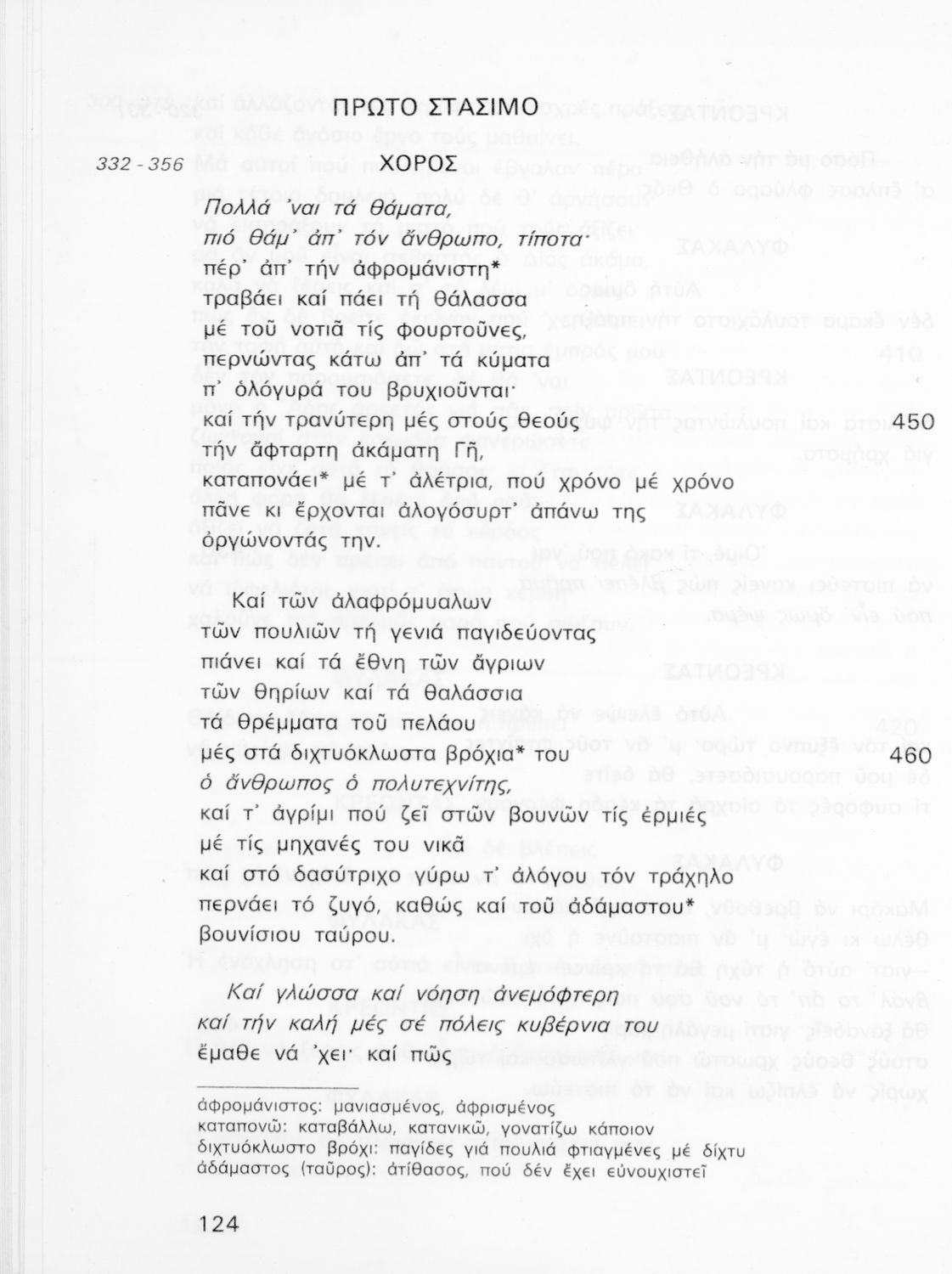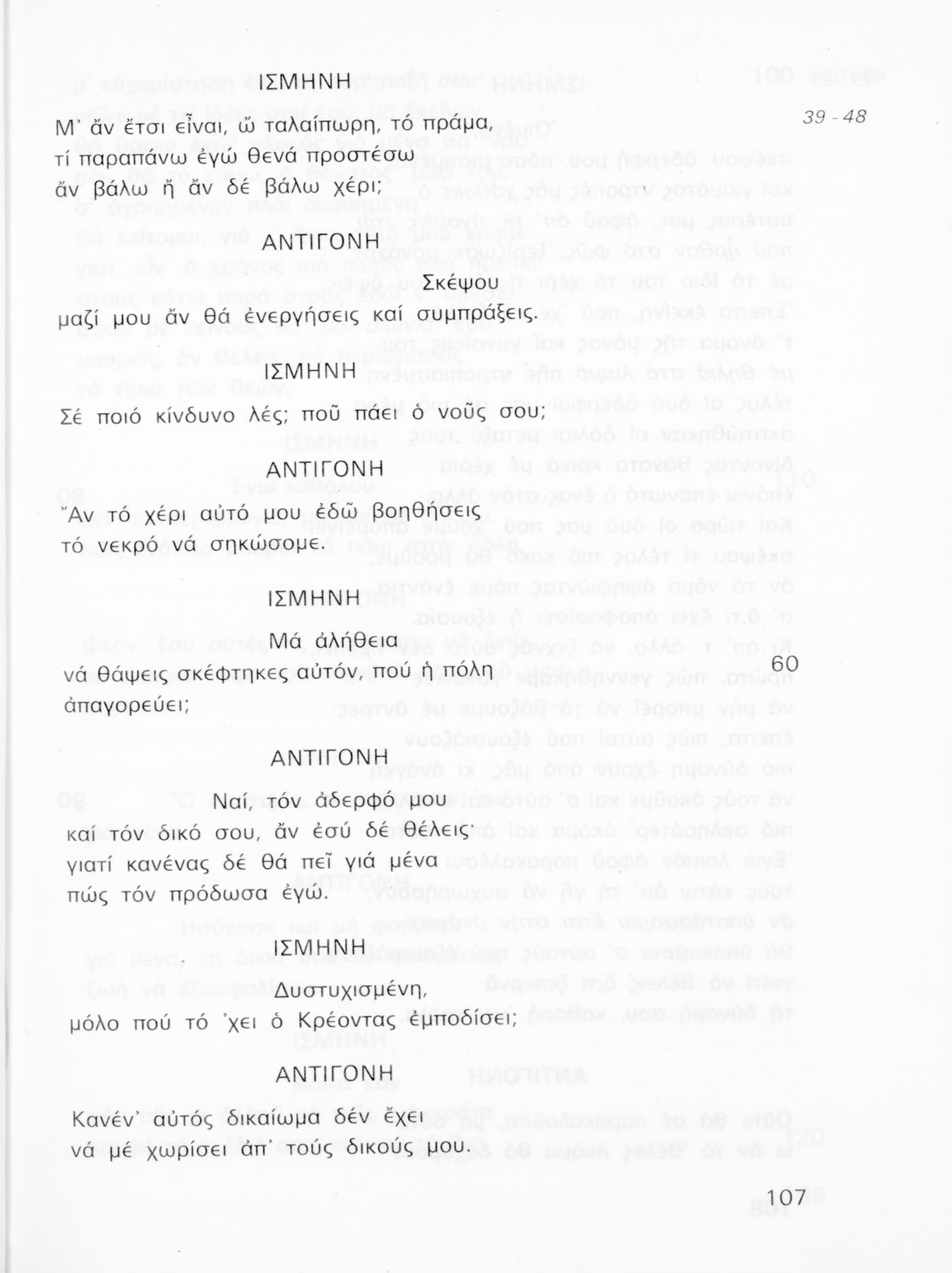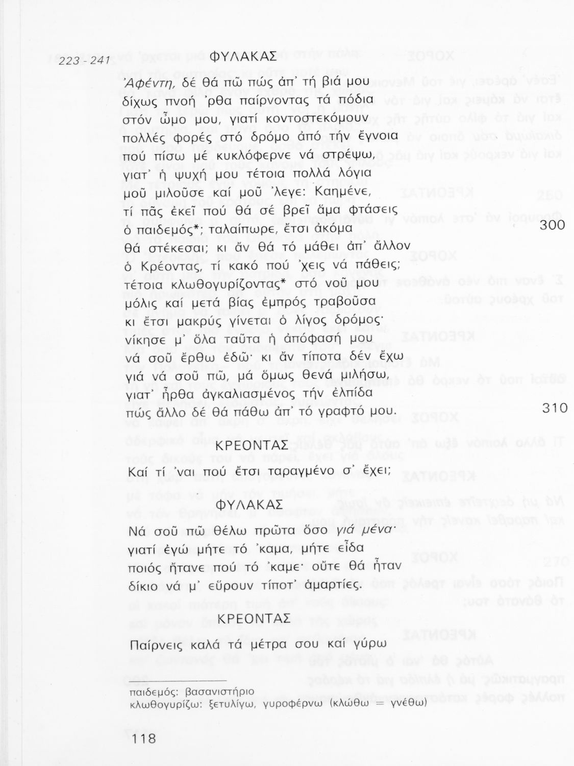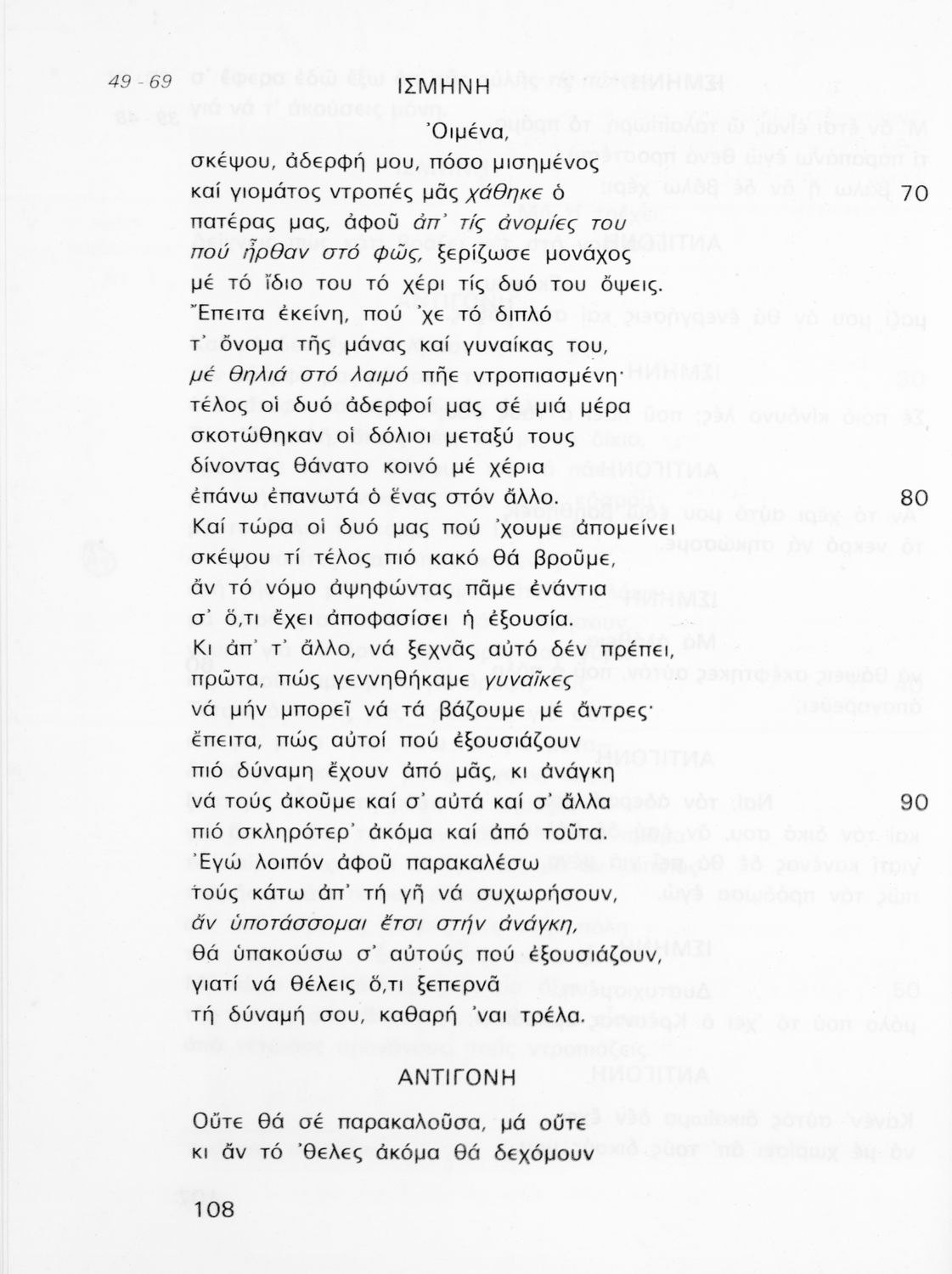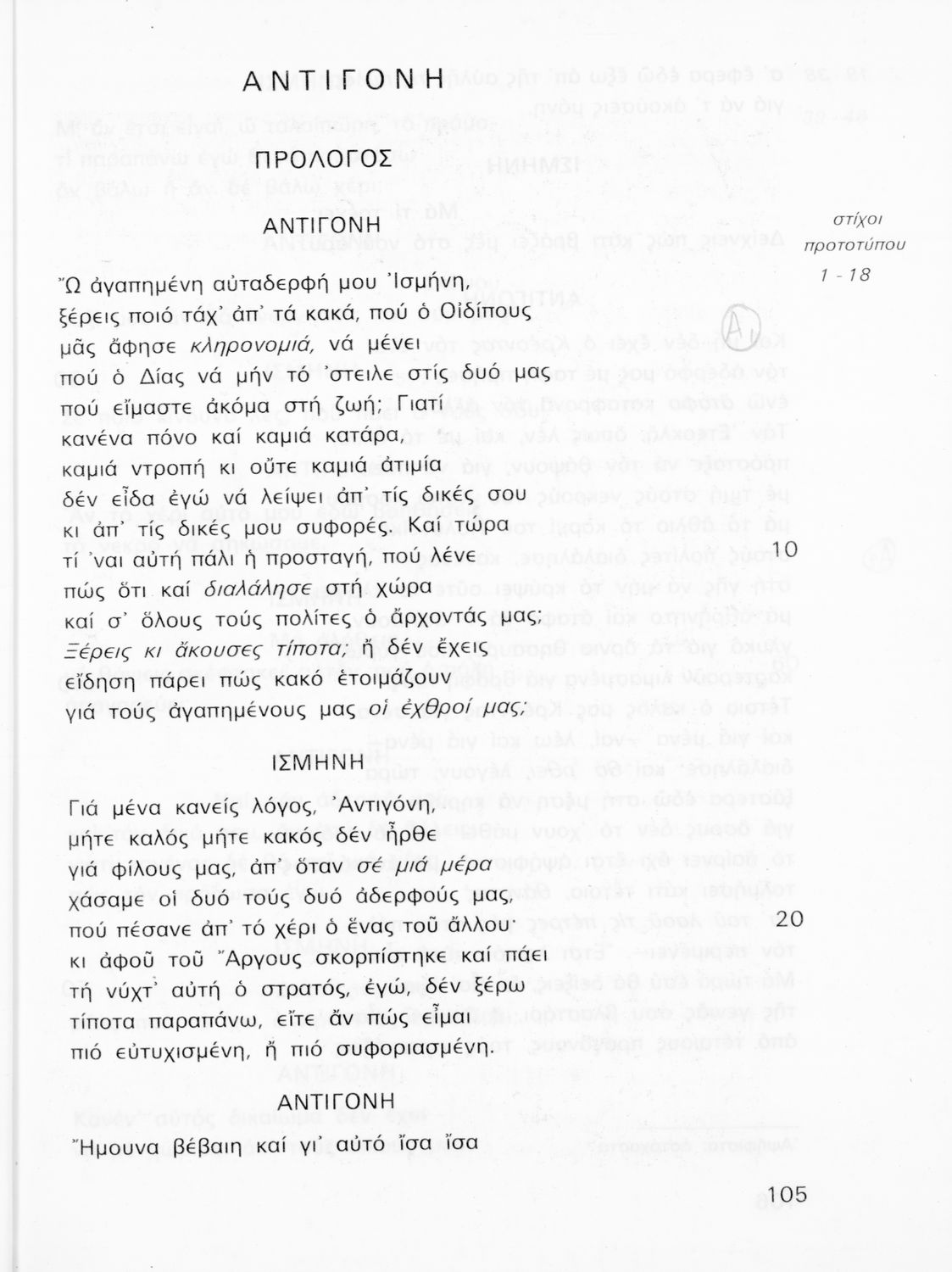 Σχολικό εγχειρίδιο Αρχαίων Ελληνικών Γ΄ Γυμνασίου που περιλαμβάνει εισαγωγή στη δραματική ποίηση, το αρχαίο θέατρο και την τραγωδία, μετάφραση των έργων Προμηθέας Δεσμώτης του Αισχύλου, Αντιγόνη του Σοφοκλή και Ιφιγένεια η εν Ταύροις του Ευριπίδη και ερμηνευτικά σχόλια.