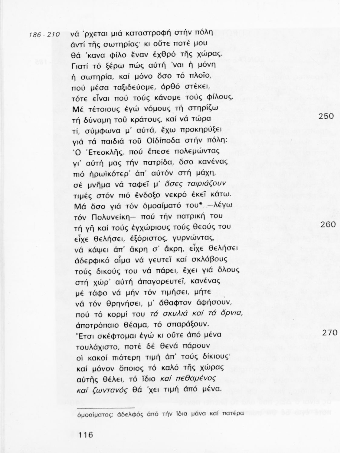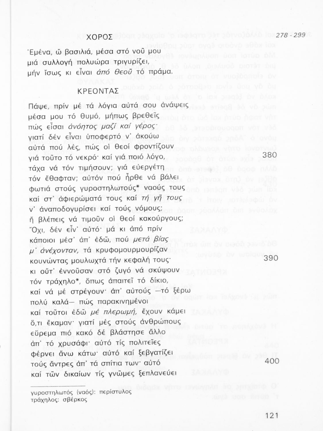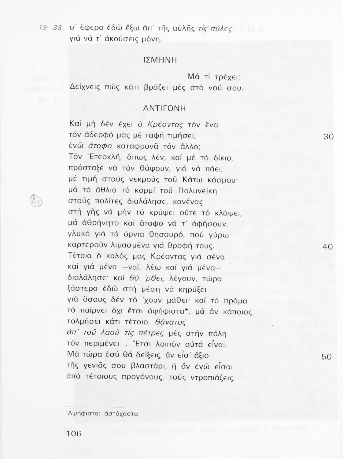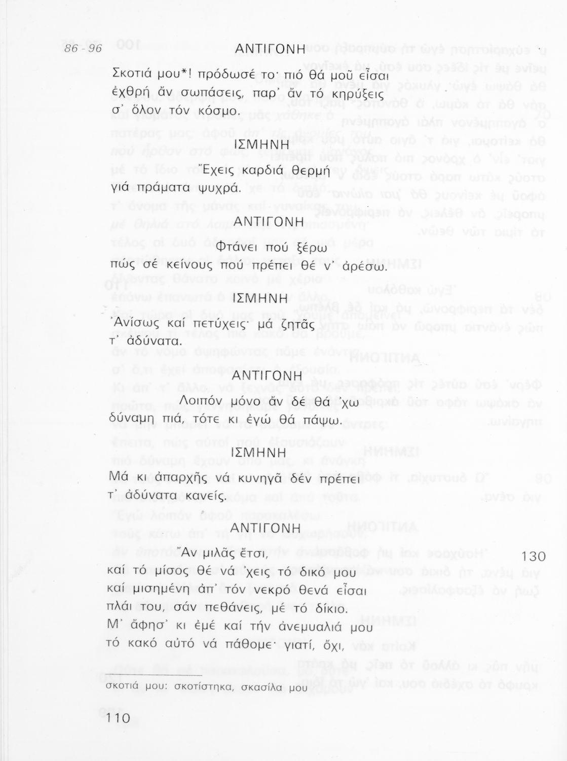 Σχολικό εγχειρίδιο Αρχαίων Ελληνικών Γ΄ Γυμνασίου που περιλαμβάνει εισαγωγή στη δραματική ποίηση, το αρχαίο θέατρο και την τραγωδία, μετάφραση των έργων Προμηθέας Δεσμώτης του Αισχύλου, Αντιγόνη του Σοφοκλή και Ιφιγένεια η εν Ταύροις του Ευριπίδη και ερμηνευτικά σχόλια.