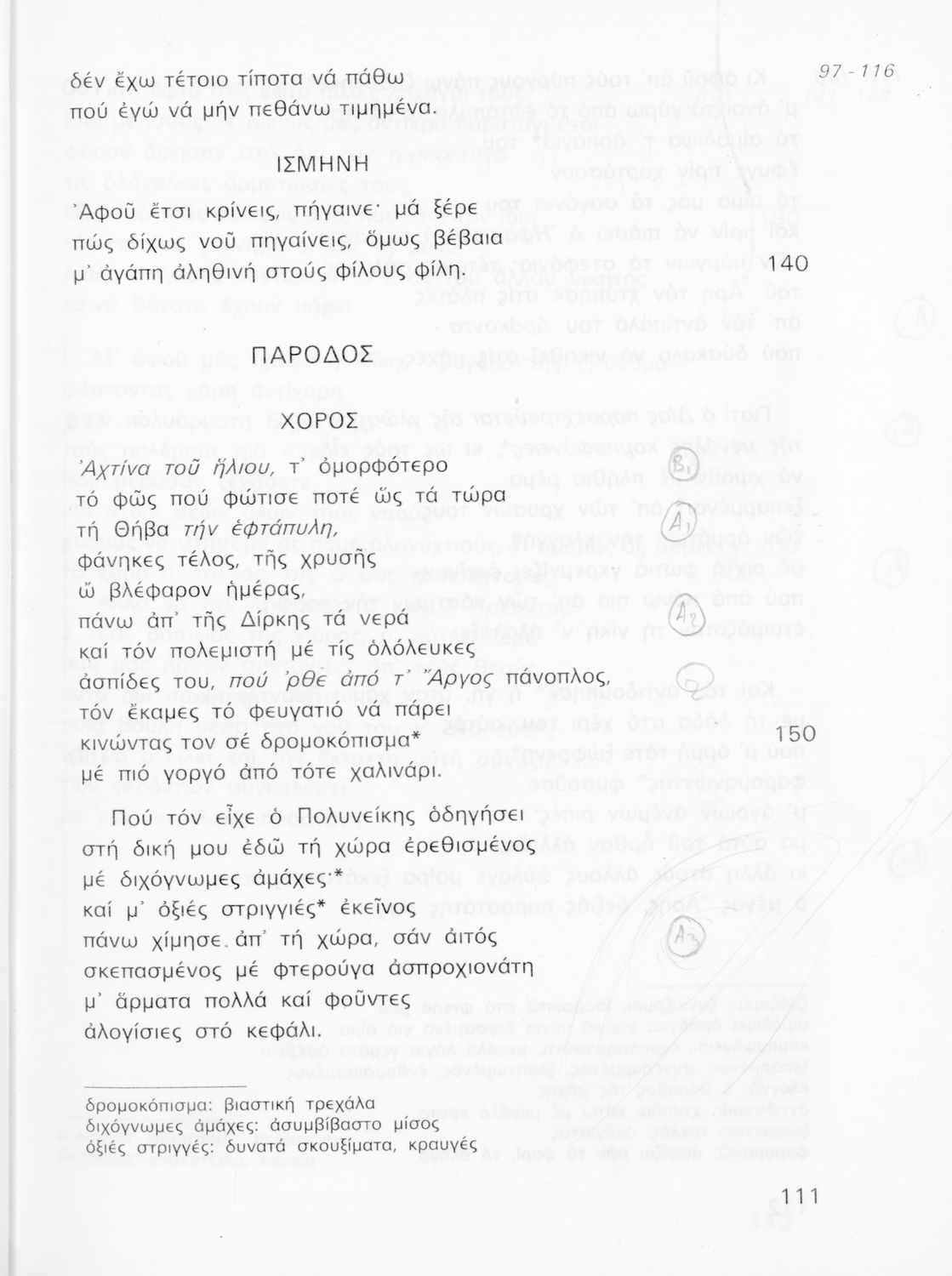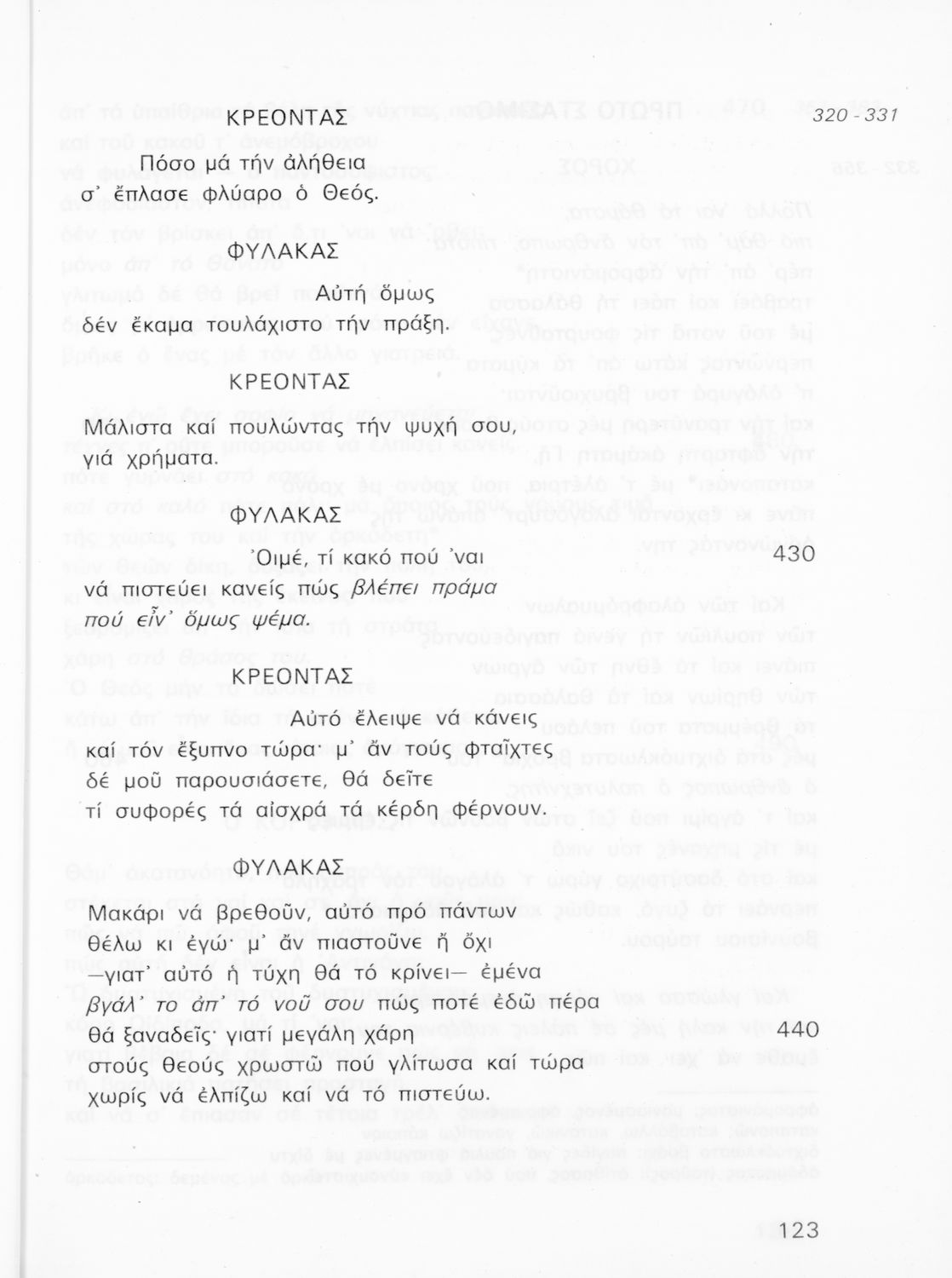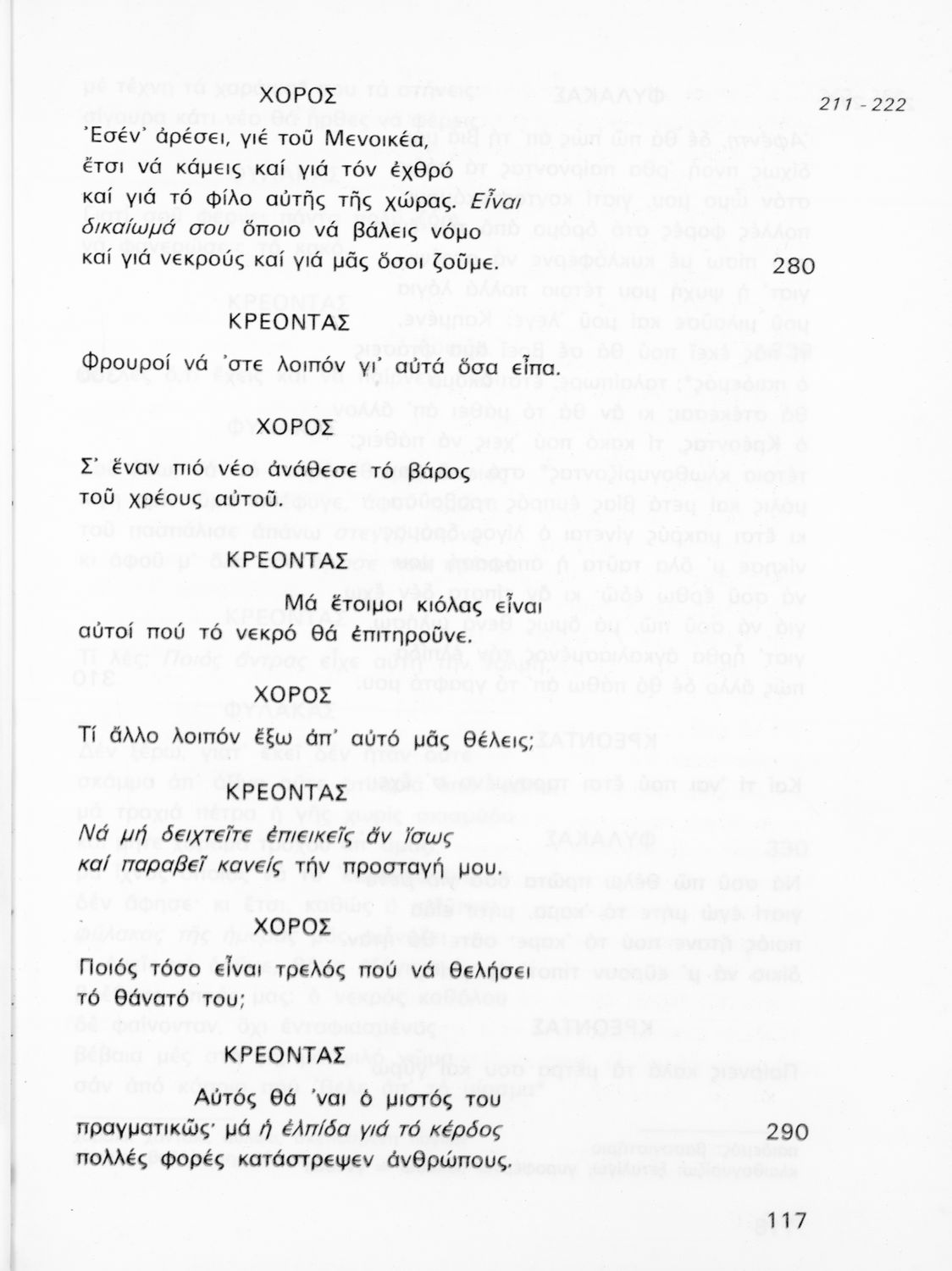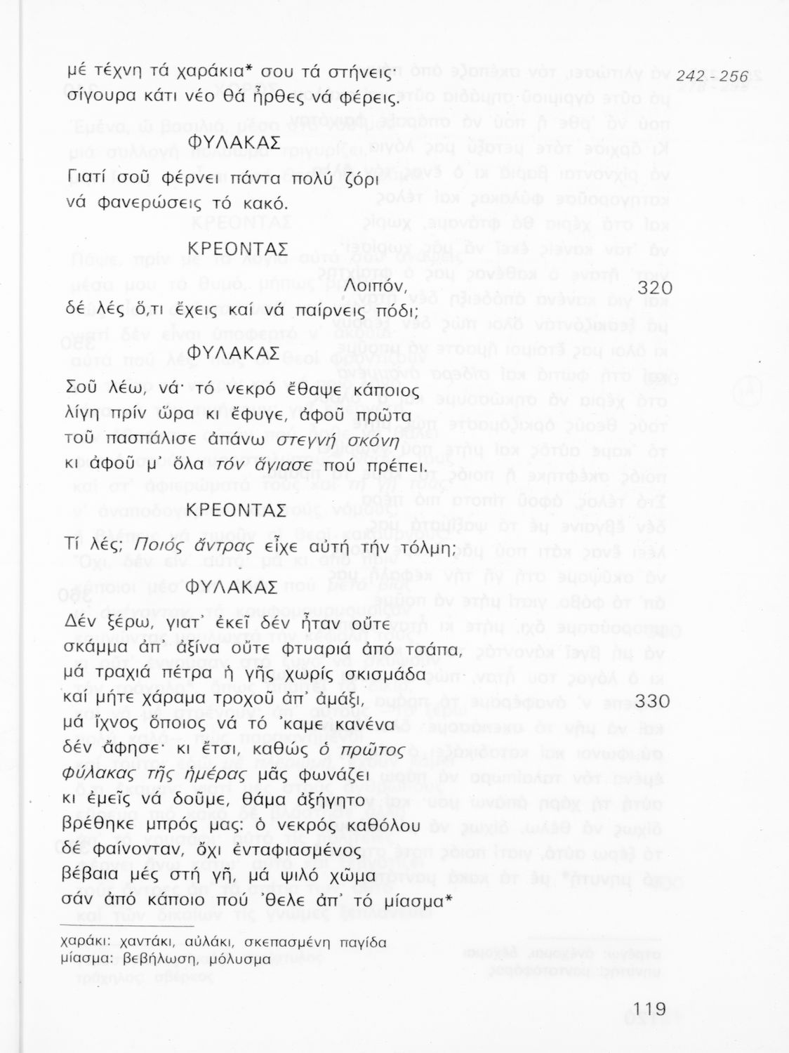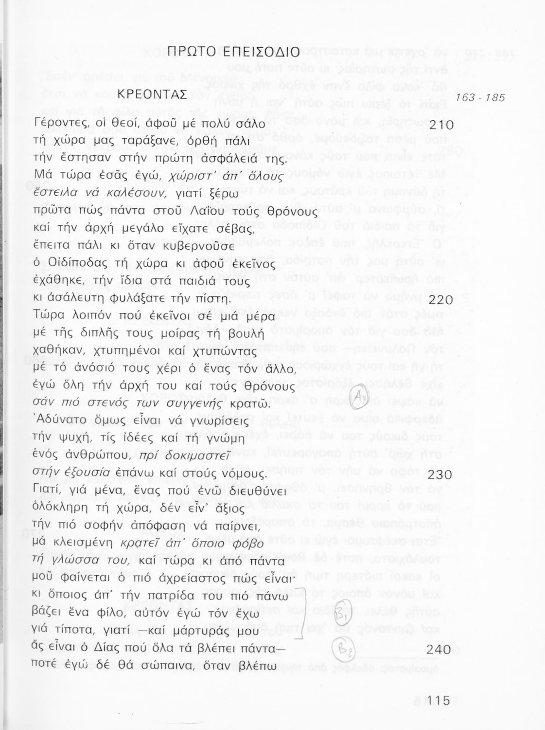 Σχολικό εγχειρίδιο Αρχαίων Ελληνικών Γ΄ Γυμνασίου που περιλαμβάνει εισαγωγή στη δραματική ποίηση, το αρχαίο θέατρο και την τραγωδία, μετάφραση των έργων Προμηθέας Δεσμώτης του Αισχύλου, Αντιγόνη του Σοφοκλή και Ιφιγένεια η εν Ταύροις του Ευριπίδη και ερμηνευτικά σχόλια.