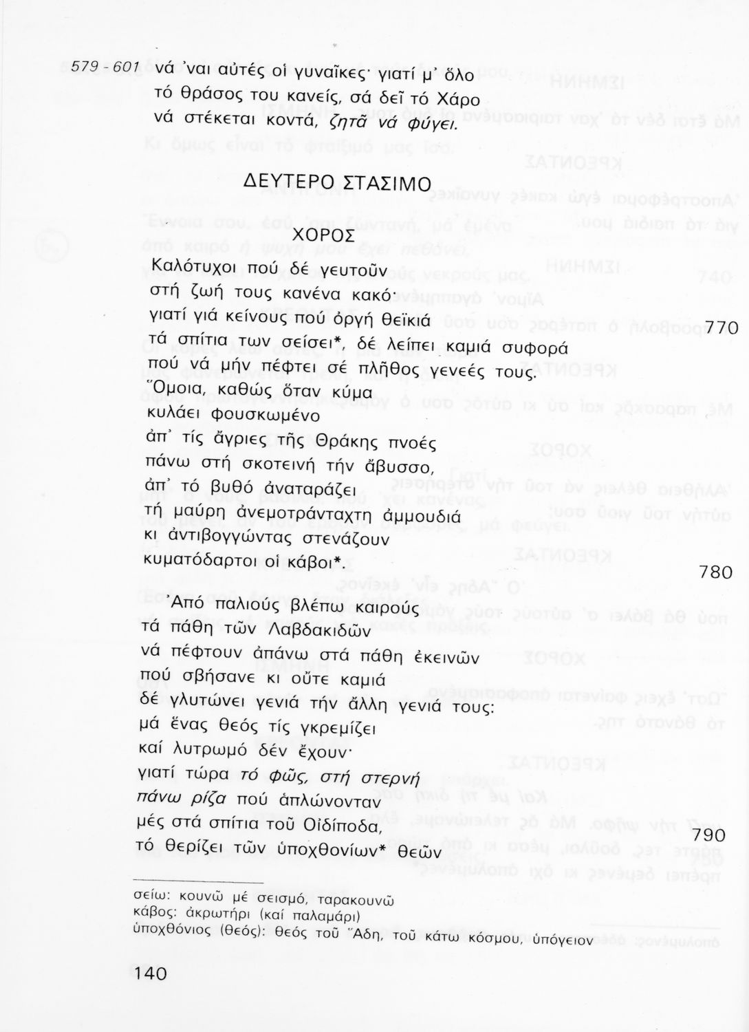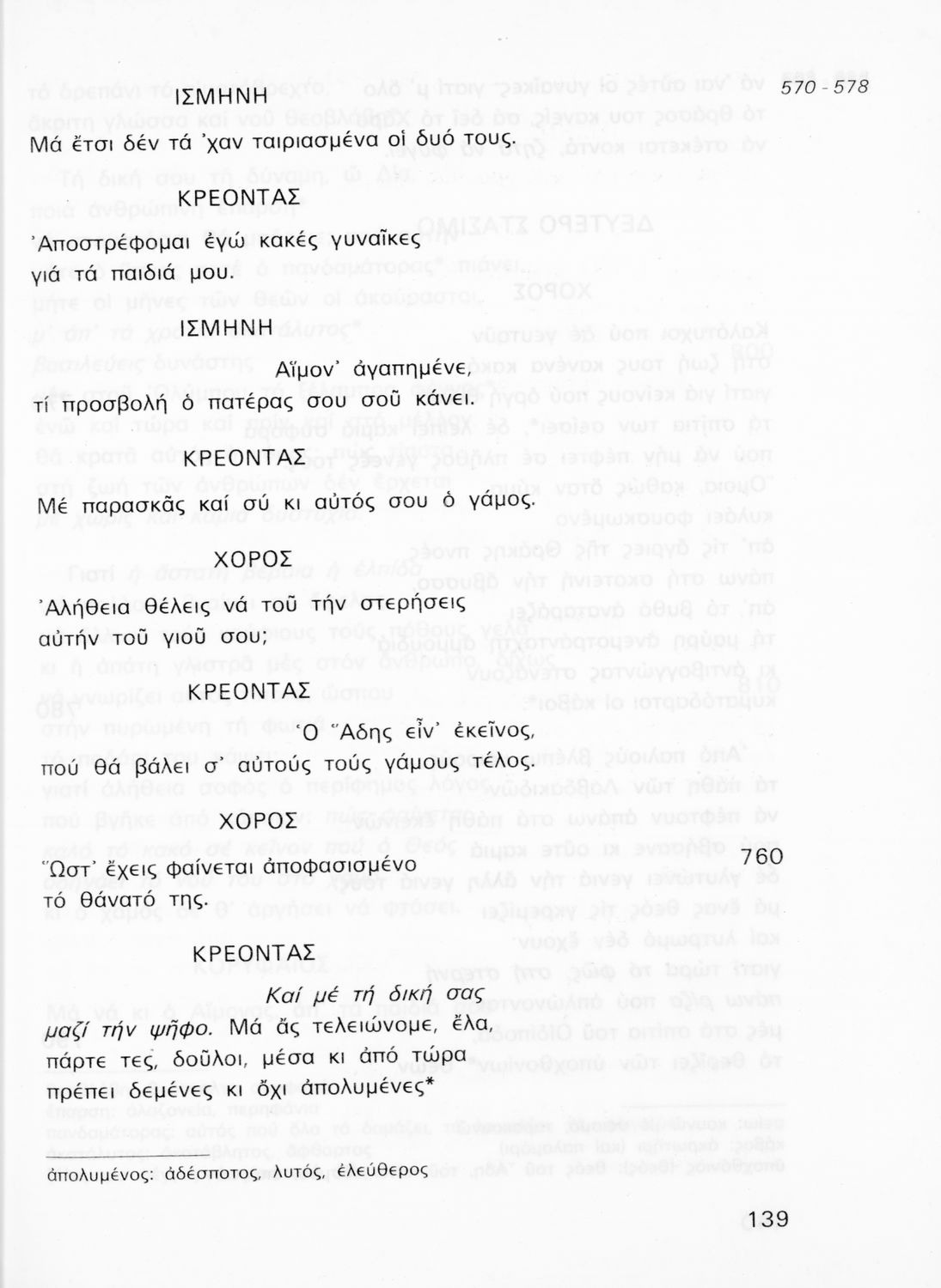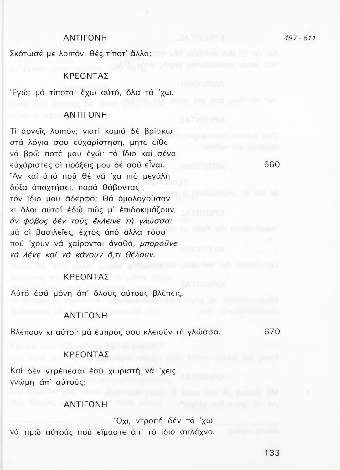 Σχολικό εγχειρίδιο Αρχαίων Ελληνικών Γ΄ Γυμνασίου που περιλαμβάνει εισαγωγή στη δραματική ποίηση, το αρχαίο θέατρο και την τραγωδία, μετάφραση των έργων Προμηθέας Δεσμώτης του Αισχύλου, Αντιγόνη του Σοφοκλή και Ιφιγένεια η εν Ταύροις του Ευριπίδη και ερμηνευτικά σχόλια.