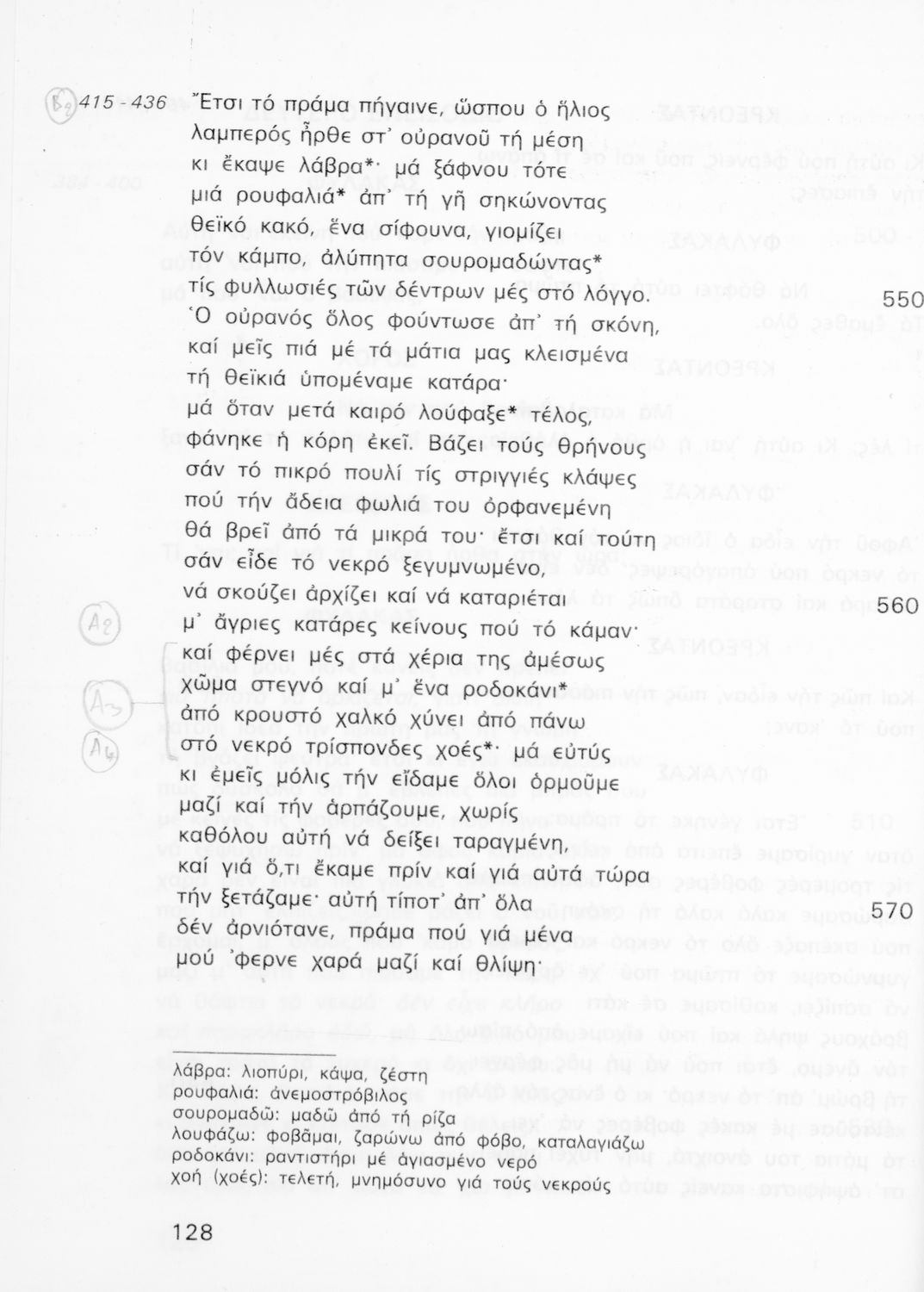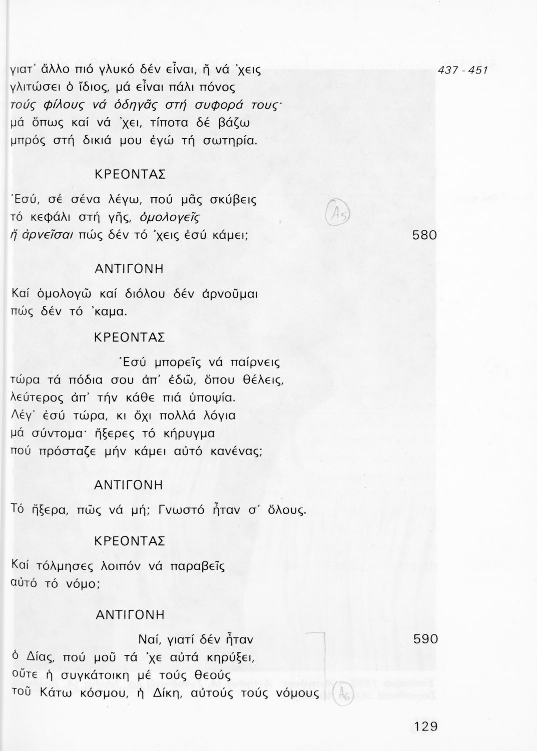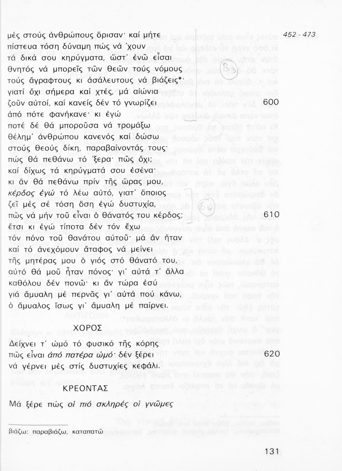 Σχολικό εγχειρίδιο Αρχαίων Ελληνικών Γ΄ Γυμνασίου που περιλαμβάνει εισαγωγή στη δραματική ποίηση, το αρχαίο θέατρο και την τραγωδία, μετάφραση των έργων Προμηθέας Δεσμώτης του Αισχύλου, Αντιγόνη του Σοφοκλή και Ιφιγένεια η εν Ταύροις του Ευριπίδη και ερμηνευτικά σχόλια.