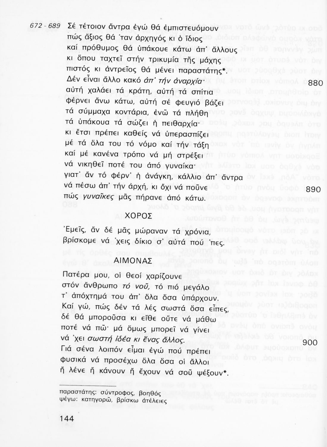 LDR 01739 2200217 4500 035 ## _a01-18005 040 ## _aΙνστιτούτο Εκπαιδευτικής Πολιτικής 041 ## _ael 100 ## _aΑισχύλος _aΣοφοκλής _aΕυριπίδης _aΙ. Γρυπάρης (μετάφραση) _aΘ. Σταύρου (σχόλια) 110 ## _a18005 245 0# _aΔραματική Ποίηση Αισχύλου: Προμηθεύς Δεσμώτης Σοφοκλή: Αντιγόνη Ευριπίδη: Ιφιγένεια η εν Ταύροις Γ΄ Γυμνασίου 250 ## _a1η Έκδοση 260 ## _aΑθήνα _bΟργανισμός Εκδόσεως Διδακτικών Βιβλίων _c1978 300 ## _a320 _bΕικόνες (ασπρόμαυρες), Εικόνες (έγχρωμες) _c20 520 ## _aΣχολικό εγχειρίδιο Αρχαίων Ελληνικών Γ΄ Γυμνασίου που περιλαμβάνει εισαγωγή στη δραματική ποίηση, το αρχαίο θέατρο και την τραγωδία, μετάφραση των έργων Προμηθέας Δεσμώτης του Αισχύλου, Αντιγόνη του Σοφοκλή και Ιφιγένεια η εν Ταύροις του Ευριπίδη και ερμηνευτικά σχόλια. 521 ## _aΓ' Γυμνασίου 522 ## _aΕλλάδα 546 ## _aΔημοτική 563 ## _aΜαλακό Εξώφυλλο 583 ## _a3079/8-8-1978 _c1978 650 #4 _aΔέηση _aΔιάνοια _aΔιθύραμβος _aΔιόνυσος _aΈξοδος _aΉθος _aΘέσπιδα _aΘίασος _aΚομμός _aΜέλος _aΜονωδίες _aΜύθος _aΌψη _aΠλοκή _aΣτάσιμα _aΥποκριτής