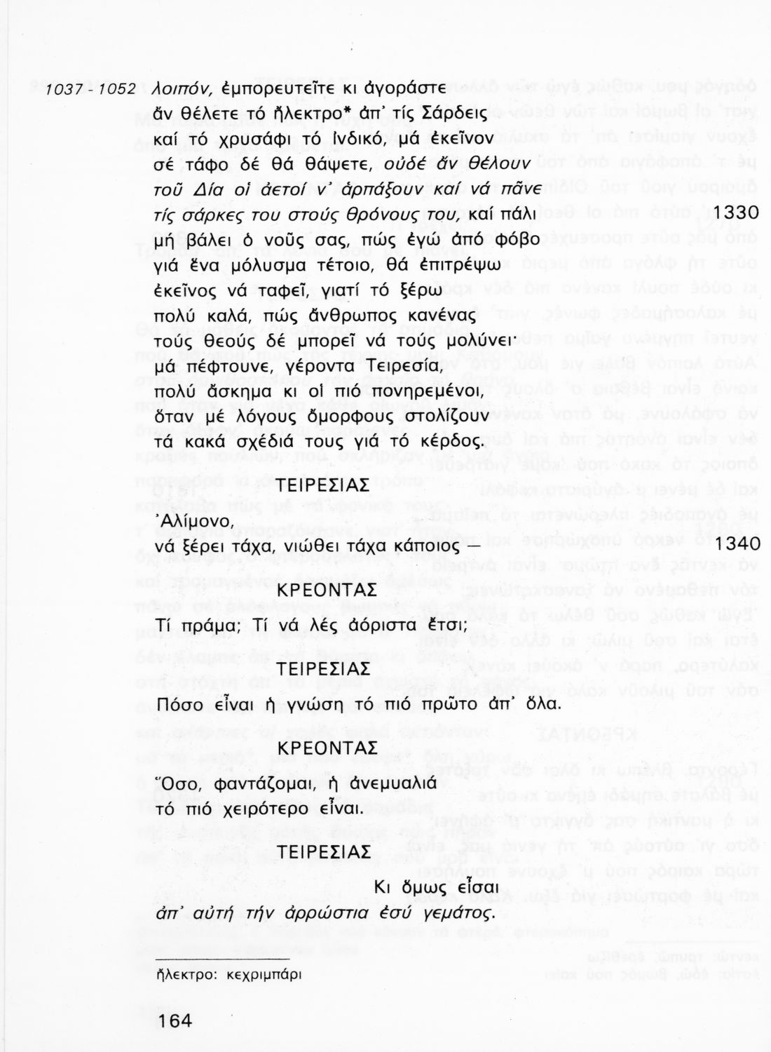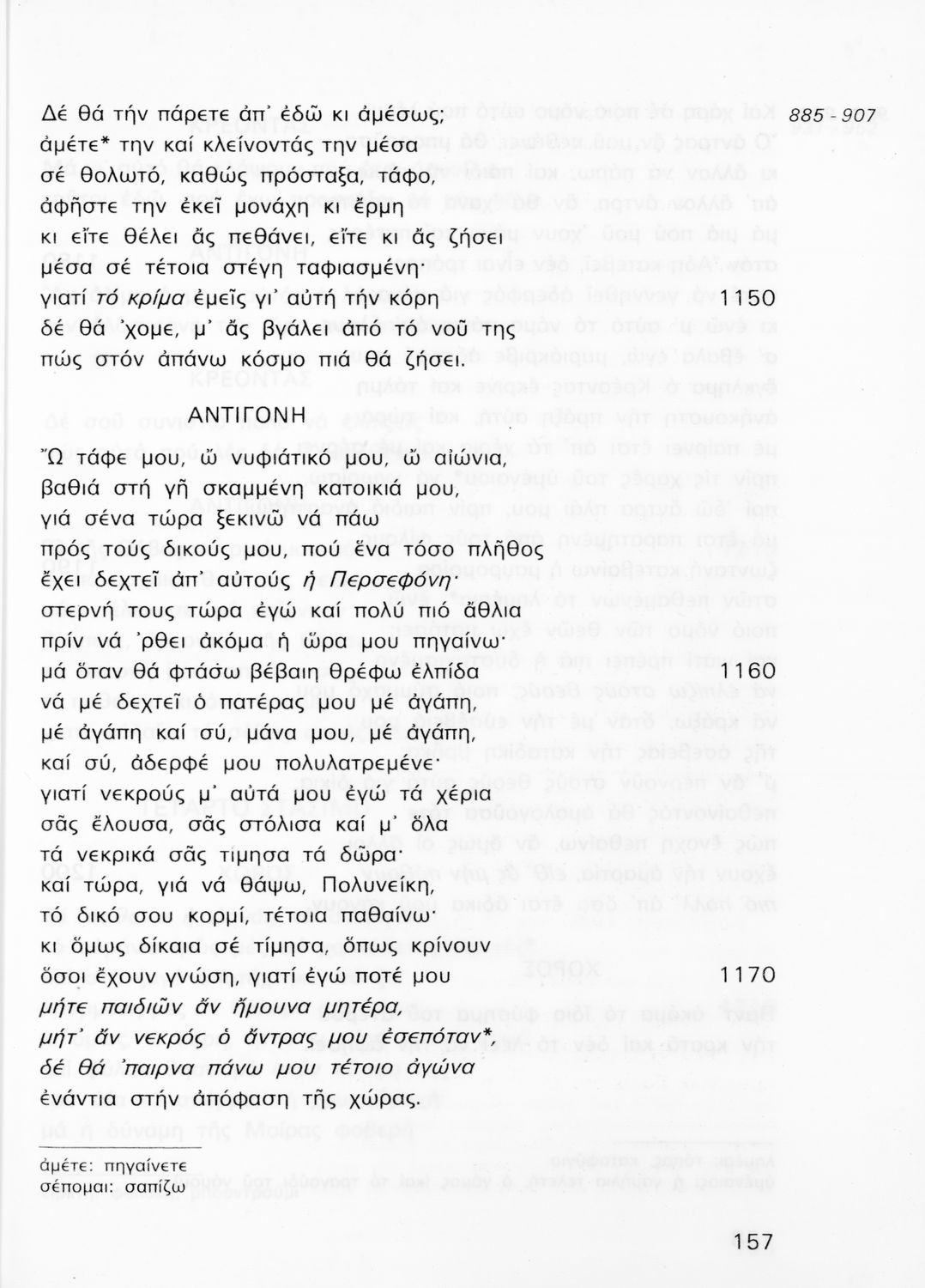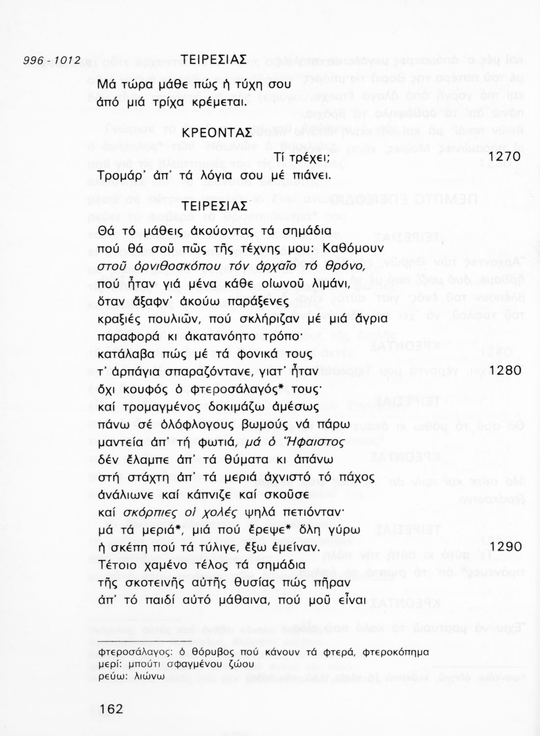 Σχολικό εγχειρίδιο Αρχαίων Ελληνικών Γ΄ Γυμνασίου που περιλαμβάνει εισαγωγή στη δραματική ποίηση, το αρχαίο θέατρο και την τραγωδία, μετάφραση των έργων Προμηθέας Δεσμώτης του Αισχύλου, Αντιγόνη του Σοφοκλή και Ιφιγένεια η εν Ταύροις του Ευριπίδη και ερμηνευτικά σχόλια.