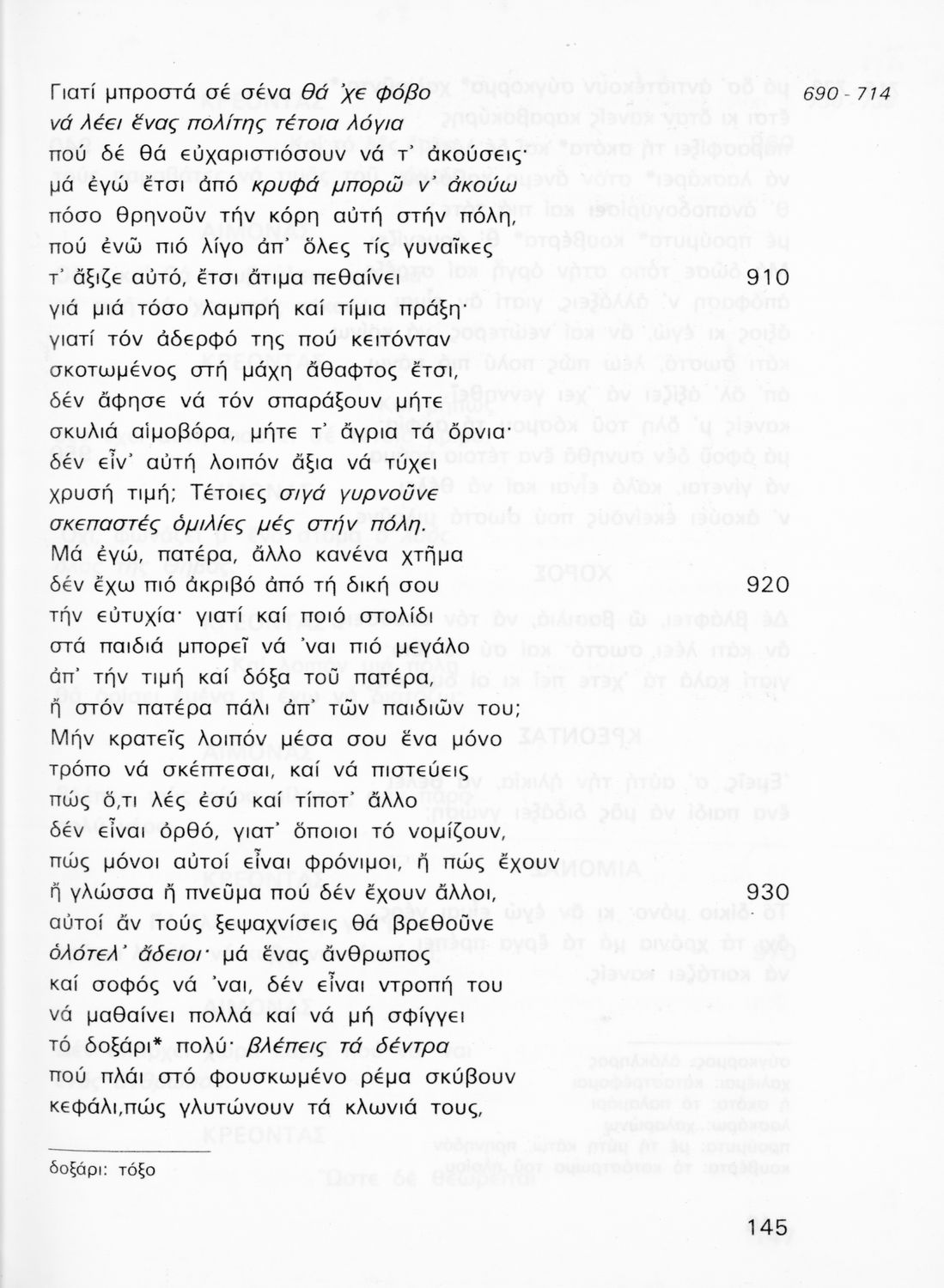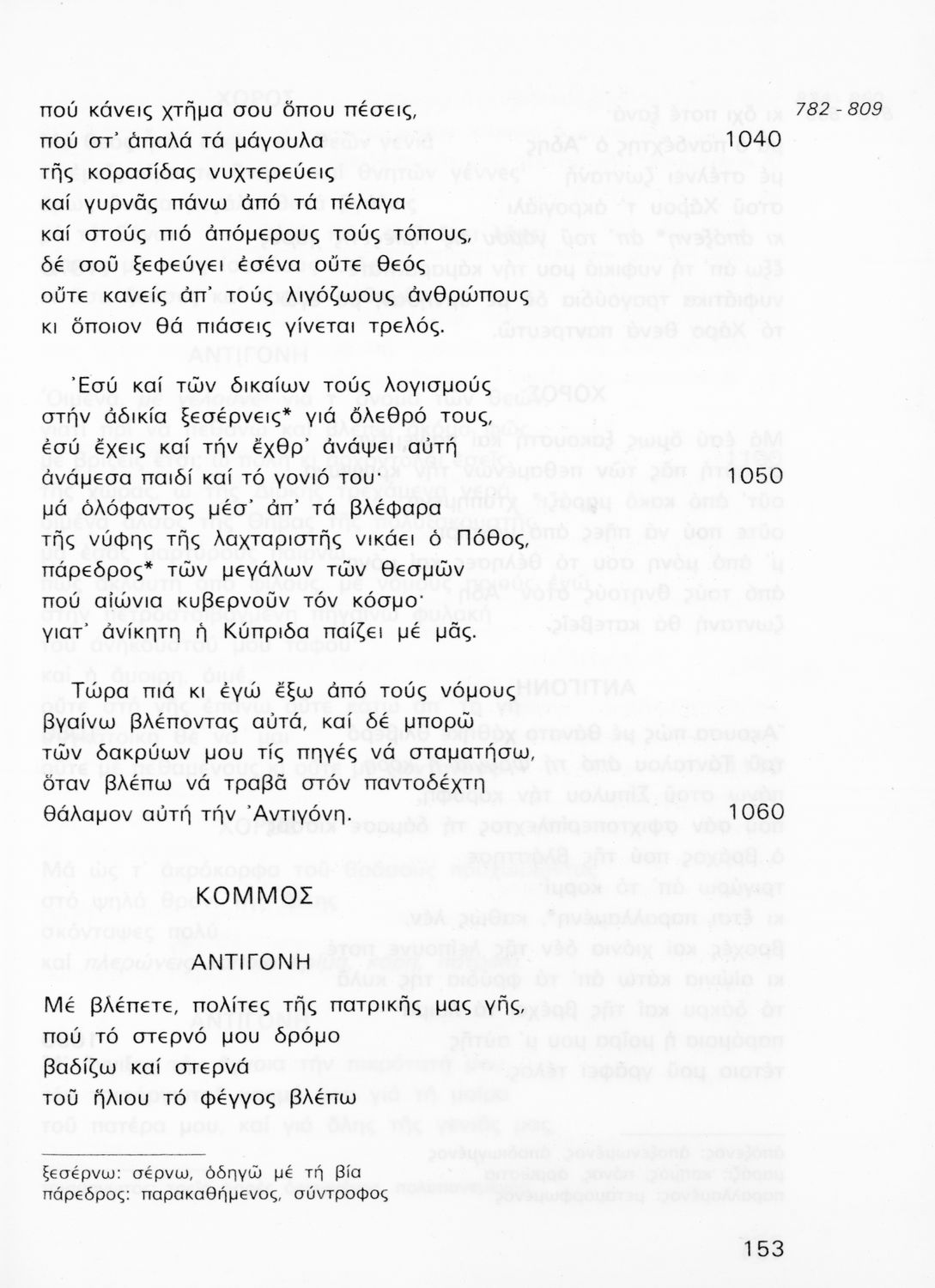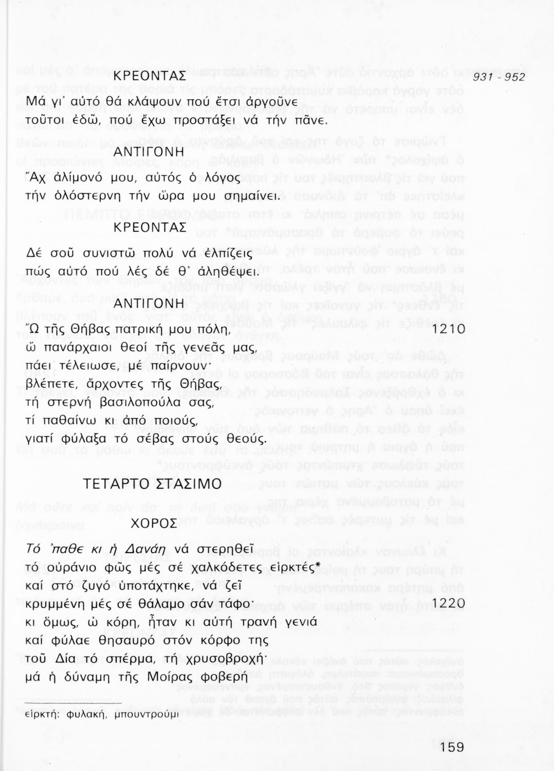 Σχολικό εγχειρίδιο Αρχαίων Ελληνικών Γ΄ Γυμνασίου που περιλαμβάνει εισαγωγή στη δραματική ποίηση, το αρχαίο θέατρο και την τραγωδία, μετάφραση των έργων Προμηθέας Δεσμώτης του Αισχύλου, Αντιγόνη του Σοφοκλή και Ιφιγένεια η εν Ταύροις του Ευριπίδη και ερμηνευτικά σχόλια.