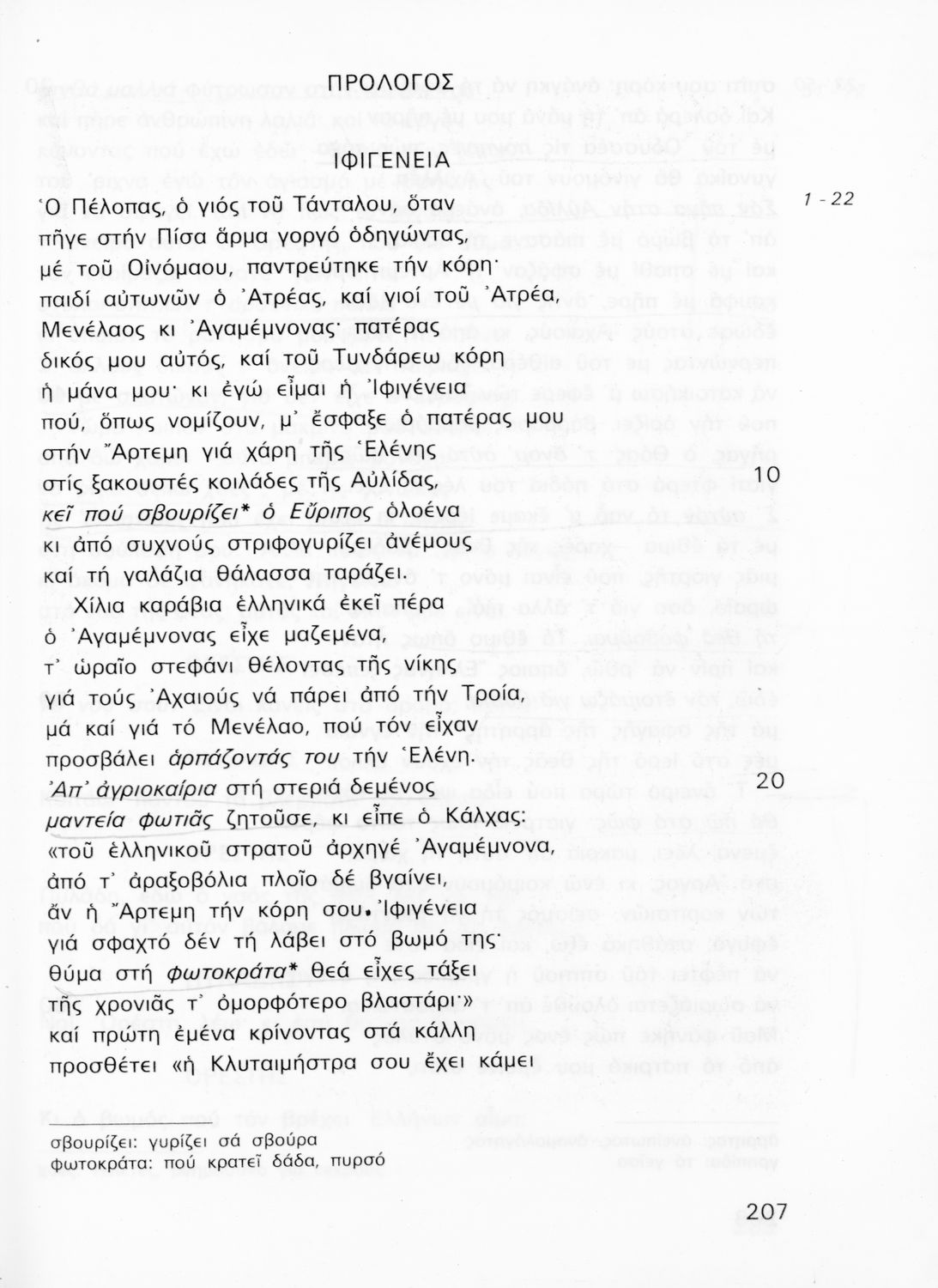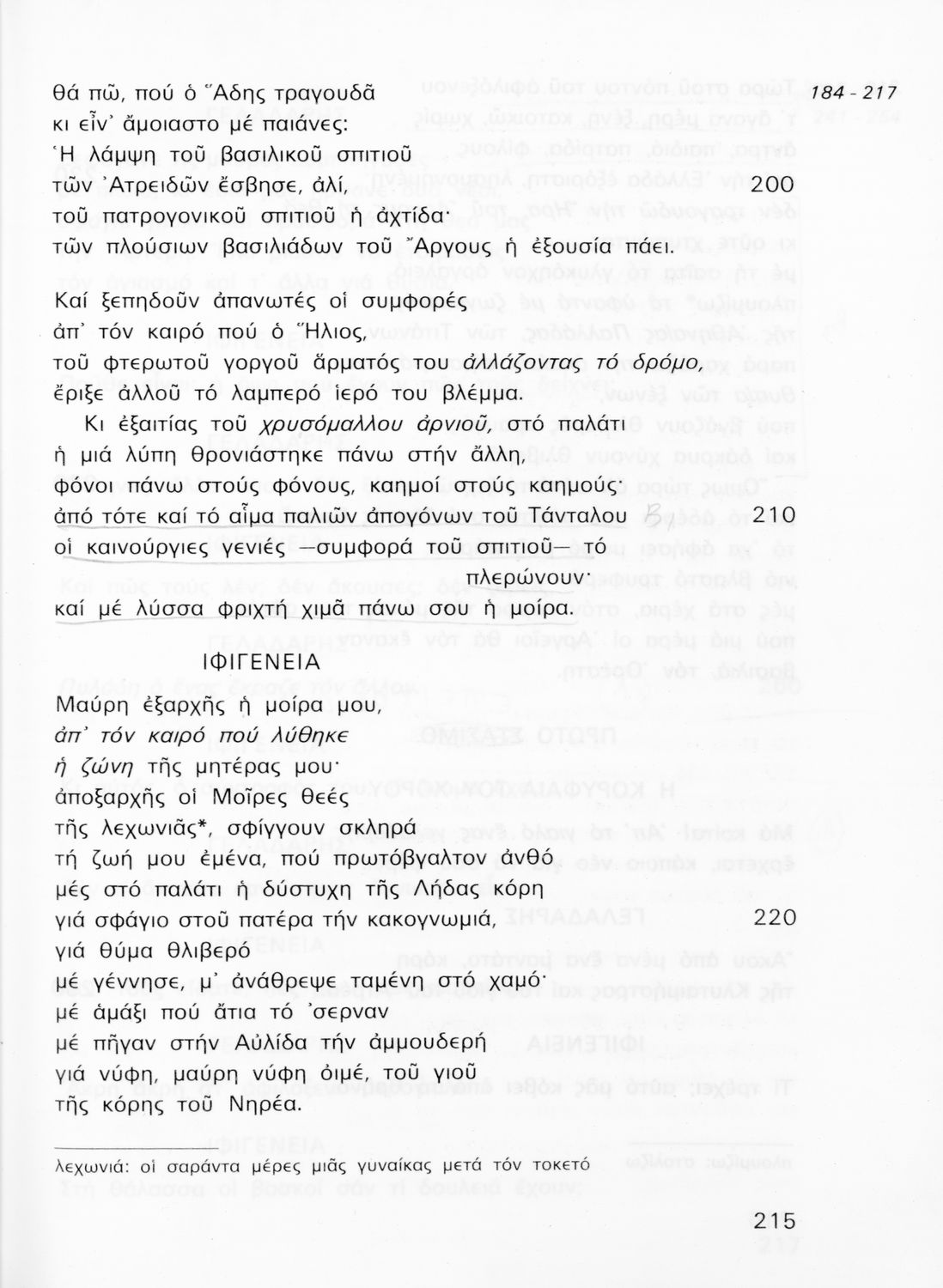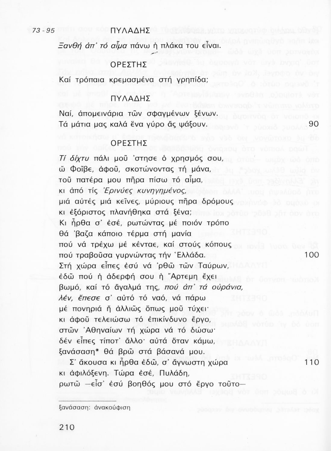 Σχολικό εγχειρίδιο Αρχαίων Ελληνικών Γ΄ Γυμνασίου που περιλαμβάνει εισαγωγή στη δραματική ποίηση, το αρχαίο θέατρο και την τραγωδία, μετάφραση των έργων Προμηθέας Δεσμώτης του Αισχύλου, Αντιγόνη του Σοφοκλή και Ιφιγένεια η εν Ταύροις του Ευριπίδη και ερμηνευτικά σχόλια.