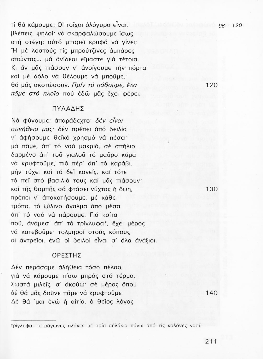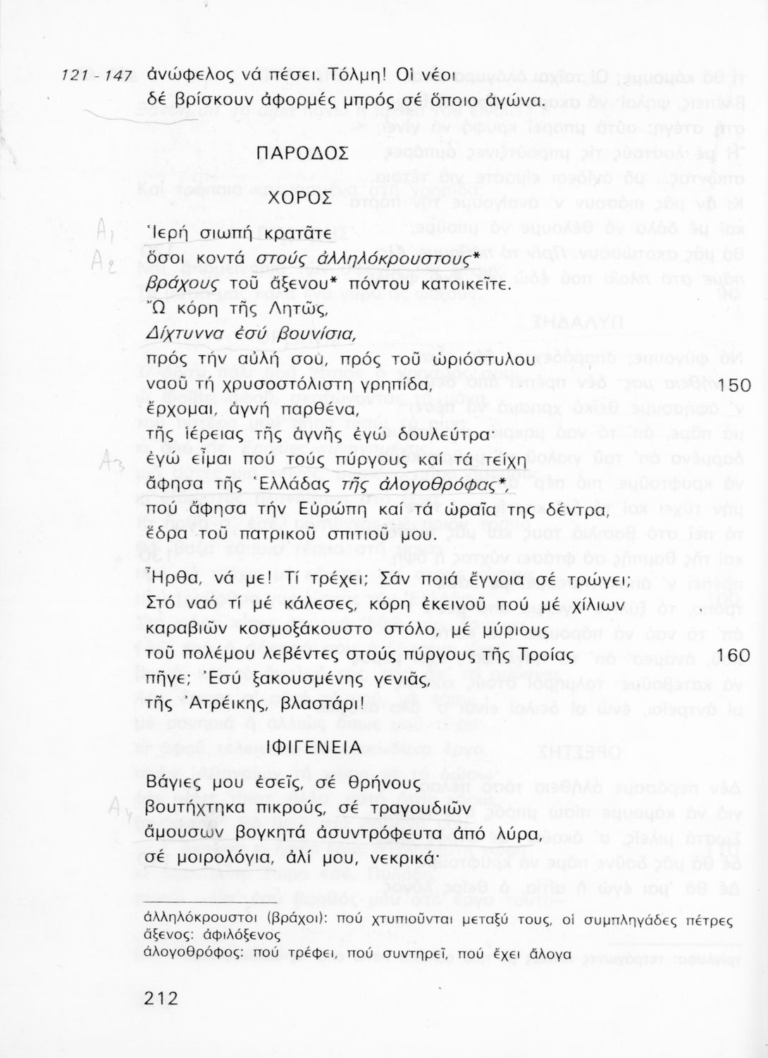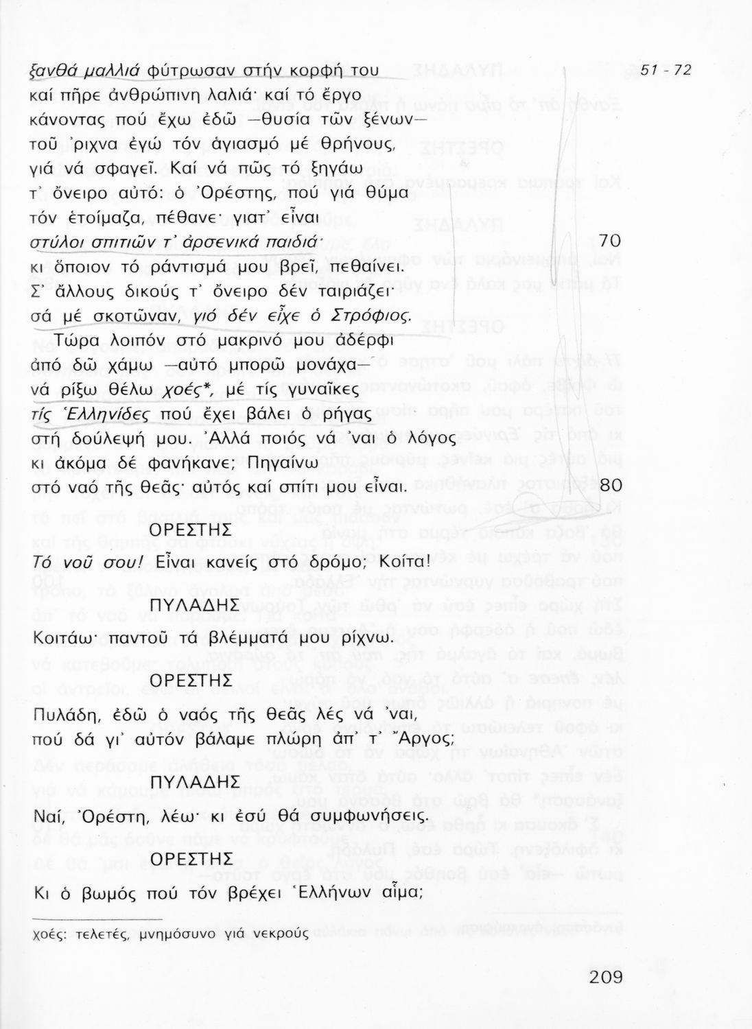 Σχολικό εγχειρίδιο Αρχαίων Ελληνικών Γ΄ Γυμνασίου που περιλαμβάνει εισαγωγή στη δραματική ποίηση, το αρχαίο θέατρο και την τραγωδία, μετάφραση των έργων Προμηθέας Δεσμώτης του Αισχύλου, Αντιγόνη του Σοφοκλή και Ιφιγένεια η εν Ταύροις του Ευριπίδη και ερμηνευτικά σχόλια.