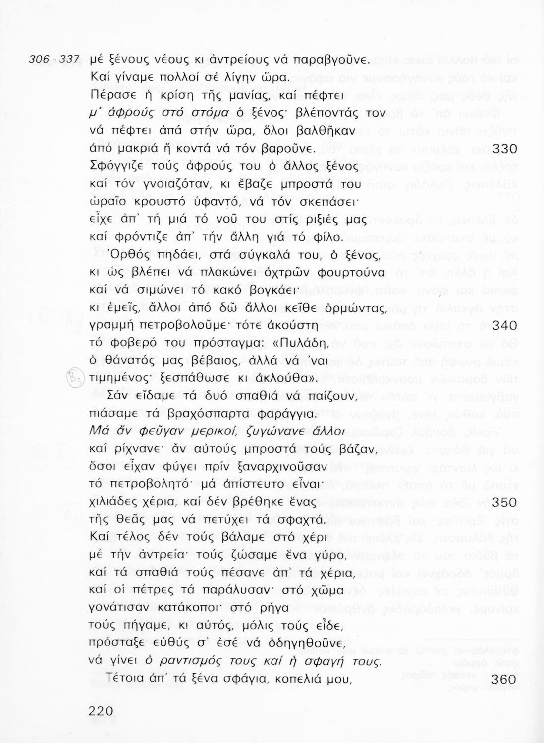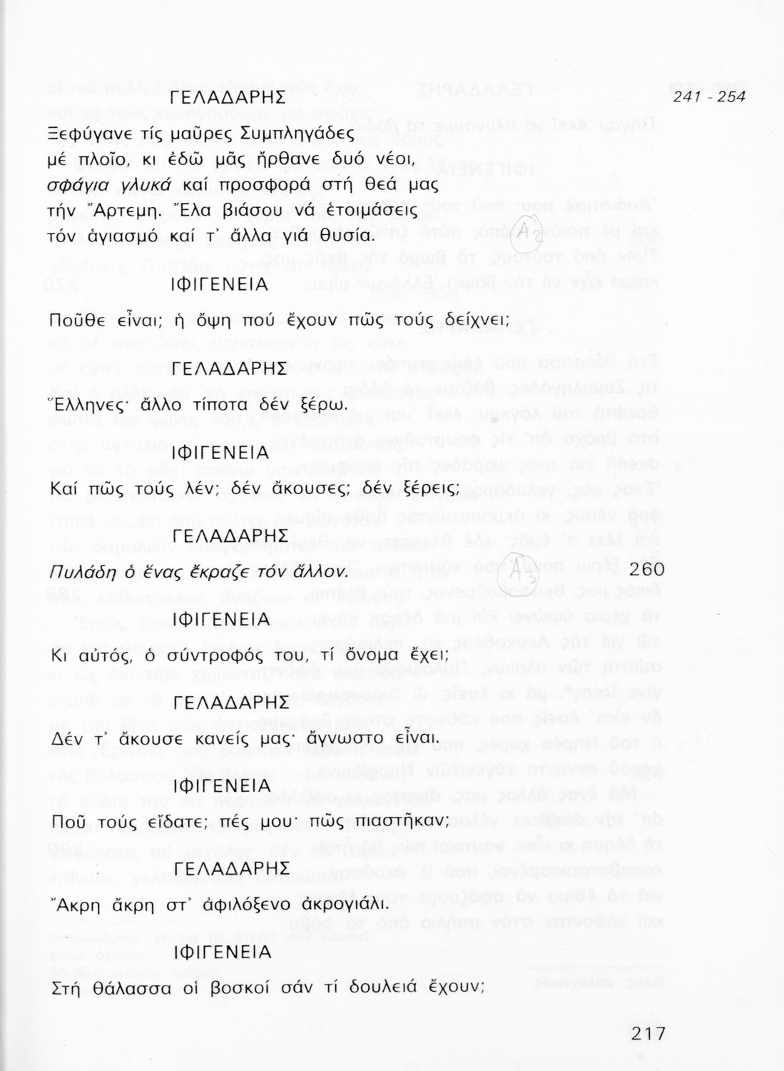 LDR 01739 2200217 4500 035 ## _a01-18005 040 ## _aΙνστιτούτο Εκπαιδευτικής Πολιτικής 041 ## _ael 100 ## _aΑισχύλος _aΣοφοκλής _aΕυριπίδης _aΙ. Γρυπάρης (μετάφραση) _aΘ. Σταύρου (σχόλια) 110 ## _a18005 245 0# _aΔραματική Ποίηση Αισχύλου: Προμηθεύς Δεσμώτης Σοφοκλή: Αντιγόνη Ευριπίδη: Ιφιγένεια η εν Ταύροις Γ΄ Γυμνασίου 250 ## _a1η Έκδοση 260 ## _aΑθήνα _bΟργανισμός Εκδόσεως Διδακτικών Βιβλίων _c1978 300 ## _a320 _bΕικόνες (ασπρόμαυρες), Εικόνες (έγχρωμες) _c20 520 ## _aΣχολικό εγχειρίδιο Αρχαίων Ελληνικών Γ΄ Γυμνασίου που περιλαμβάνει εισαγωγή στη δραματική ποίηση, το αρχαίο θέατρο και την τραγωδία, μετάφραση των έργων Προμηθέας Δεσμώτης του Αισχύλου, Αντιγόνη του Σοφοκλή και Ιφιγένεια η εν Ταύροις του Ευριπίδη και ερμηνευτικά σχόλια. 521 ## _aΓ' Γυμνασίου 522 ## _aΕλλάδα 546 ## _aΔημοτική 563 ## _aΜαλακό Εξώφυλλο 583 ## _a3079/8-8-1978 _c1978 650 #4 _aΔέηση _aΔιάνοια _aΔιθύραμβος _aΔιόνυσος _aΈξοδος _aΉθος _aΘέσπιδα _aΘίασος _aΚομμός _aΜέλος _aΜονωδίες _aΜύθος _aΌψη _aΠλοκή _aΣτάσιμα _aΥποκριτής