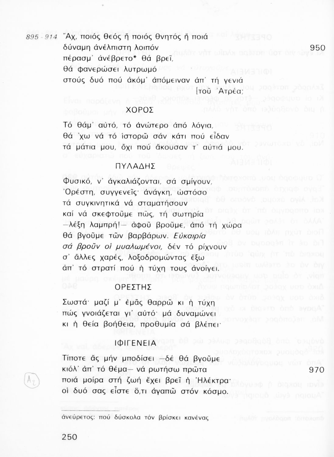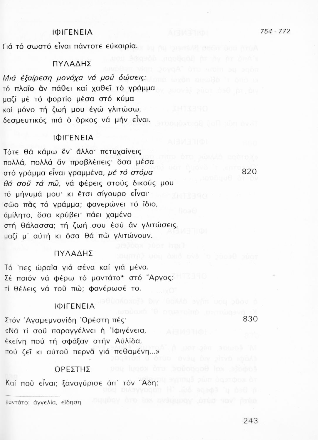 Σχολικό εγχειρίδιο Αρχαίων Ελληνικών για τη Γ' Γυμνασίου που περιλαμβάνει την τραγωδία του Ευριπίδη Ιφιγένεια η εν Αυλίδι σε μετάφραση και ερμηνευτικές σημειώσεις.