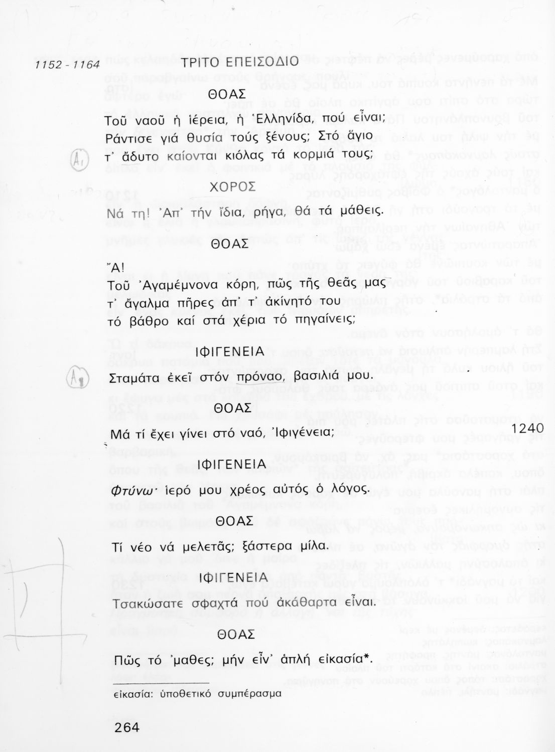Σχολικό εγχειρίδιο Αρχαίων Ελληνικών για τη Γ' Γυμνασίου που περιλαμβάνει την τραγωδία του Ευριπίδη Ιφιγένεια η εν Αυλίδι σε μετάφραση και ερμηνευτικές σημειώσεις. Φέρει το σύμβολο της δικτατορίας.