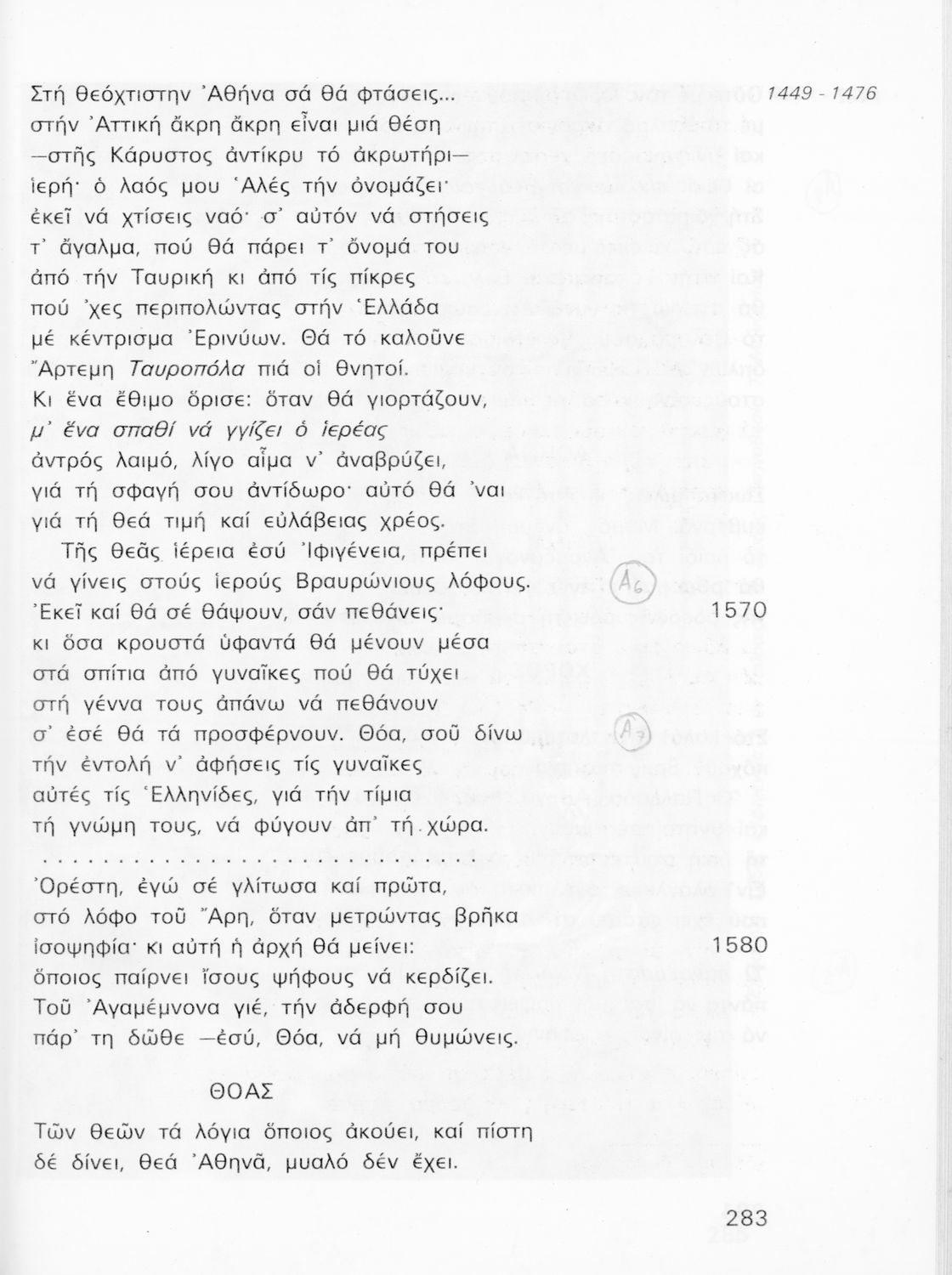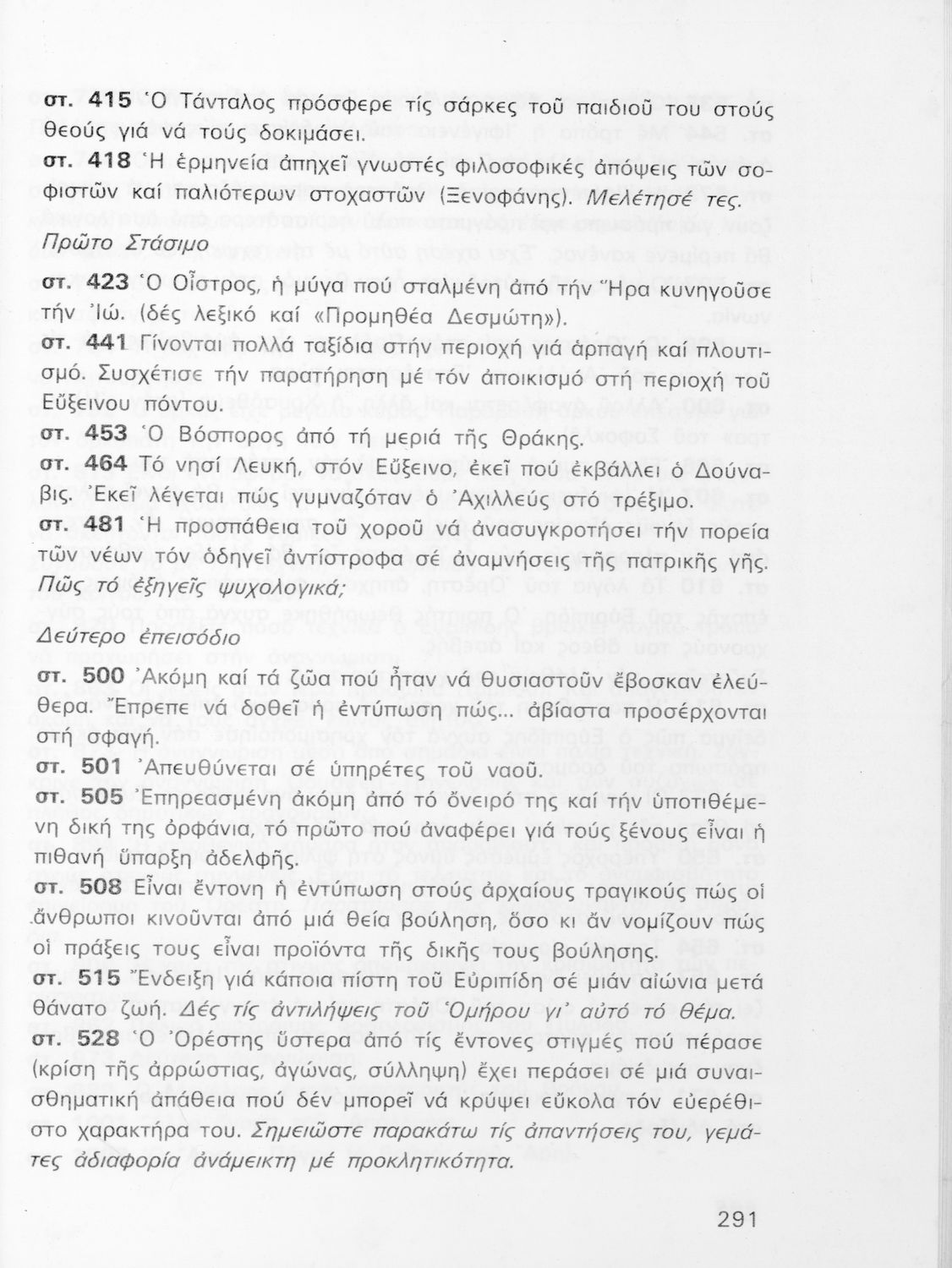 LDR 01739 2200217 4500 035 ## _a01-18005 040 ## _aΙνστιτούτο Εκπαιδευτικής Πολιτικής 041 ## _ael 100 ## _aΑισχύλος _aΣοφοκλής _aΕυριπίδης _aΙ. Γρυπάρης (μετάφραση) _aΘ. Σταύρου (σχόλια) 110 ## _a18005 245 0# _aΔραματική Ποίηση Αισχύλου: Προμηθεύς Δεσμώτης Σοφοκλή: Αντιγόνη Ευριπίδη: Ιφιγένεια η εν Ταύροις Γ΄ Γυμνασίου 250 ## _a1η Έκδοση 260 ## _aΑθήνα _bΟργανισμός Εκδόσεως Διδακτικών Βιβλίων _c1978 300 ## _a320 _bΕικόνες (ασπρόμαυρες), Εικόνες (έγχρωμες) _c20 520 ## _aΣχολικό εγχειρίδιο Αρχαίων Ελληνικών Γ΄ Γυμνασίου που περιλαμβάνει εισαγωγή στη δραματική ποίηση, το αρχαίο θέατρο και την τραγωδία, μετάφραση των έργων Προμηθέας Δεσμώτης του Αισχύλου, Αντιγόνη του Σοφοκλή και Ιφιγένεια η εν Ταύροις του Ευριπίδη και ερμηνευτικά σχόλια. 521 ## _aΓ' Γυμνασίου 522 ## _aΕλλάδα 546 ## _aΔημοτική 563 ## _aΜαλακό Εξώφυλλο 583 ## _a3079/8-8-1978 _c1978 650 #4 _aΔέηση _aΔιάνοια _aΔιθύραμβος _aΔιόνυσος _aΈξοδος _aΉθος _aΘέσπιδα _aΘίασος _aΚομμός _aΜέλος _aΜονωδίες _aΜύθος _aΌψη _aΠλοκή _aΣτάσιμα _aΥποκριτής