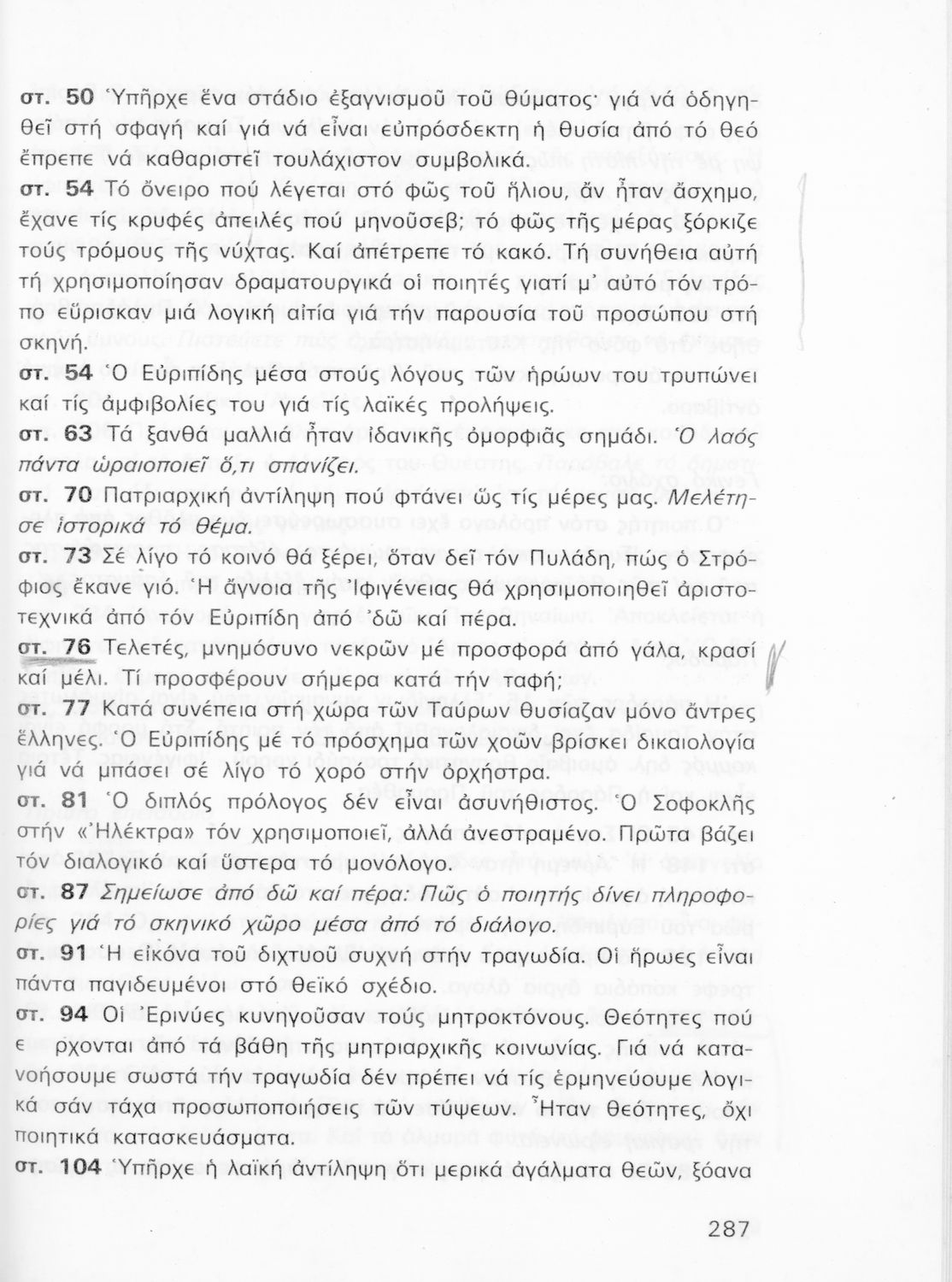 Σχολικό εγχειρίδιο Αρχαίων Ελληνικών Γ΄ Γυμνασίου που περιλαμβάνει εισαγωγή στη δραματική ποίηση, το αρχαίο θέατρο και την τραγωδία, μετάφραση των έργων Προμηθέας Δεσμώτης του Αισχύλου, Αντιγόνη του Σοφοκλή και Ιφιγένεια η εν Ταύροις του Ευριπίδη και ερμηνευτικά σχόλια.