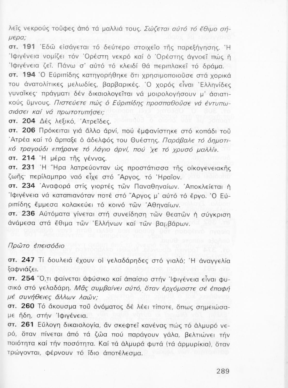 Βαθμίδα εκπαίδευσης: Δευτεροβάθμια Τάξη: Γ' Γυμνασίου Μάθημα: Αρχαία Ελληνικά Γλώσσα: Δημοτική Παρουσίαση περιεχομένου: Σχολικό εγχειρίδιο Αρχαίων Ελληνικών Γ΄ Γυμνασίου που περιλαμβάνει εισαγωγή στη δραματική ποίηση, το αρχαίο θέατρο και την τραγωδία, μετάφραση των έργων Προμηθέας Δεσμώτης του Αισχύλου, Αντιγόνη του Σοφοκλή και Ιφιγένεια η εν Ταύροις του Ευριπίδη και ερμηνευτικά σχόλια. |