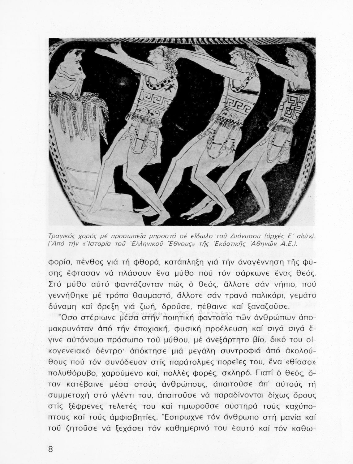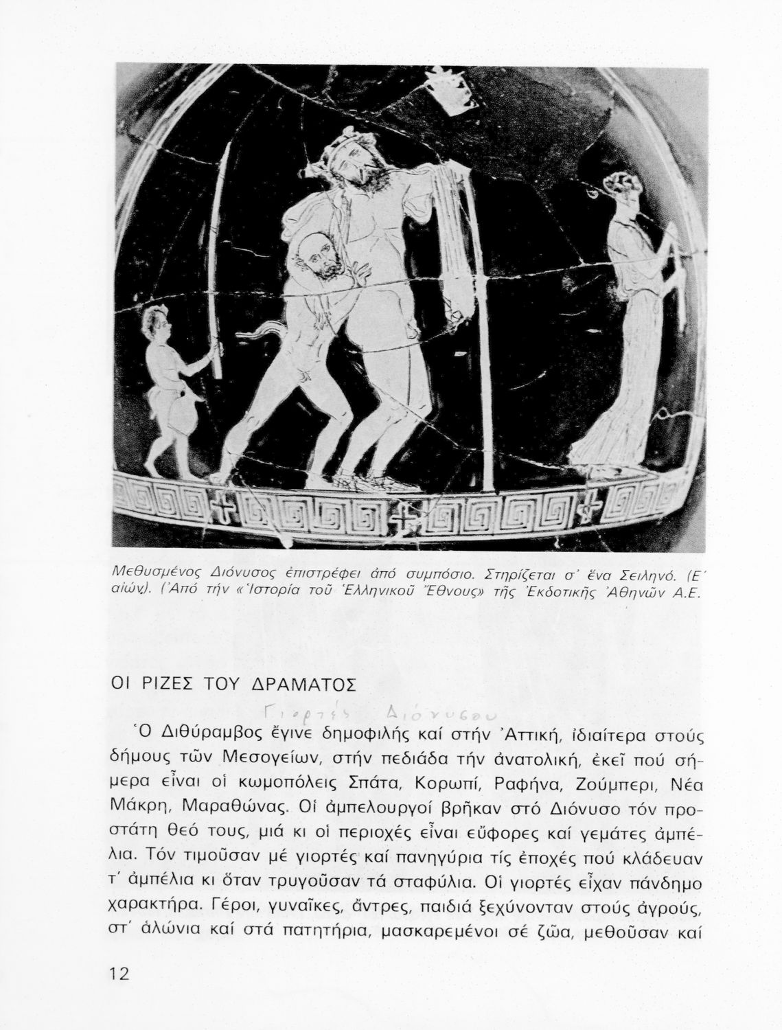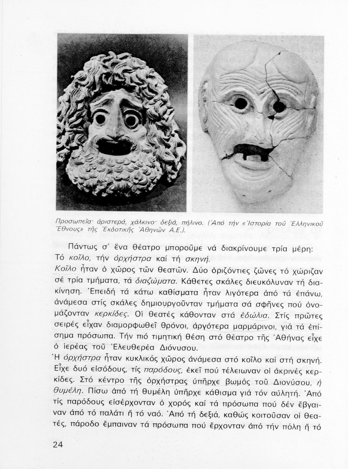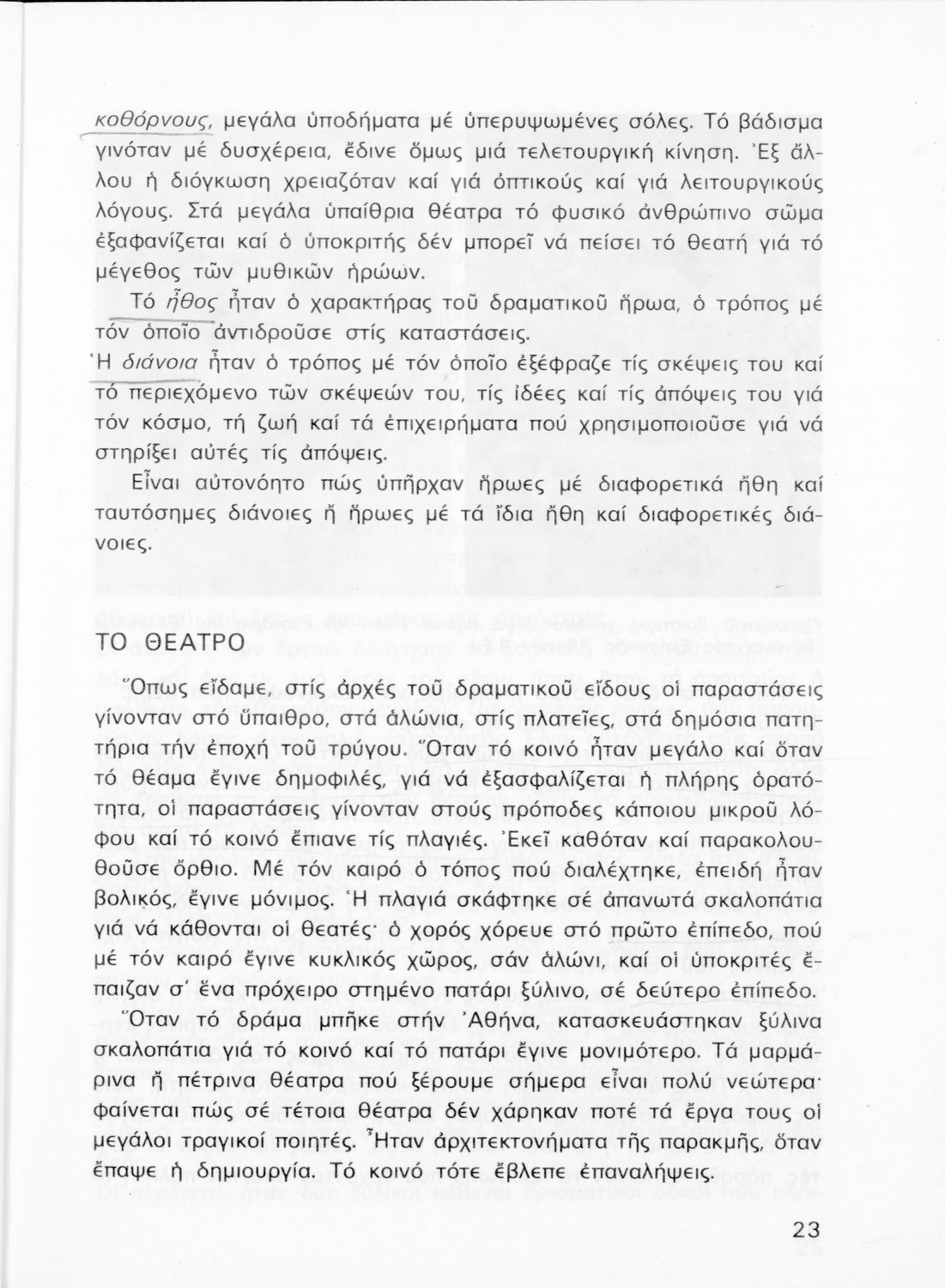 Σχολικό εγχειρίδιο Αρχαίων Ελληνικών Γ΄ Γυμνασίου που περιλαμβάνει εισαγωγή στη δραματική ποίηση, το αρχαίο θέατρο και την τραγωδία, μετάφραση των έργων Προμηθέας Δεσμώτης του Αισχύλου, Αντιγόνη του Σοφοκλή και Ιφιγένεια η εν Ταύροις του Ευριπίδη και ερμηνευτικά σχόλια.