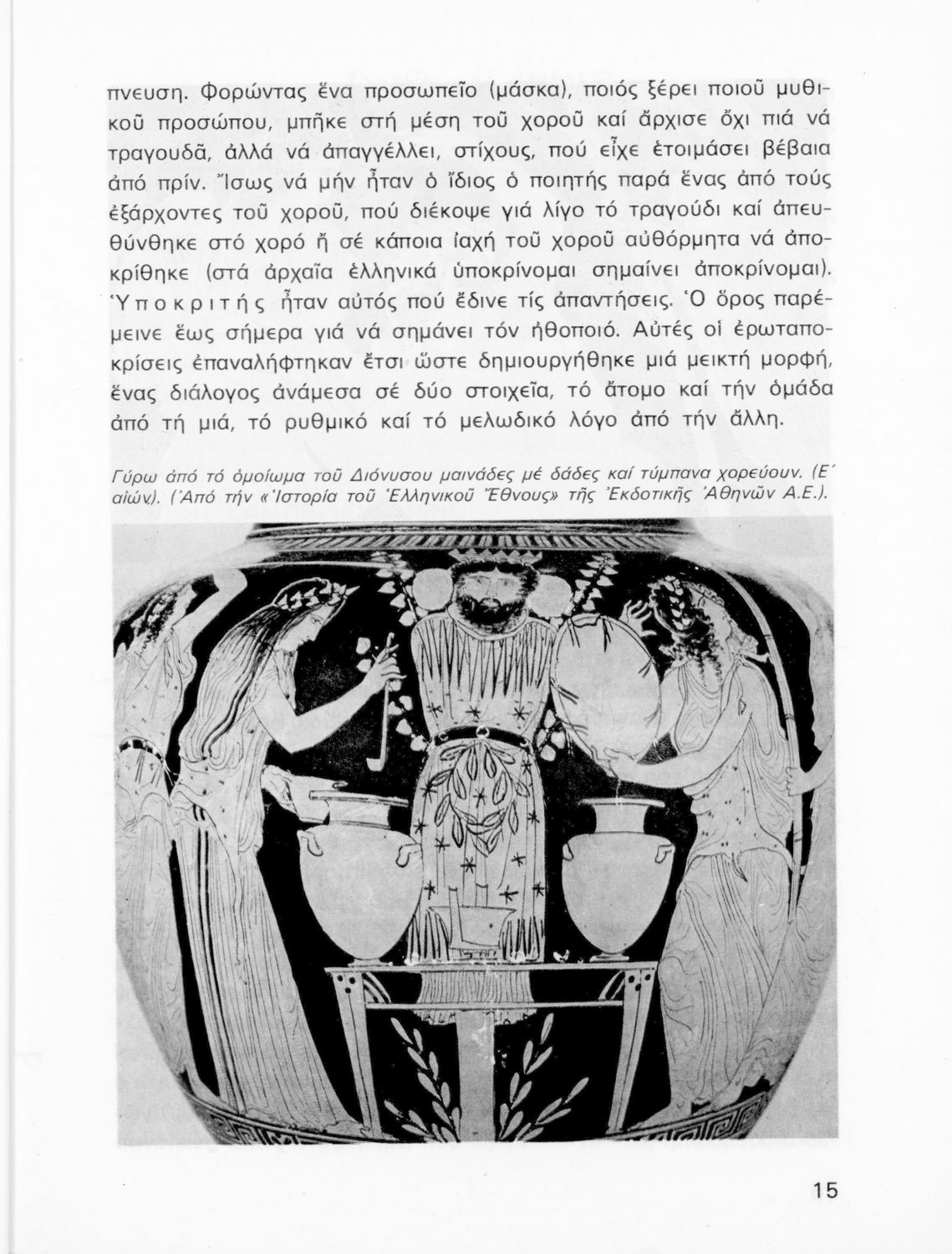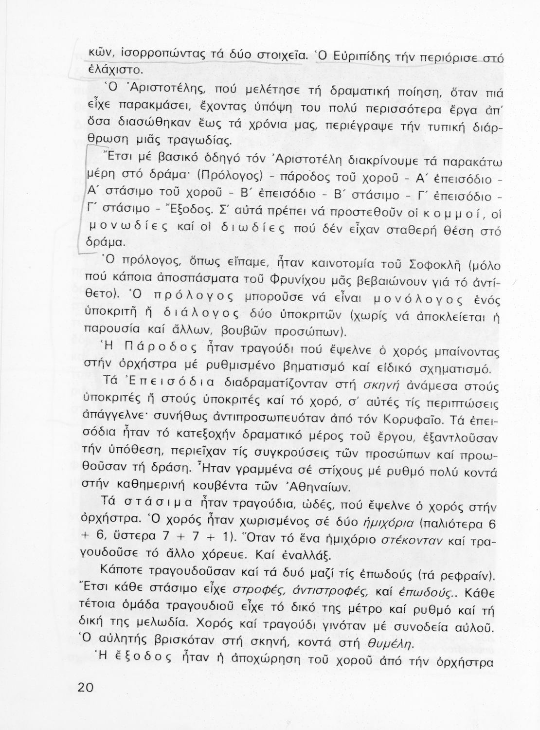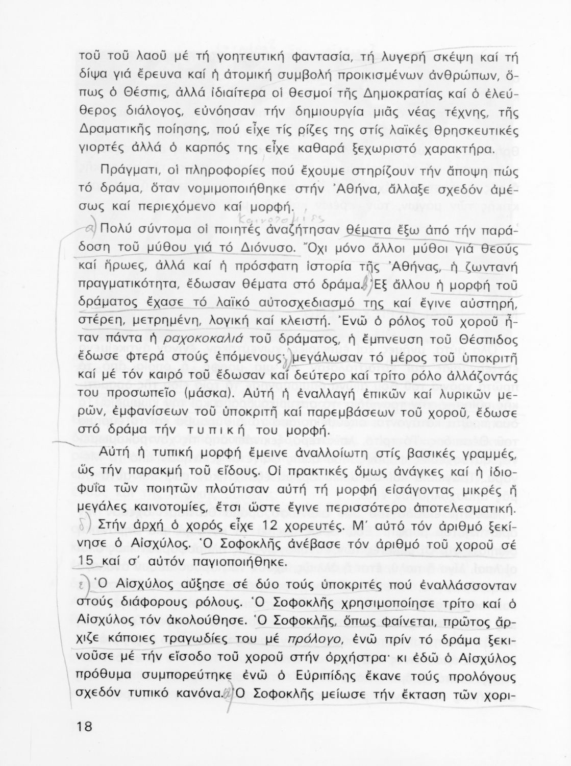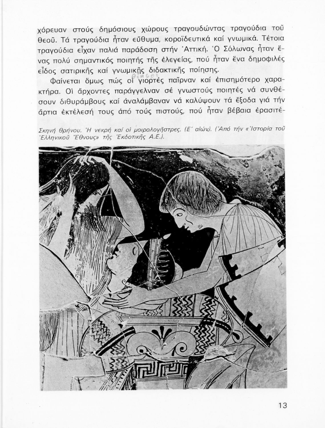Σχολικό εγχειρίδιο Αρχαίων Ελληνικών Γ΄ Γυμνασίου που περιλαμβάνει εισαγωγή στη δραματική ποίηση, το αρχαίο θέατρο και την τραγωδία, μετάφραση των έργων Προμηθέας Δεσμώτης του Αισχύλου, Αντιγόνη του Σοφοκλή και Ιφιγένεια η εν Ταύροις του Ευριπίδη και ερμηνευτικά σχόλια.