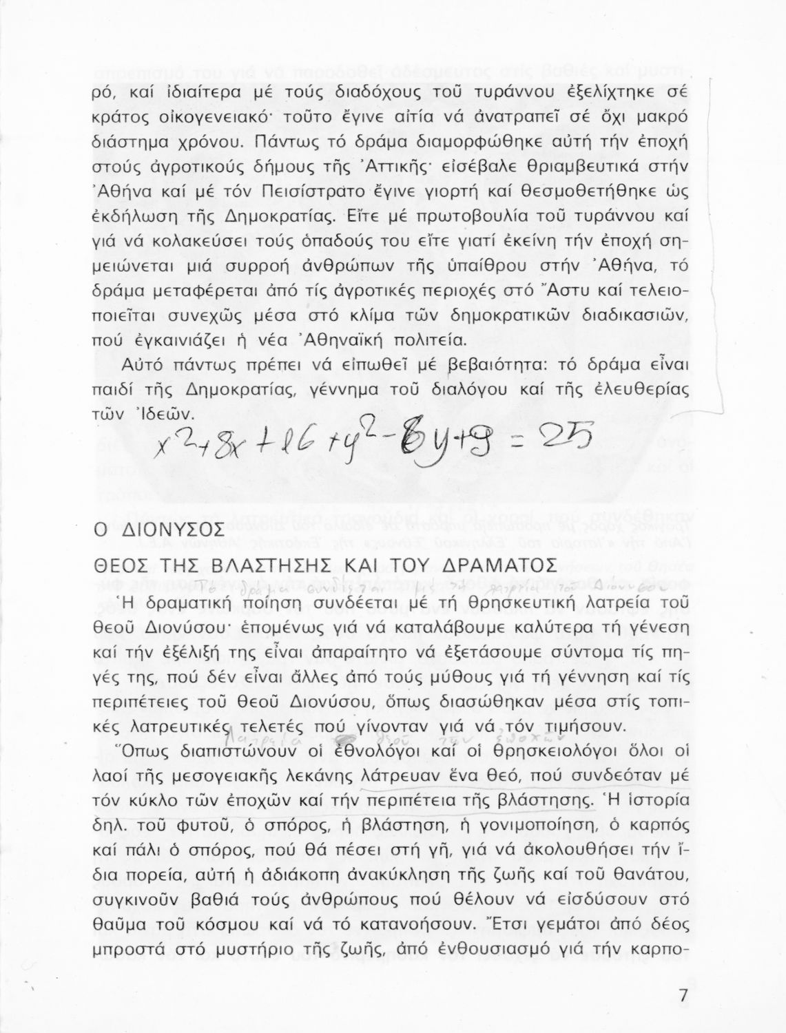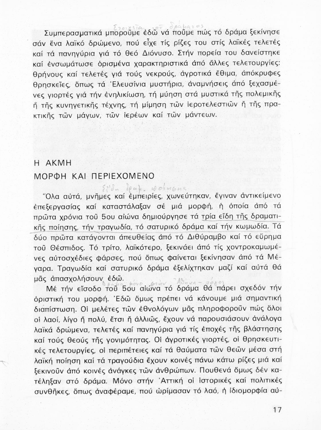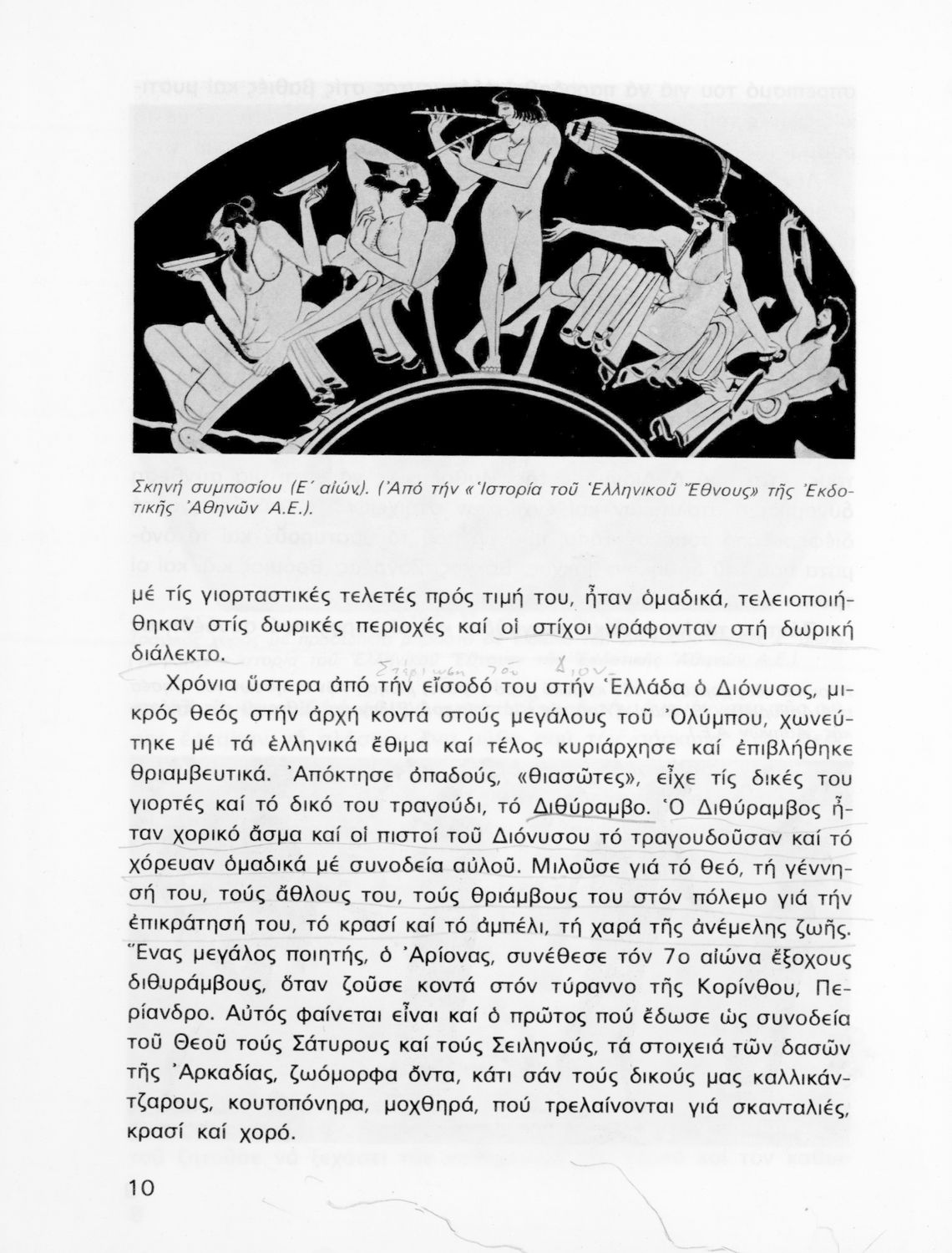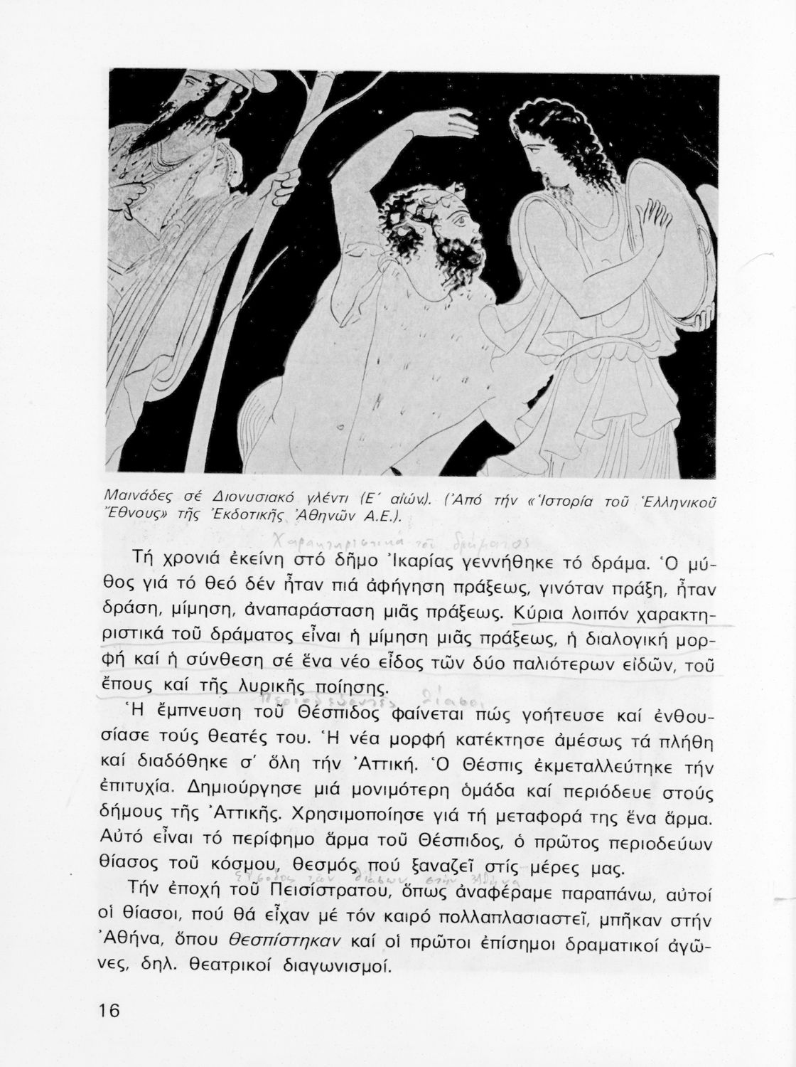 Σχολικό εγχειρίδιο Αρχαίων Ελληνικών Γ΄ Γυμνασίου που περιλαμβάνει εισαγωγή στη δραματική ποίηση, το αρχαίο θέατρο και την τραγωδία, μετάφραση των έργων Προμηθέας Δεσμώτης του Αισχύλου, Αντιγόνη του Σοφοκλή και Ιφιγένεια η εν Ταύροις του Ευριπίδη και ερμηνευτικά σχόλια.