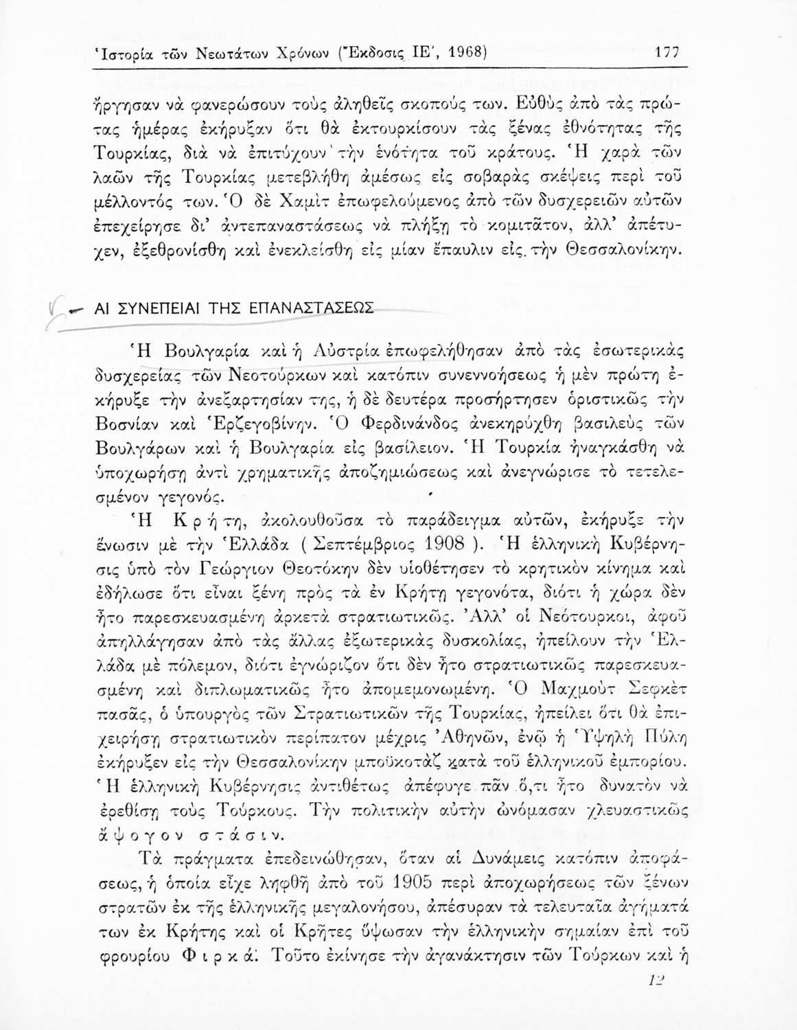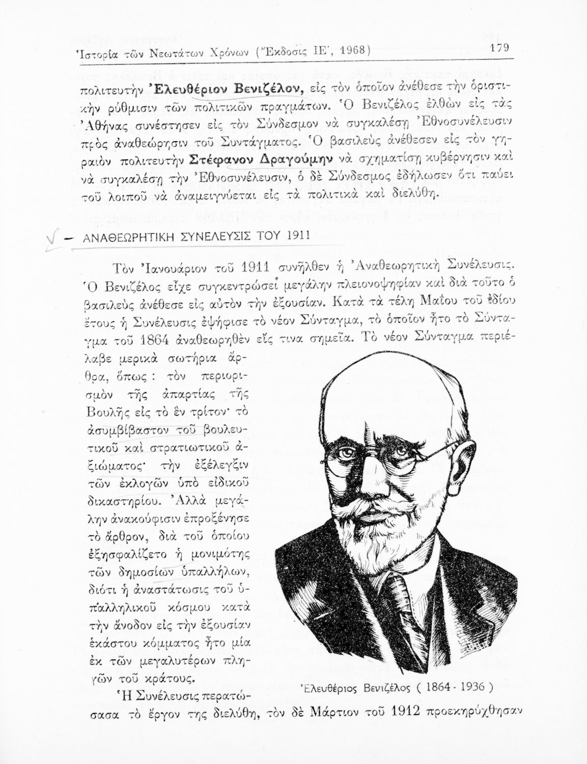 Σχολικό εγχειρίδιο Ιστορίας που καλύπτει την περίοδο από τη Συνθήκη της Βιέννης και την εδραίωση των εθνικών κρατών μέχρι τον Α΄ Παγκόσμιο Πόλεμο και τις εξελίξεις στην Ευρώπη. Αναφέρεται και στα επιτεύγματα του ευρωπαϊκού πολιτισμού, τις τέχνες και τα γράμματα. Φέρει το σύμβολο της δικτατορίας.