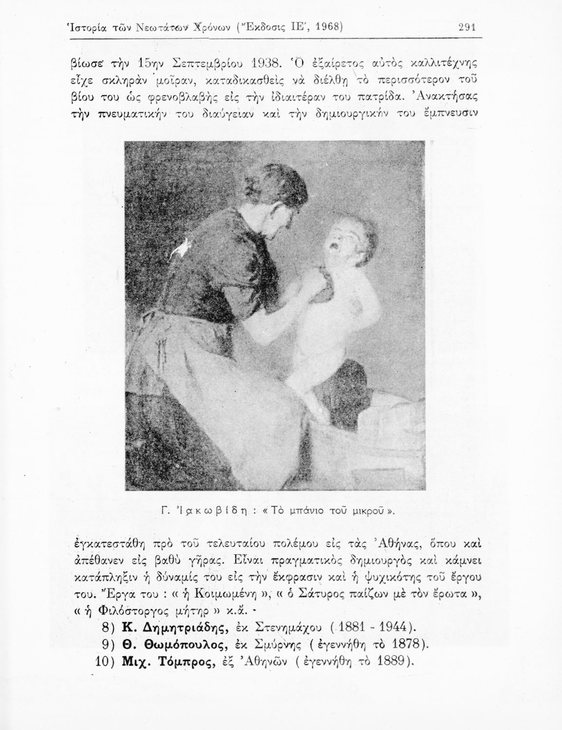 Σχολικό εγχειρίδιο Ιστορίας που καλύπτει την περίοδο από τη Συνθήκη της Βιέννης και την εδραίωση των εθνικών κρατών μέχρι τον Α΄ Παγκόσμιο Πόλεμο και τις εξελίξεις στην Ευρώπη. Αναφέρεται και στα επιτεύγματα του ευρωπαϊκού πολιτισμού, τις τέχνες και τα γράμματα. Φέρει το σύμβολο της δικτατορίας.