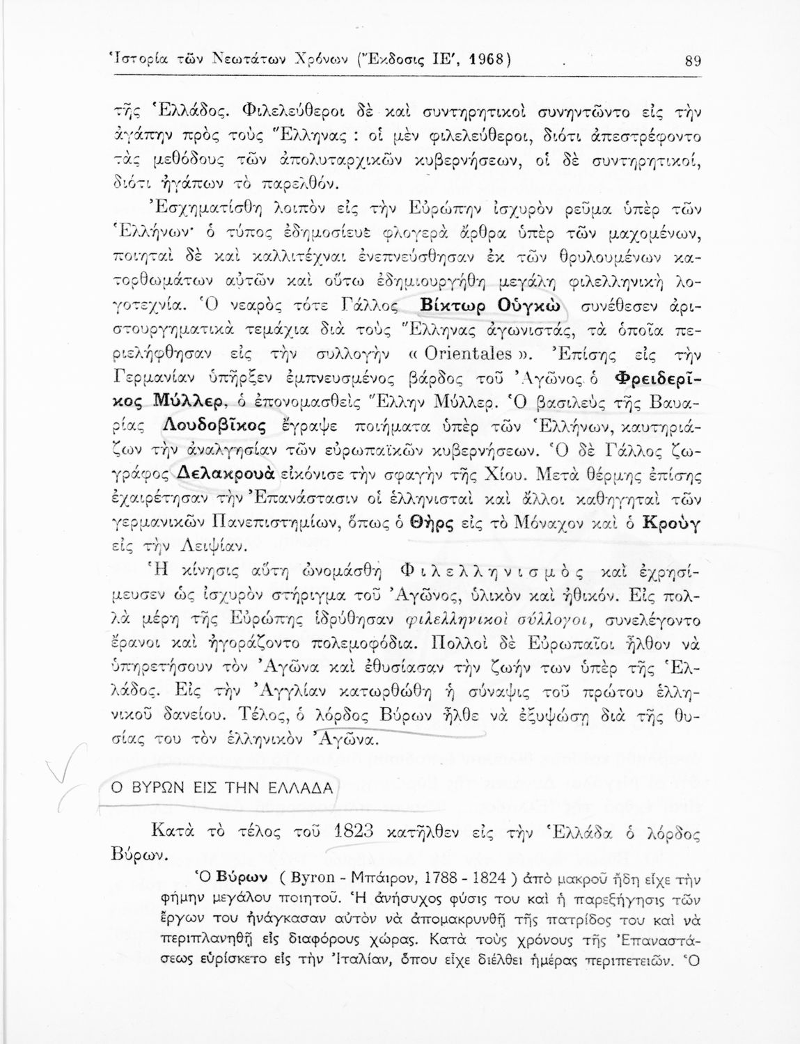 Σχολικό εγχειρίδιο Ιστορίας που καλύπτει την περίοδο από τη Συνθήκη της Βιέννης και την εδραίωση των εθνικών κρατών μέχρι τον Α΄ Παγκόσμιο Πόλεμο και τις εξελίξεις στην Ευρώπη. Αναφέρεται και στα επιτεύγματα του ευρωπαϊκού πολιτισμού, τις τέχνες και τα γράμματα. Φέρει το σύμβολο της δικτατορίας.