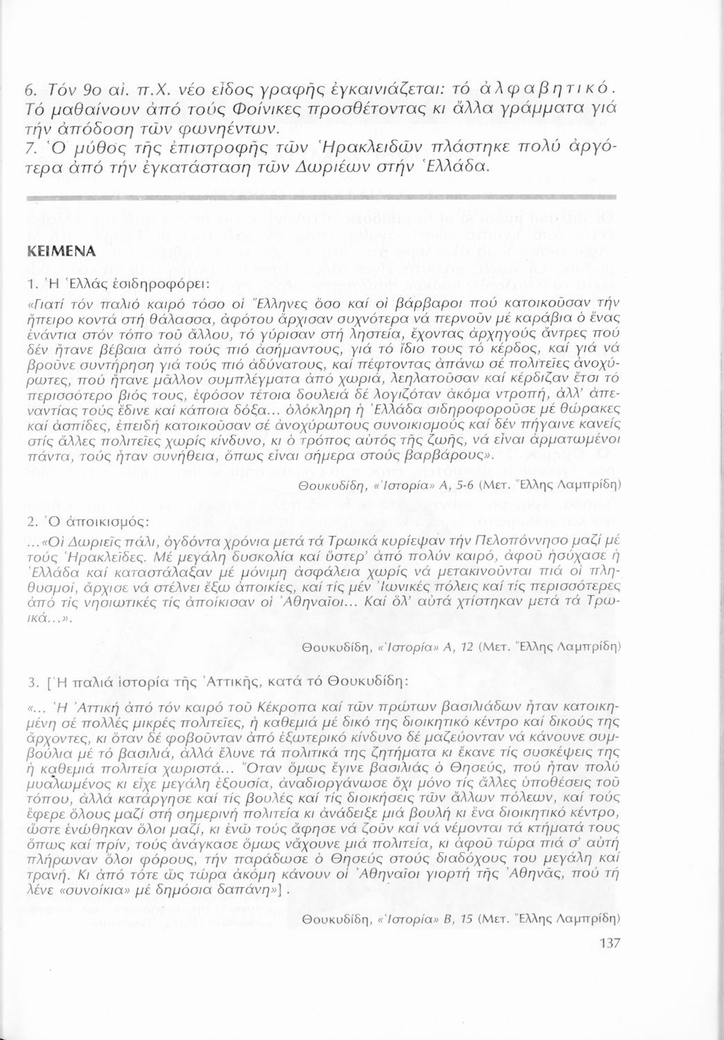 Βαθμίδα εκπαίδευσης: Δευτεροβάθμια Τάξη: Α' Λυκείου Μάθημα: Ιστορία Γλώσσα: Δημοτική Παρουσίαση περιεχομένου: Σχολικό εγχειρίδιο Ιστορίας Α΄ Λυκείου που καλύπτει την περίοδο από την περίοδο από την εμφάνιση των πρώτων πολιτισμών μέχρι τους Καρχηδονικούς Πολέμους. Περιλαμβάνει χρονολόγιο και γλωσσάριο με επεξήγηση ορισμών. |