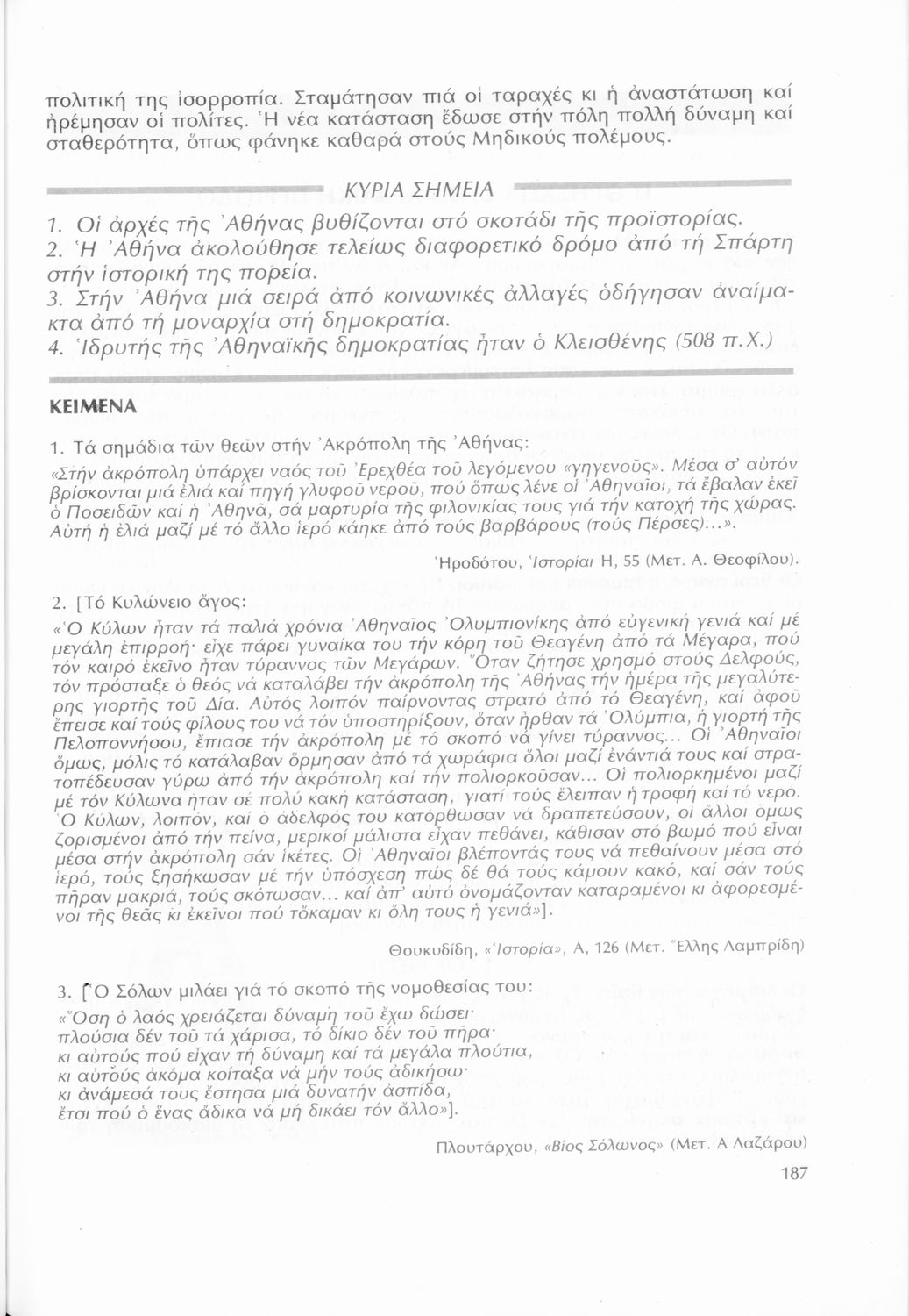 Βαθμίδα εκπαίδευσης: Δευτεροβάθμια Τάξη: Α' Λυκείου Μάθημα: Ιστορία Γλώσσα: Δημοτική Παρουσίαση περιεχομένου: Σχολικό εγχειρίδιο Ιστορίας Α΄ Λυκείου που καλύπτει την περίοδο από την περίοδο από την εμφάνιση των πρώτων πολιτισμών μέχρι τους Καρχηδονικούς Πολέμους. Περιλαμβάνει χρονολόγιο και γλωσσάριο με επεξήγηση ορισμών. |