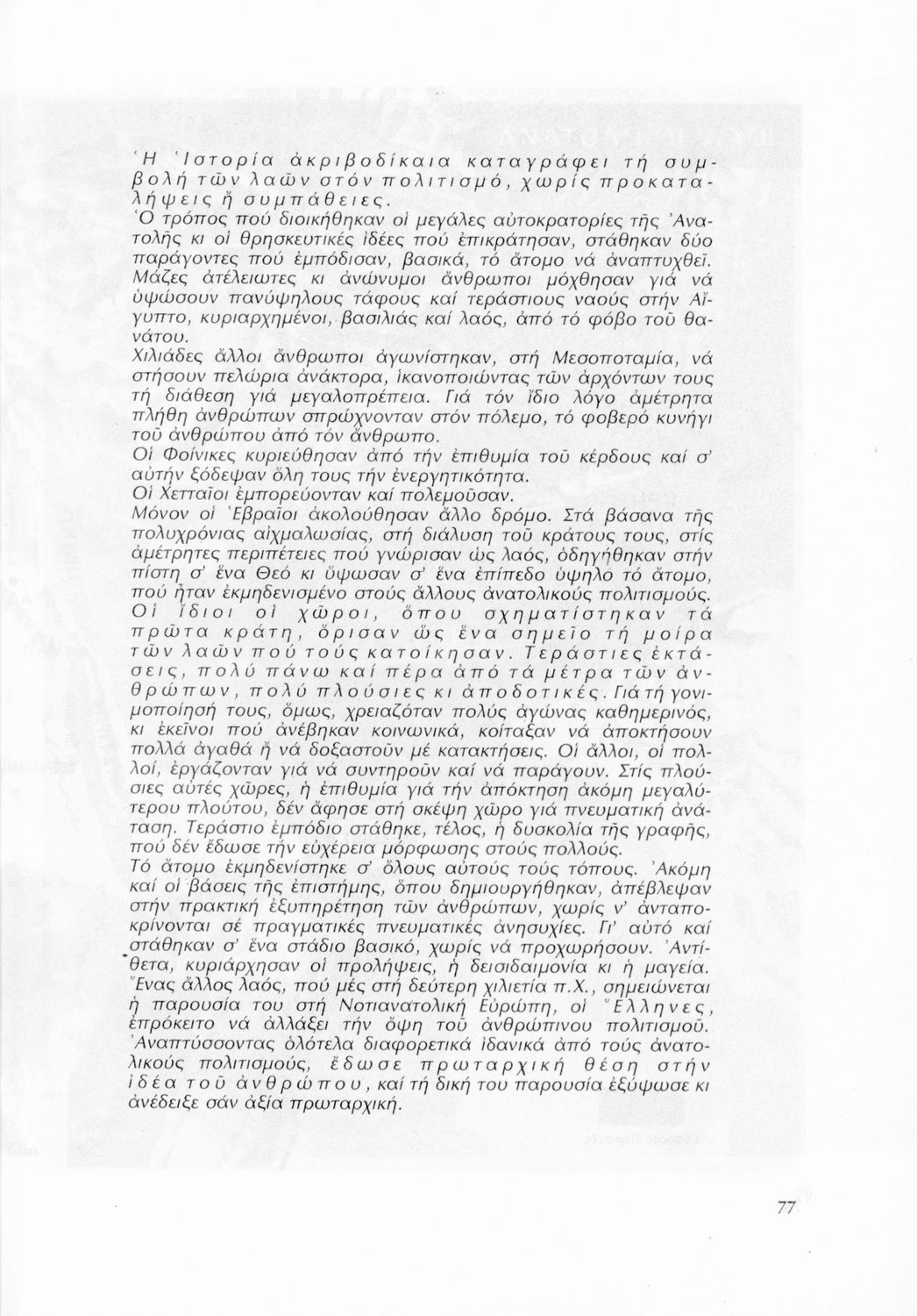 LDR 01421 2200217 4500 035 ## _a01-18007 040 ## _aΙνστιτούτο Εκπαιδευτικής Πολιτικής 041 ## _ael 100 ## _aΑθηνά Γ. Καλογεροπούλου 110 ## _a18007 245 0# _aΙστορία των αρχαίων χρόνων ως τα 146 π. Χ. Α΄ Λυκείου 250 ## _a3η Έκδοση 260 ## _aΑθήνα _bΟργανισμός Εκδόσεως Διδακτικών Βιβλίων _c1977 300 ## _a400 _bΣκίτσα, εικόνες και χάρτες (ασπρόμαυρα και έγχρωμα) 520 ## _aΣχολικό εγχειρίδιο Ιστορίας Α΄ Λυκείου που καλύπτει την περίοδο από την περίοδο από την εμφάνιση των πρώτων πολιτισμών μέχρι τους Καρχηδονικούς Πολέμους. Περιλαμβάνει χρονολόγιο και γλωσσάριο με επεξήγηση ορισμών. 521 ## _aΑ' Λυκείου 522 ## _aΕλλάδα 546 ## _aΔημοτική 563 ## _aΜαλακό Εξώφυλλο 583 ## _a2864/20-5-1977 _c1977 650 #4 _aΑιγύπτοι _aΑποικίες _aΔωριείς _aΚαρχηδόνα _aΜ Αλέξανδρος _aΜακεδονία _aΠελοποννησιακός πόλεμος _aΠερικλής _aΠέρσες _aΡώμη