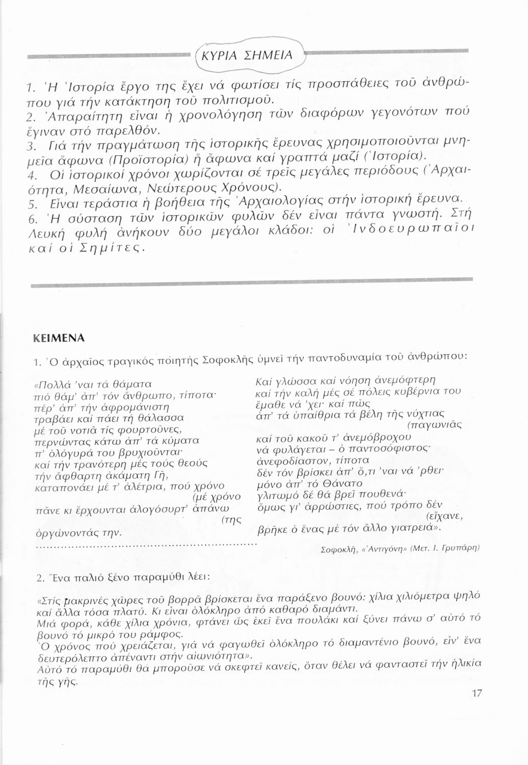 Σχολικό εγχειρίδιο Ιστορίας Α΄ Γυμνασίου και Α΄ Λυκείου που καλύπτει την περίοδο από την περίοδο από την εμφάνιση των πρώτων πολιτισμών μέχρι τους Καρχηδονικούς Πολέμους. Περιλαμβάνει χρονολόγιο και γλωσσάριο ...