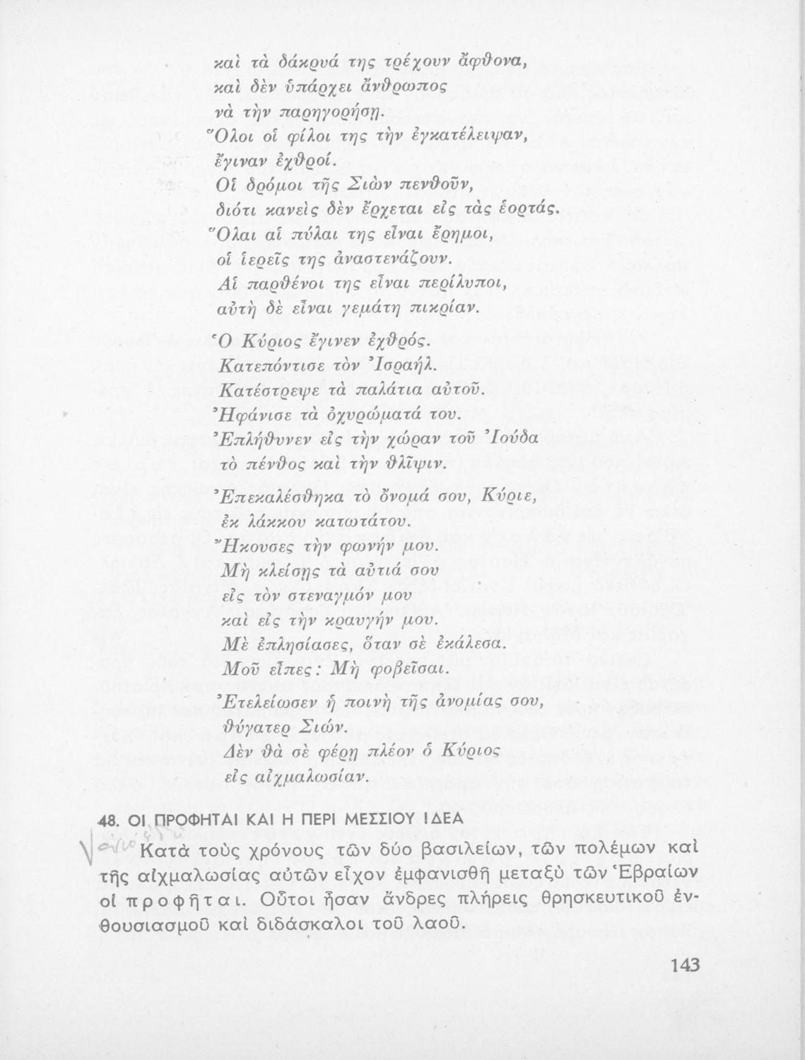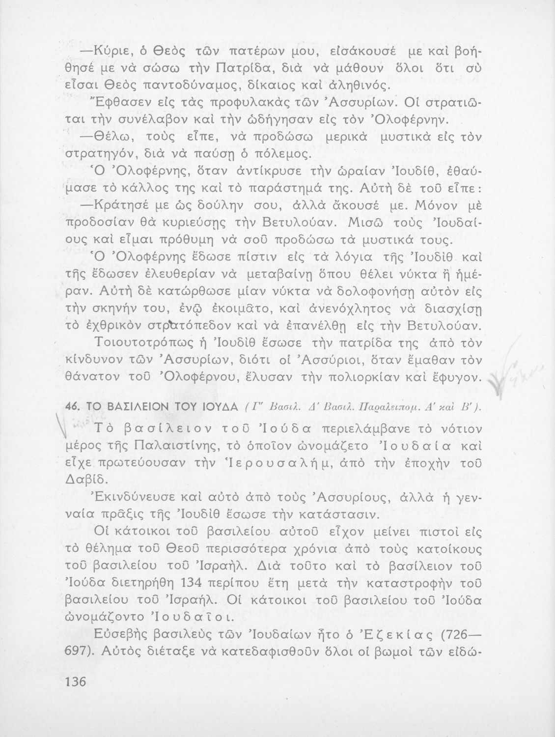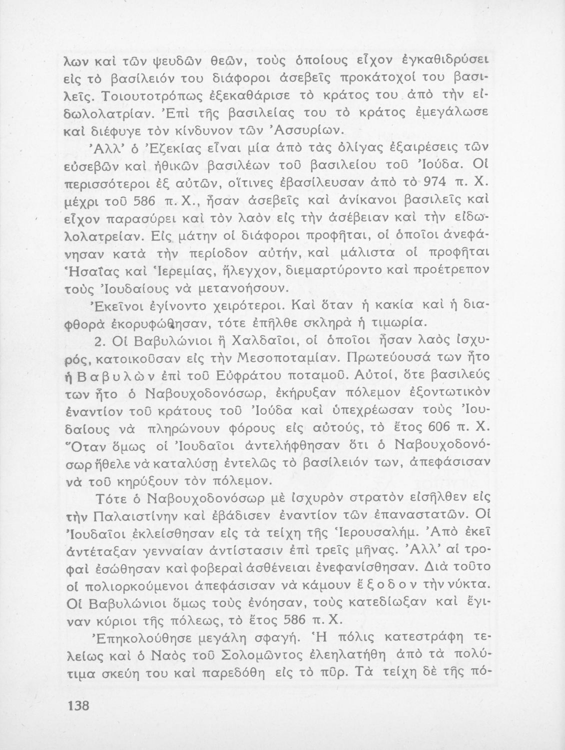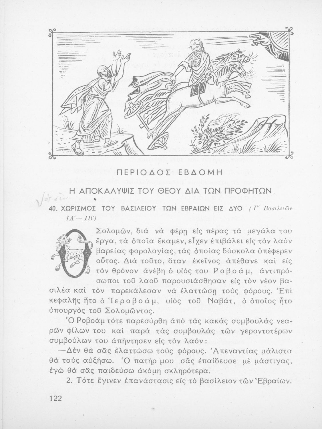 Σχολικό εγχειρίδιο Θρησκευτικών που συνιστά μία εξιστόρηση της Παλαιάς Διαθήκης από τη δημιουργία του κόσμου ως την υποταγή των Εβραίων στους Ρωμαίους.