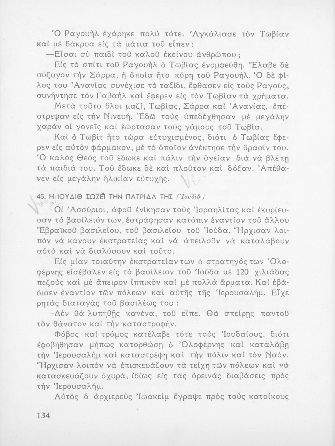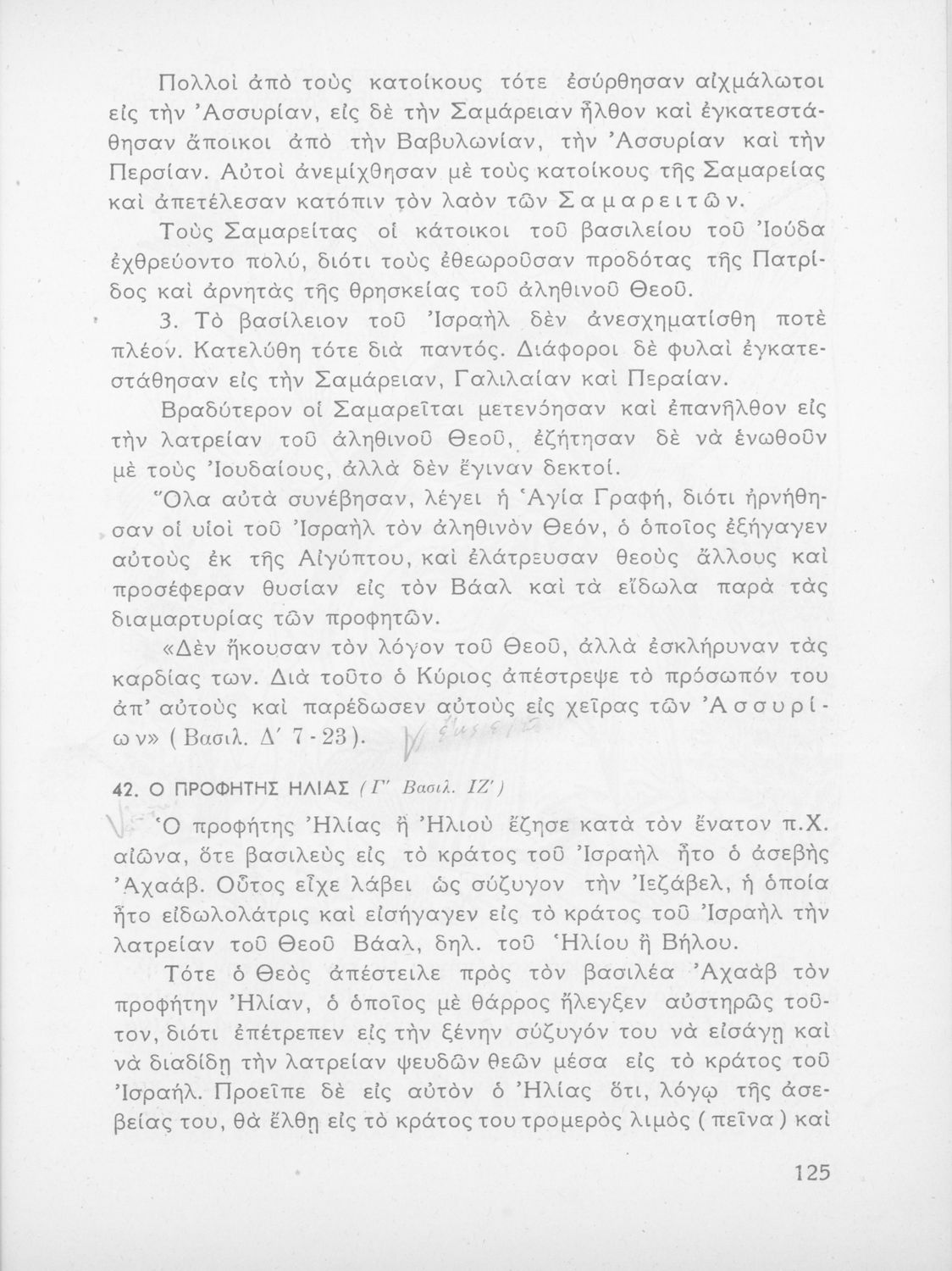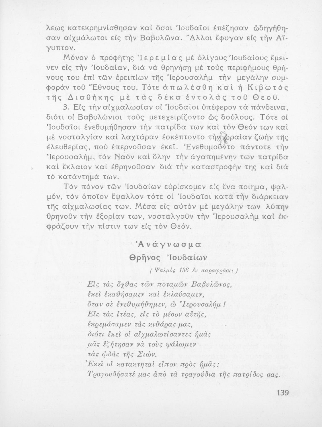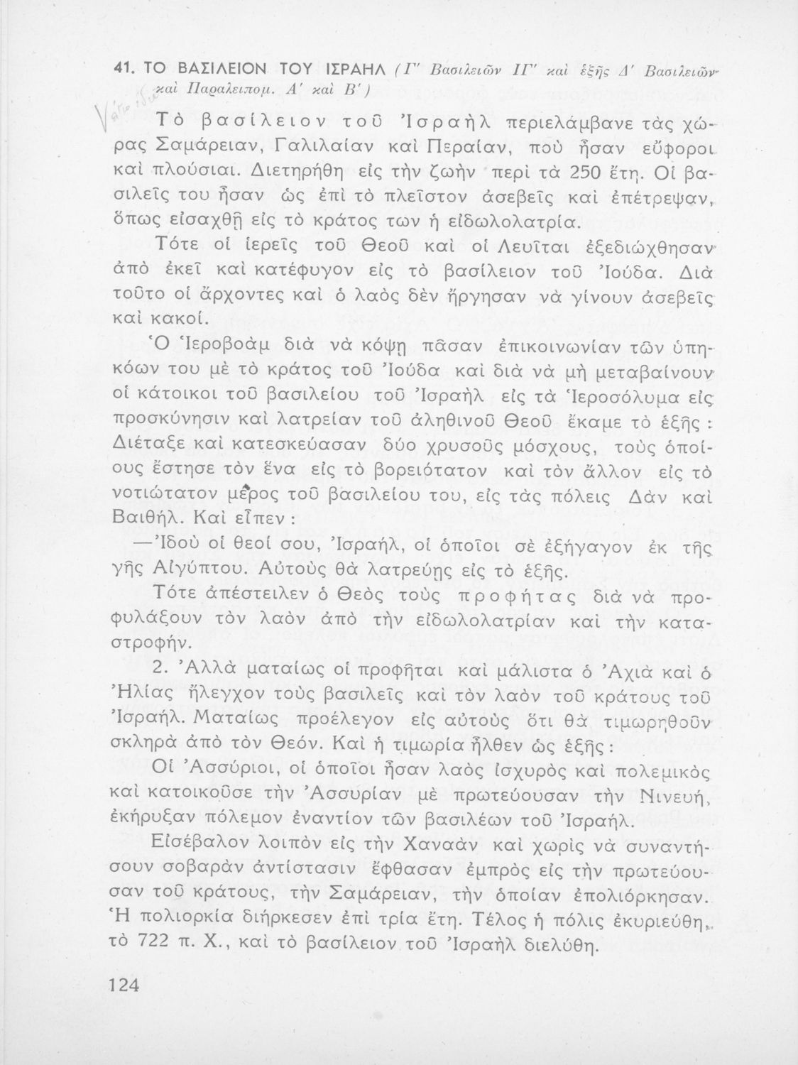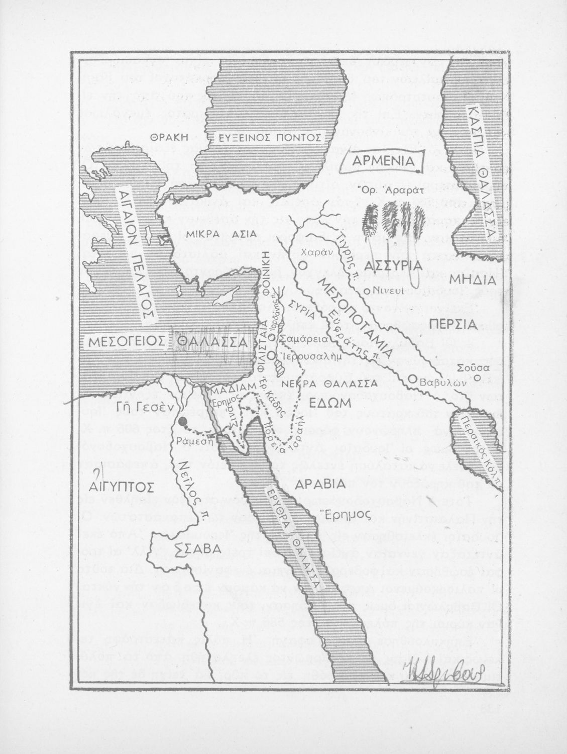 Σχολικό εγχειρίδιο Θρησκευτικών που συνιστά μία εξιστόρηση της Παλαιάς Διαθήκης από τη δημιουργία του κόσμου ως την υποταγή των Εβραίων στους Ρωμαίους. Περιέχει και στοιχεία γεωγραφίας της Παλαιστίνης.