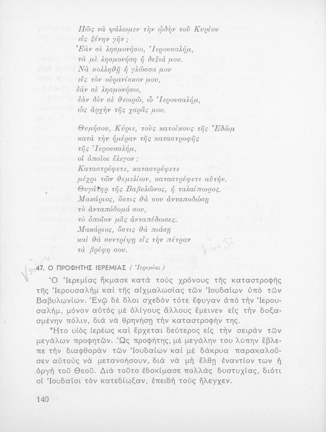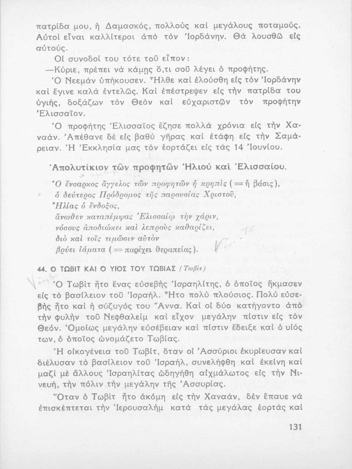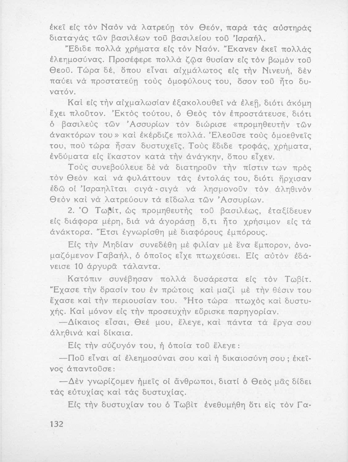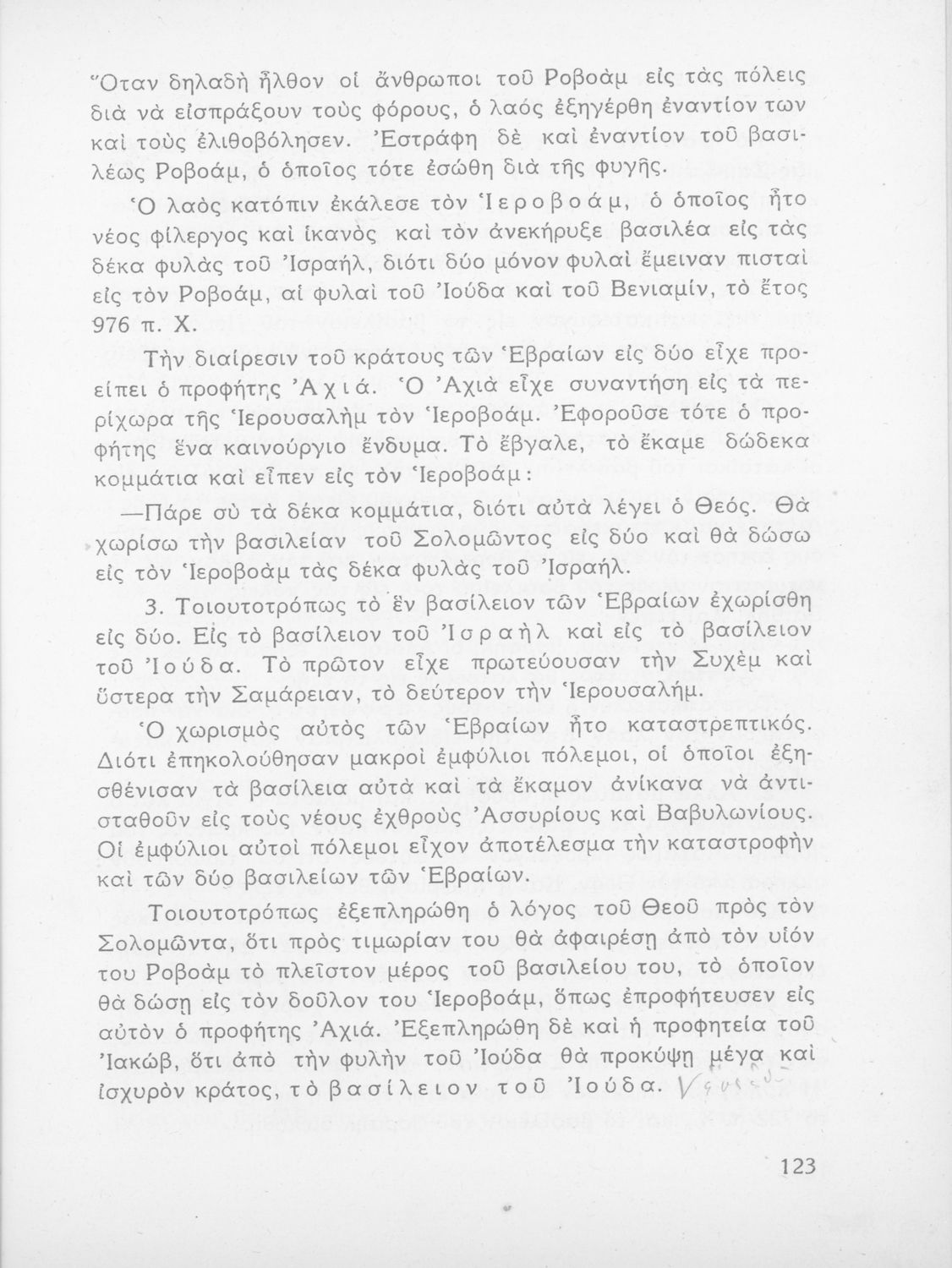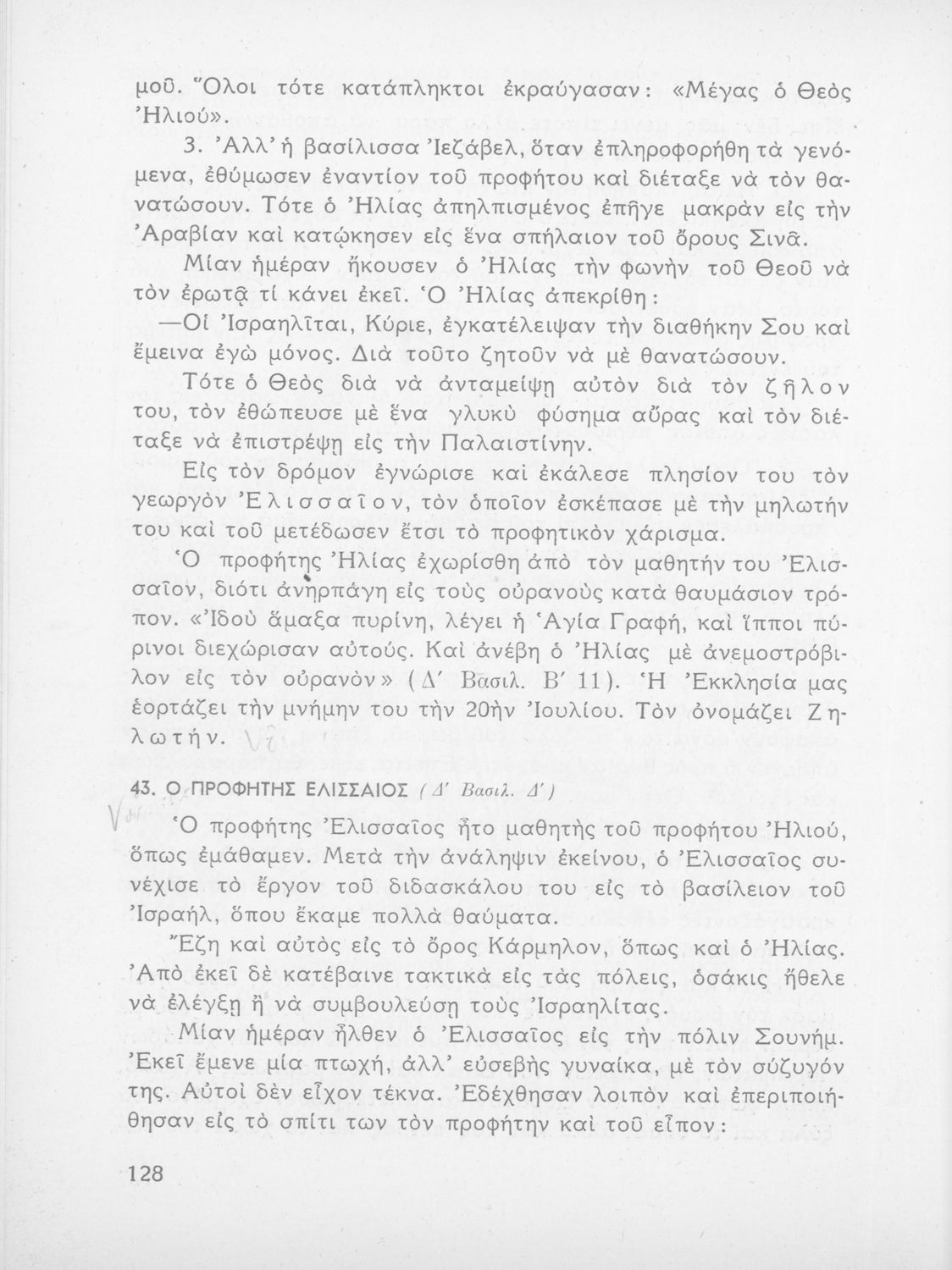 Σχολικό εγχειρίδιο Θρησκευτικών που συνιστά μία εξιστόρηση της Παλαιάς Διαθήκης από τη δημιουργία του κόσμου ως την υποταγή των Εβραίων στους Ρωμαίους. Περιέχει και στοιχεία γεωγραφίας της Παλαιστίνης.