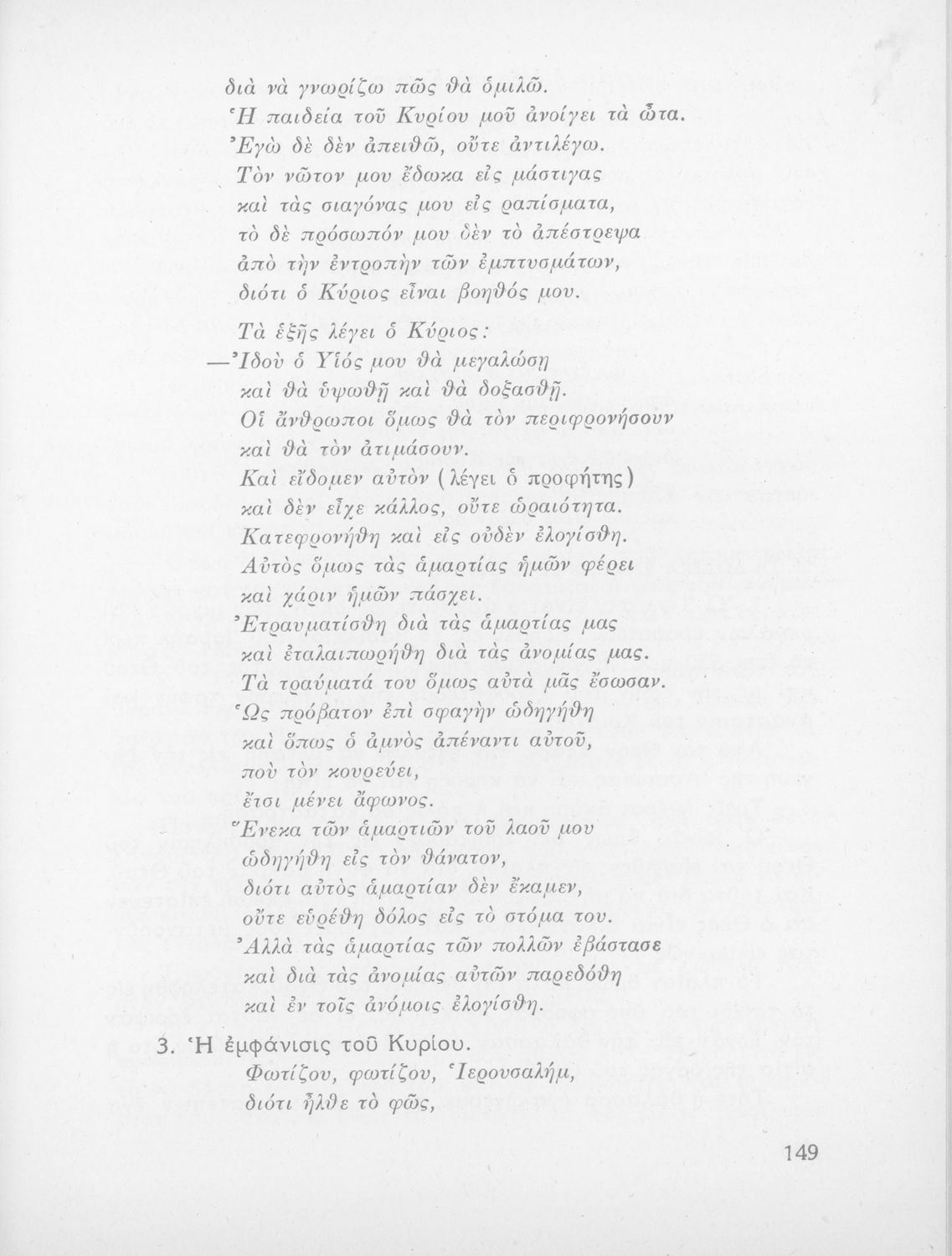 Σχολικό εγχειρίδιο Θρησκευτικών Δημοτικού που συνιστά μία εξιστόρηση της Παλαιάς Διαθήκης από τη δημιουργία του κόσμου ως τους Μακκαβαίους. Περιέχει και ποιήματα θρησκευτικού περιεχομένου.