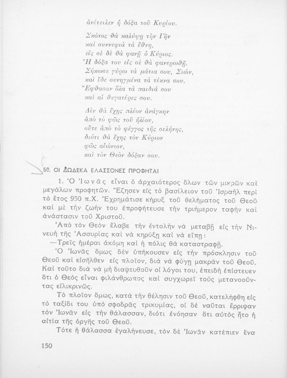 Σχολικό εγχειρίδιο Θρησκευτικών που συνιστά μία εξιστόρηση της Παλαιάς Διαθήκης από τη δημιουργία του κόσμου ως την υποταγή των Εβραίων στους Ρωμαίους. Περιέχει και στοιχεία γεωγραφίας της Παλαιστίνης.