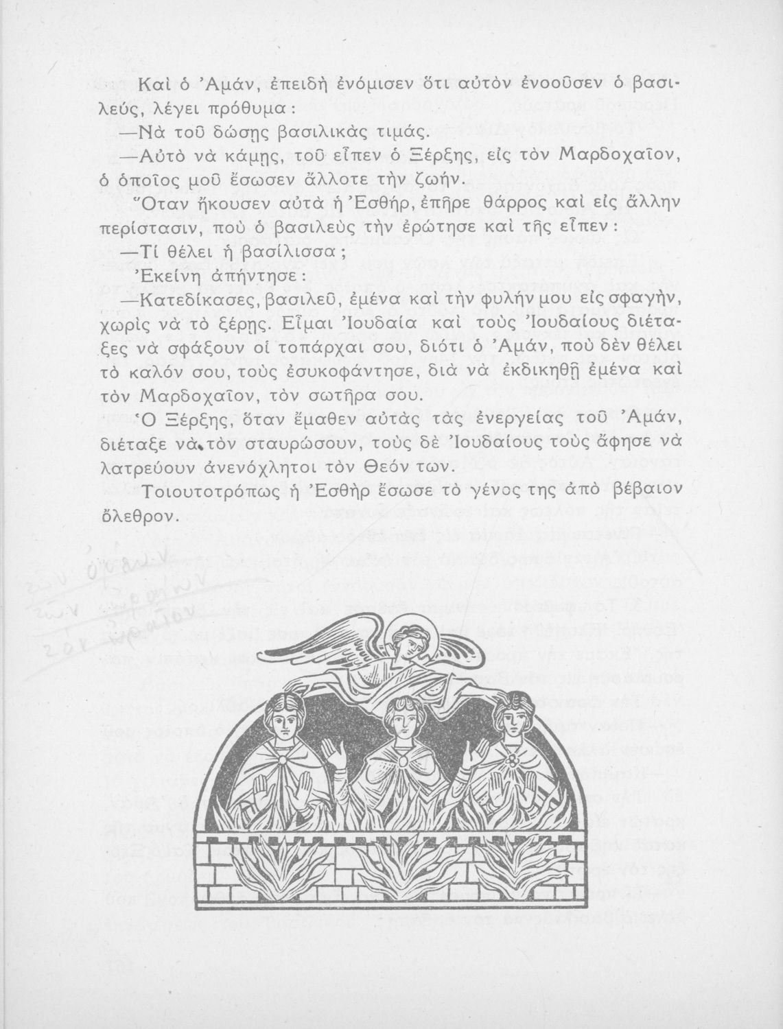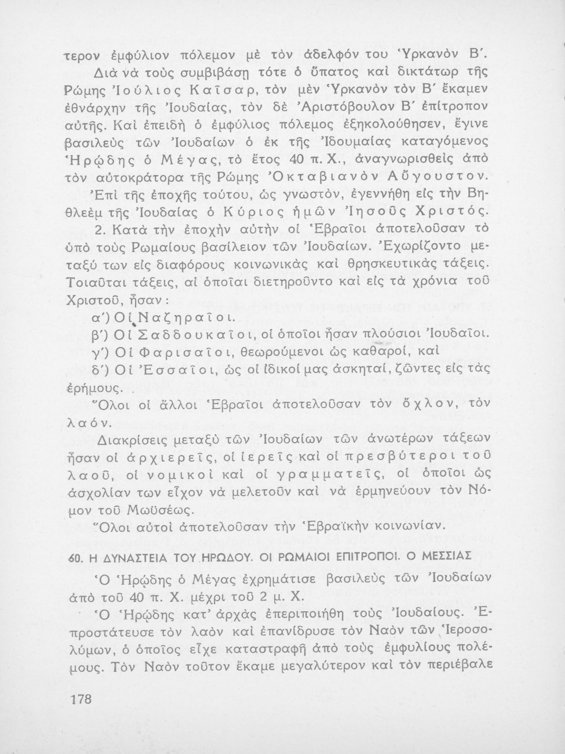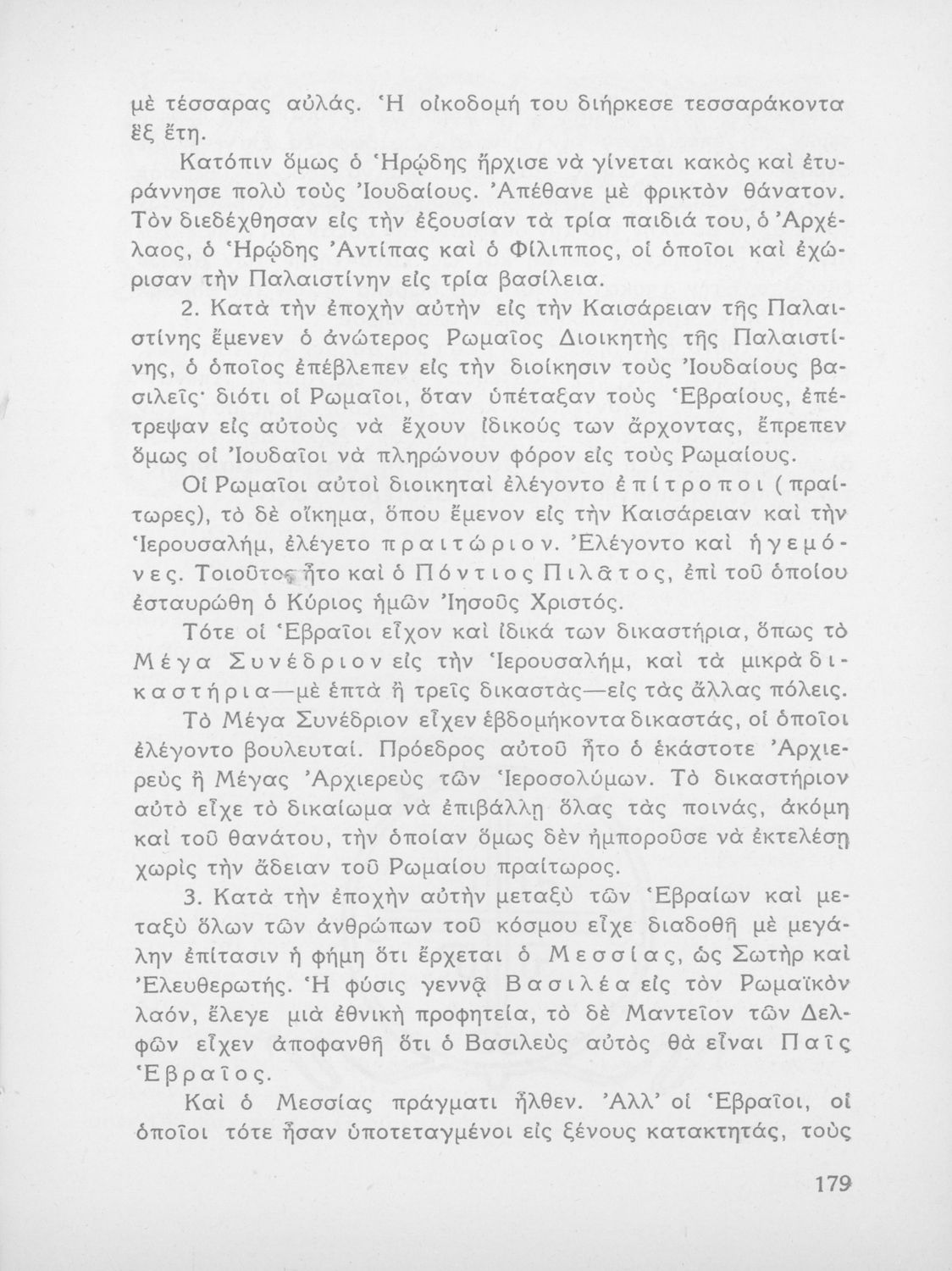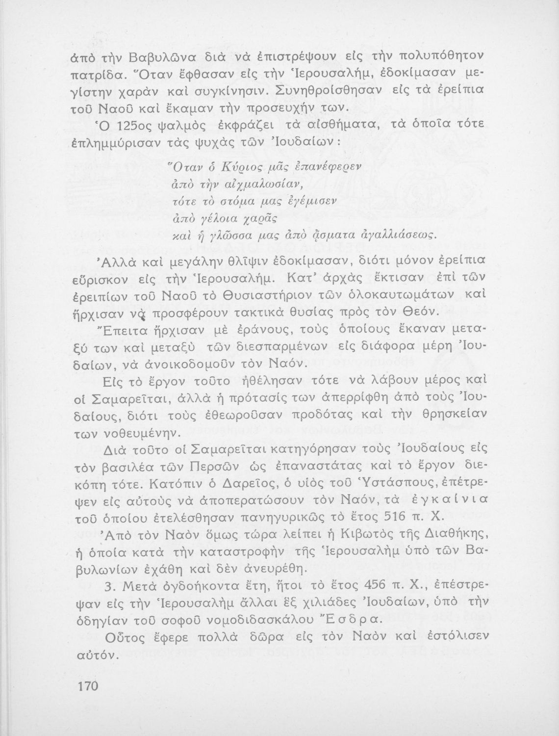 Σχολικό εγχειρίδιο Θρησκευτικών που συνιστά μία εξιστόρηση της Παλαιάς Διαθήκης από τη δημιουργία του κόσμου ως την υποταγή των Εβραίων στους Ρωμαίους. Περιέχει και στοιχεία γεωγραφίας της Παλαιστίνης.