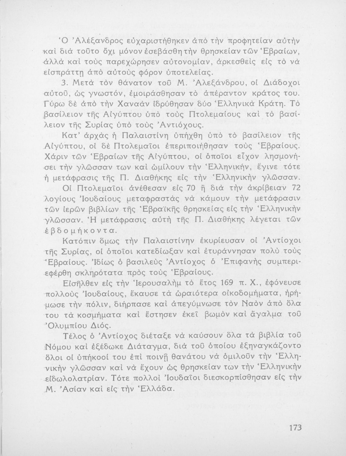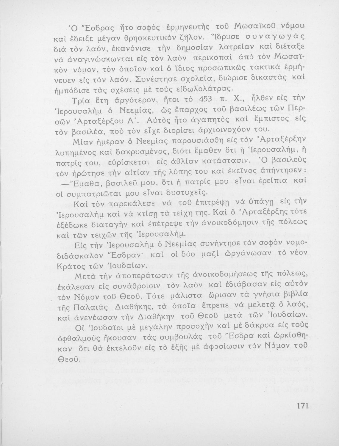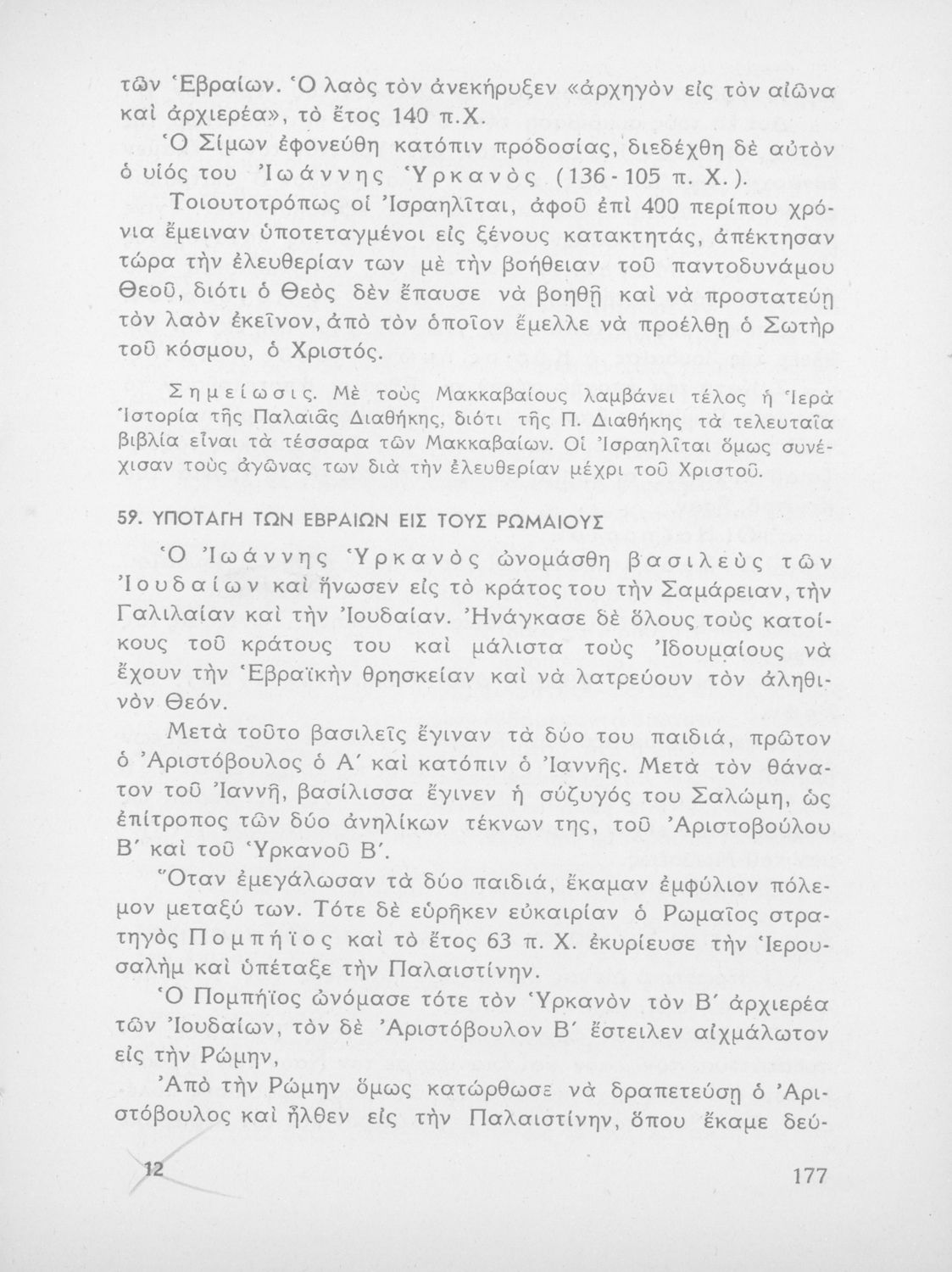 Σχολικό εγχειρίδιο Θρησκευτικών που συνιστά μία εξιστόρηση της Παλαιάς Διαθήκης από τη δημιουργία του κόσμου ως την υποταγή των Εβραίων στους Ρωμαίους.