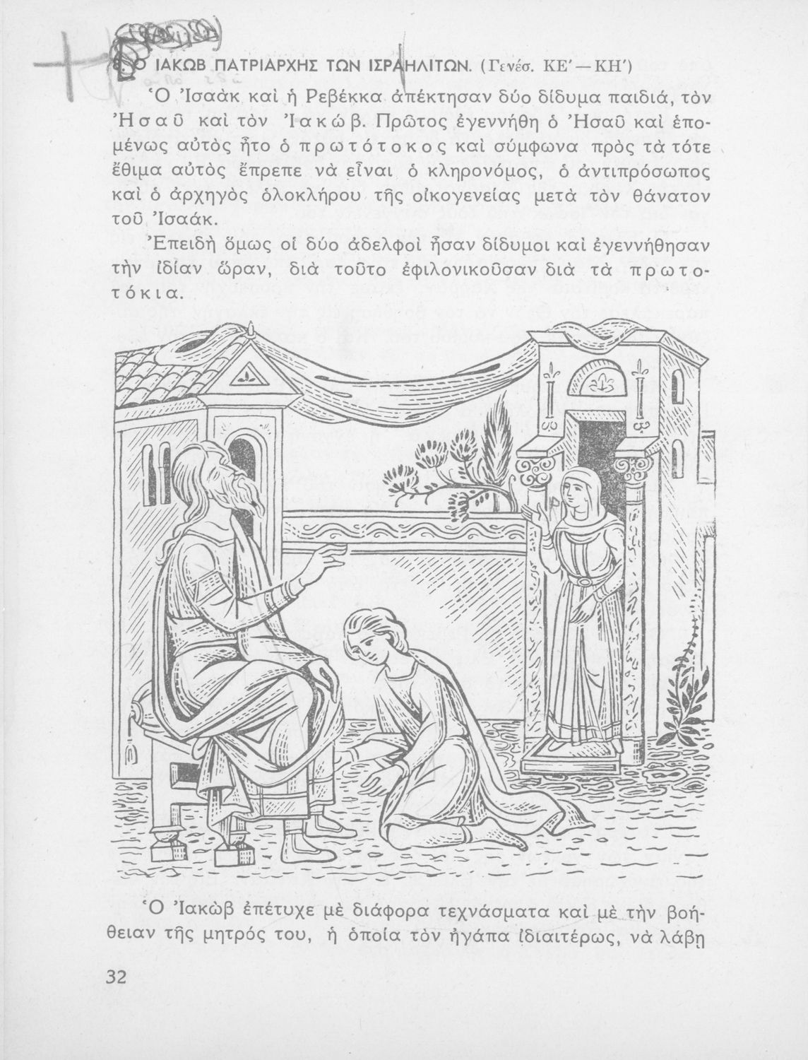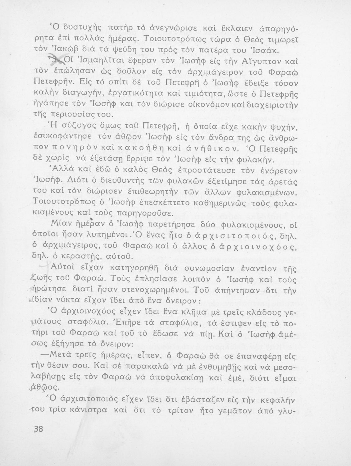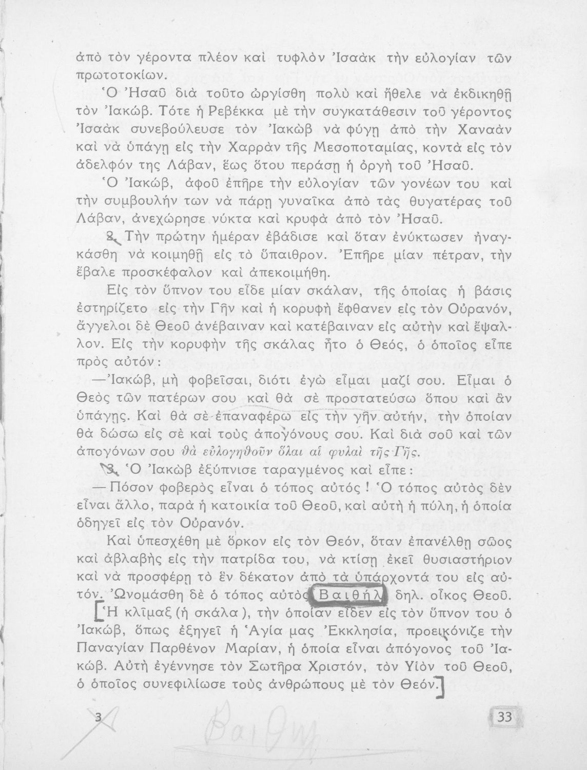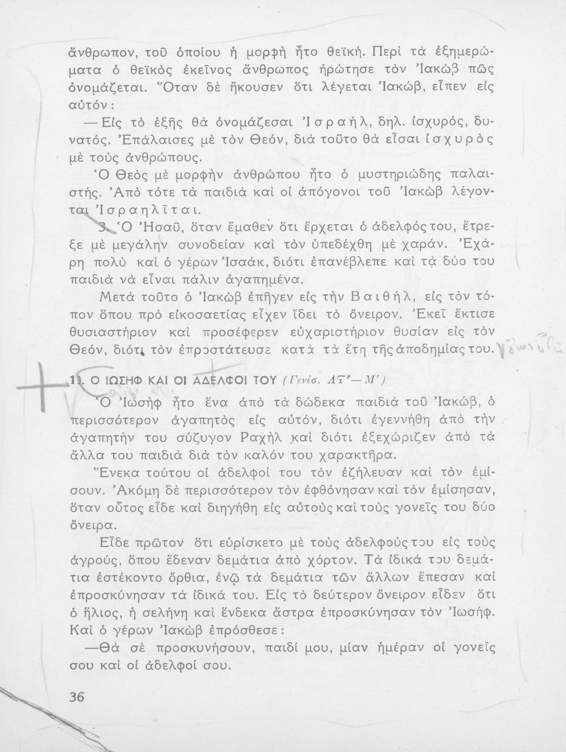 Σχολικό εγχειρίδιο Θρησκευτικών που συνιστά μία εξιστόρηση της Παλαιάς Διαθήκης από τη δημιουργία του κόσμου ως την υποταγή των Εβραίων στους Ρωμαίους. Περιέχει και στοιχεία γεωγραφίας της Παλαιστίνης.