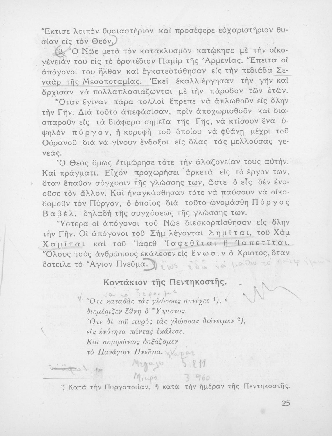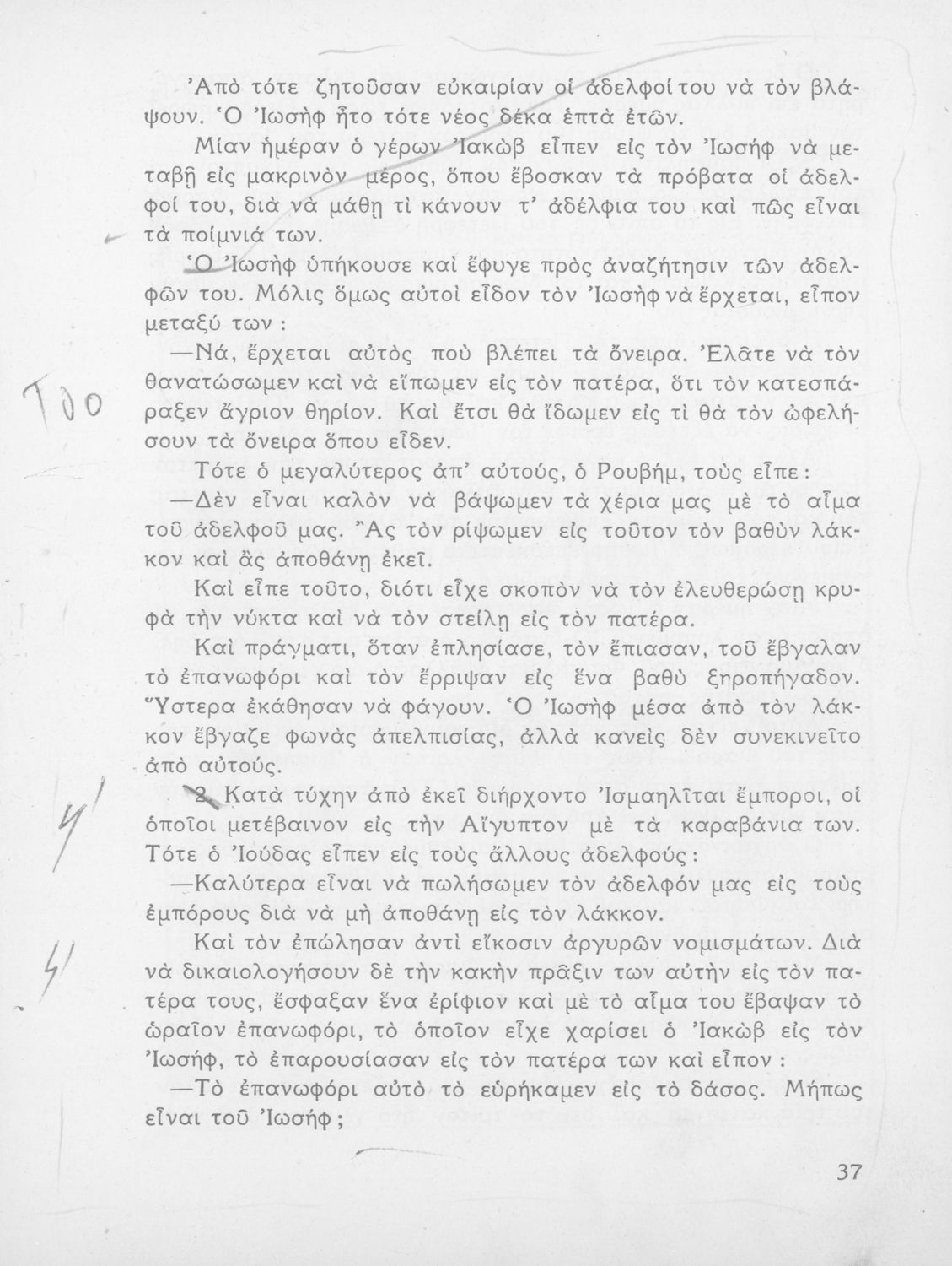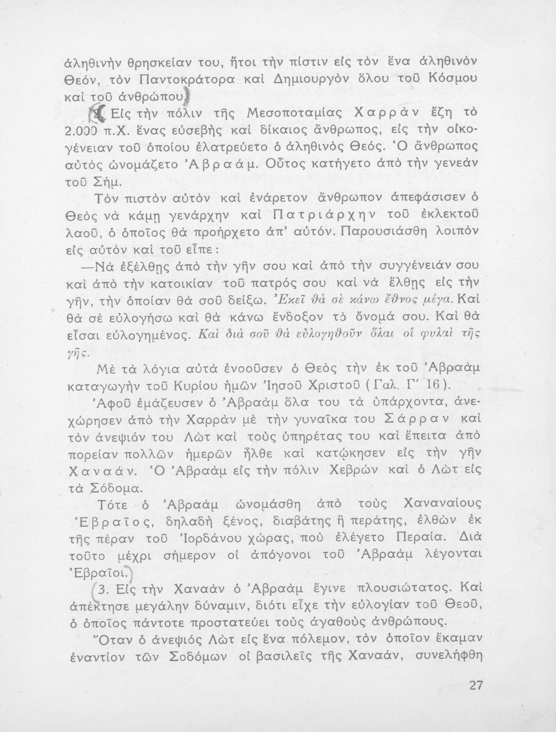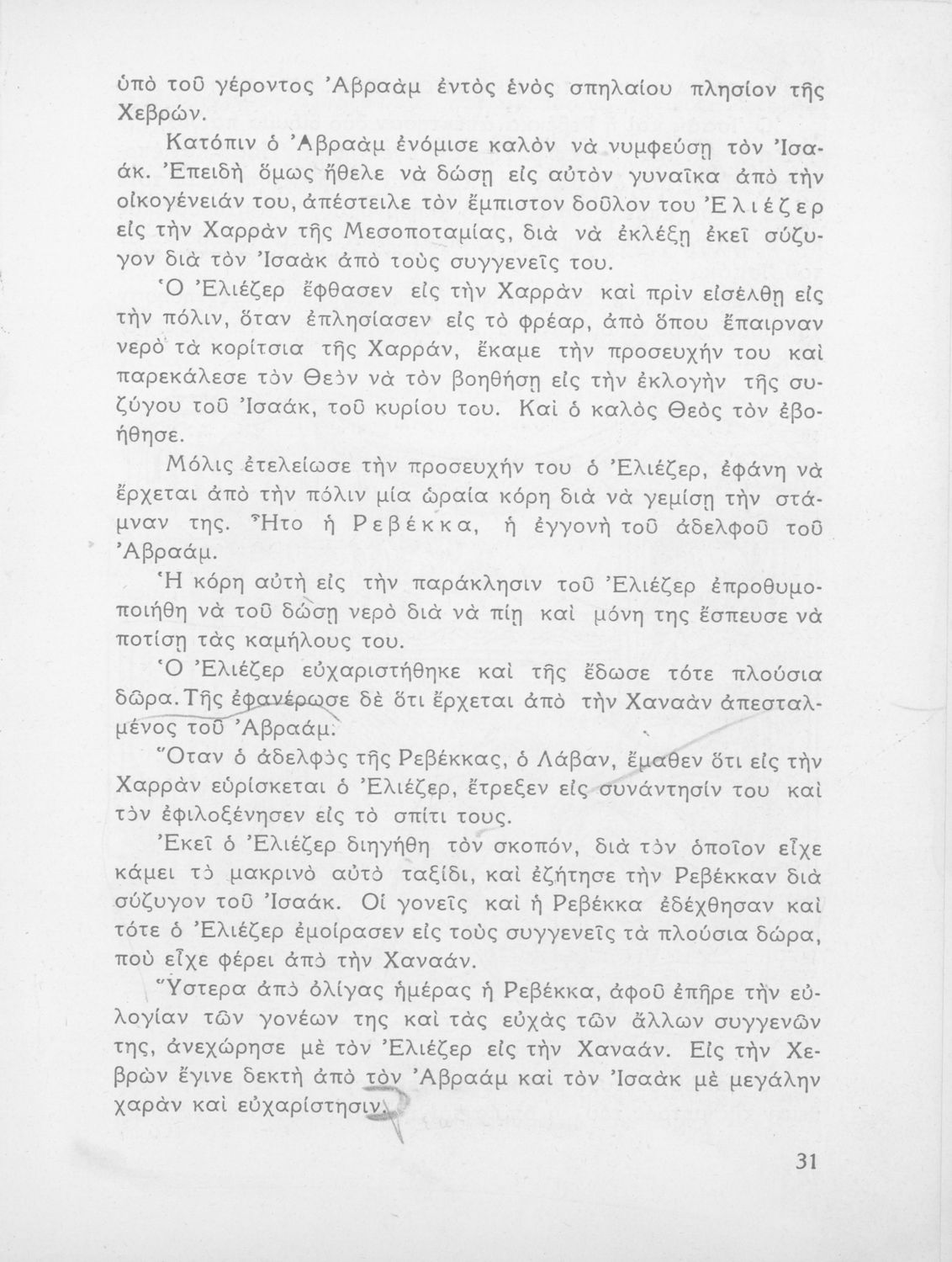 Σχολικό εγχειρίδιο Θρησκευτικών που συνιστά μία εξιστόρηση της Παλαιάς Διαθήκης από τη δημιουργία του κόσμου ως την υποταγή των Εβραίων στους Ρωμαίους. Περιέχει και στοιχεία γεωγραφίας της Παλαιστίνης.