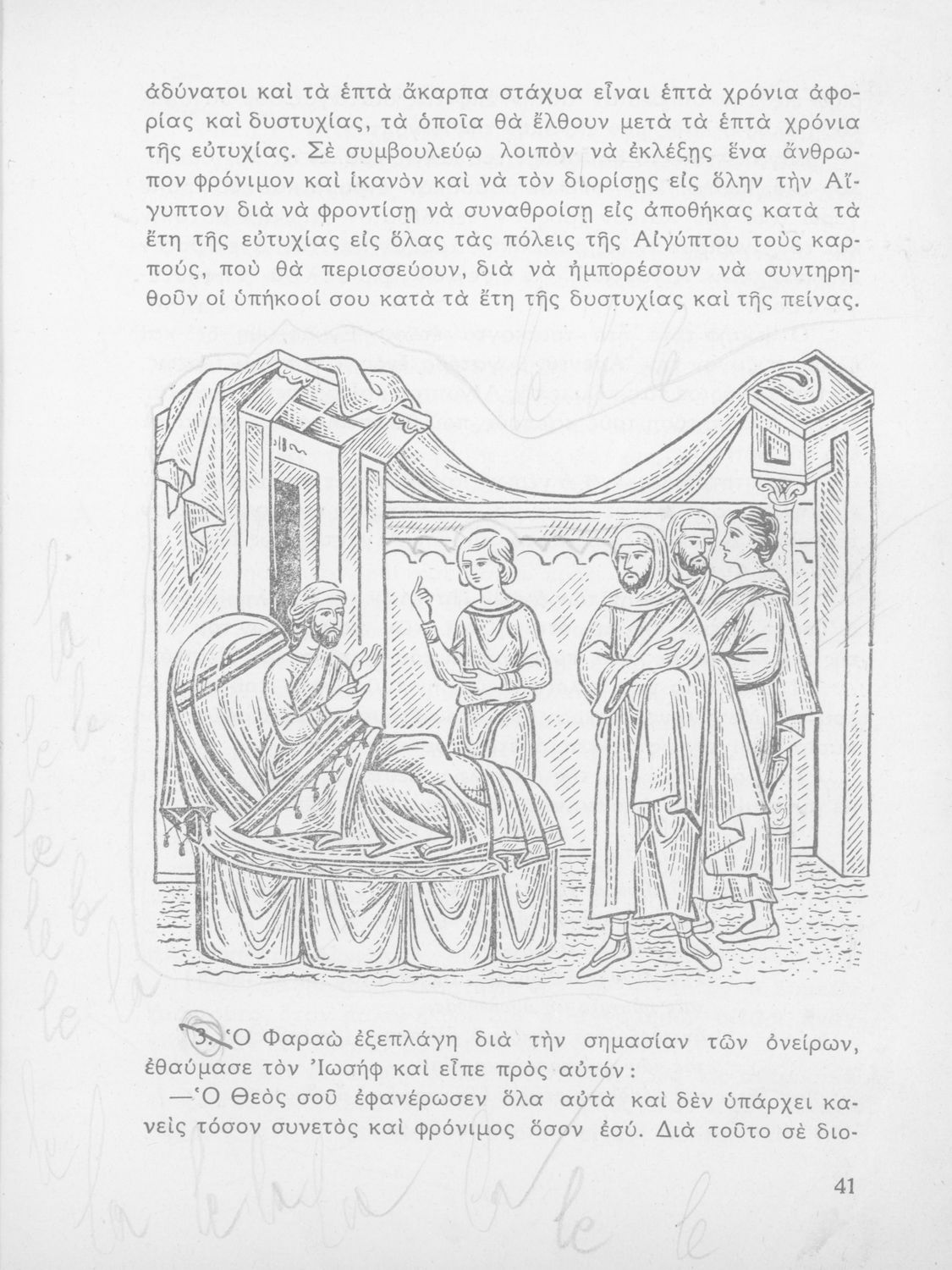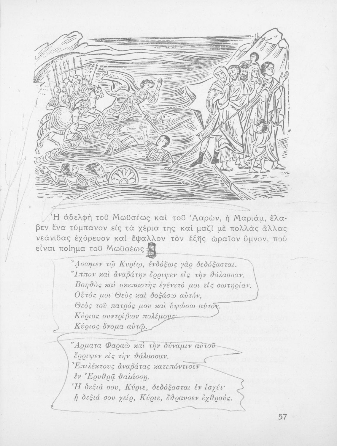Σχολικό εγχειρίδιο Θρησκευτικών Δημοτικού που συνιστά μία εξιστόρηση της Παλαιάς Διαθήκης από τη δημιουργία του κόσμου ως τους Μακκαβαίους. Περιέχει και ποιήματα θρησκευτικού περιεχομένου.