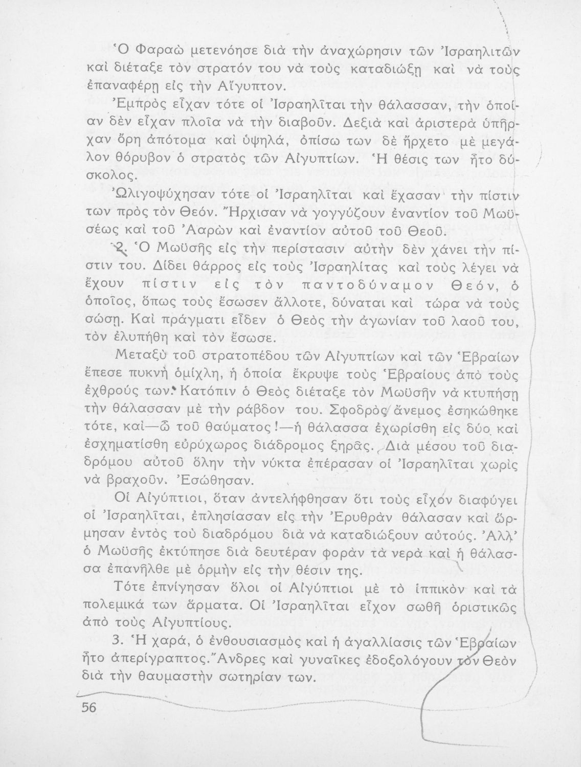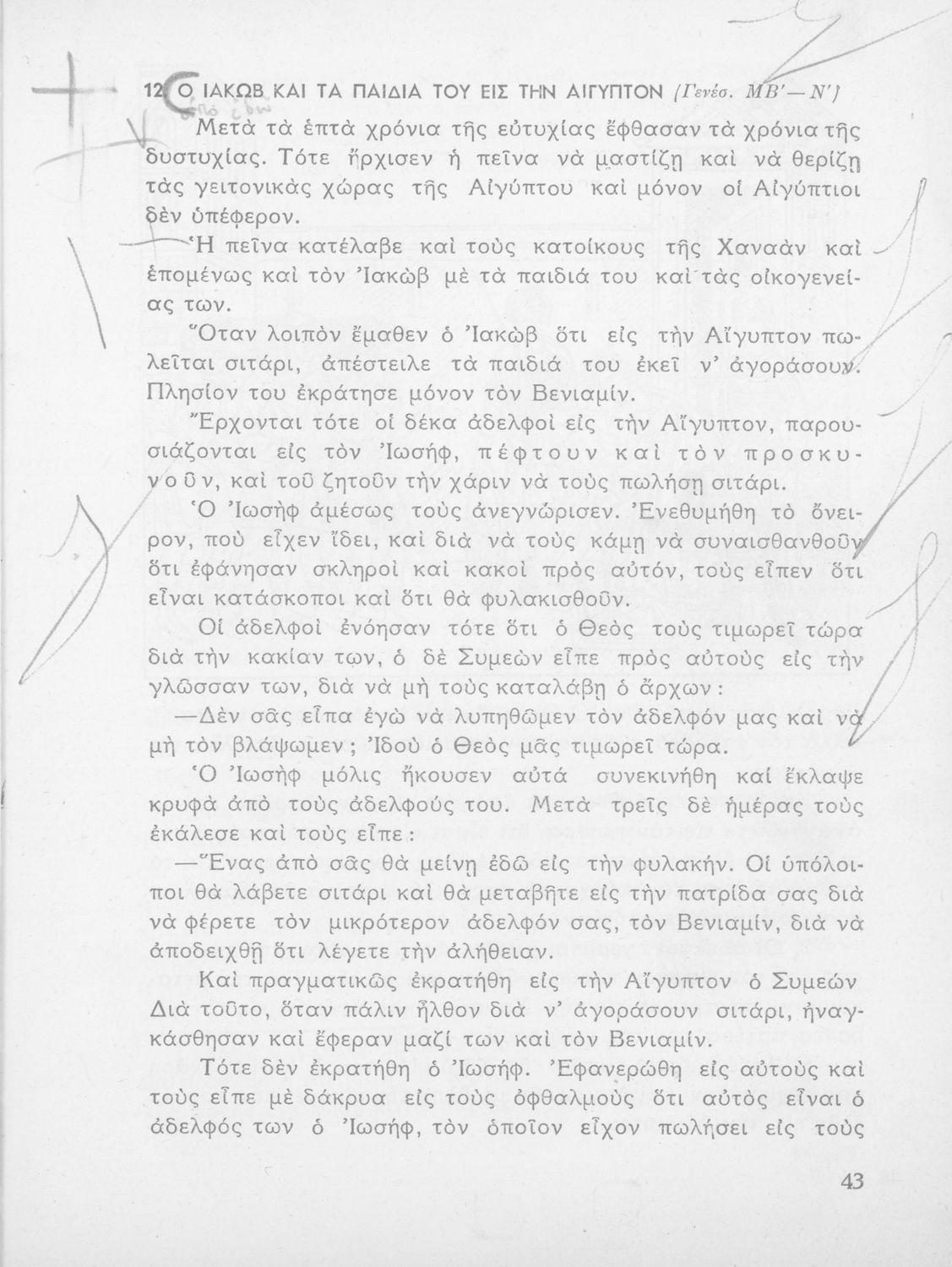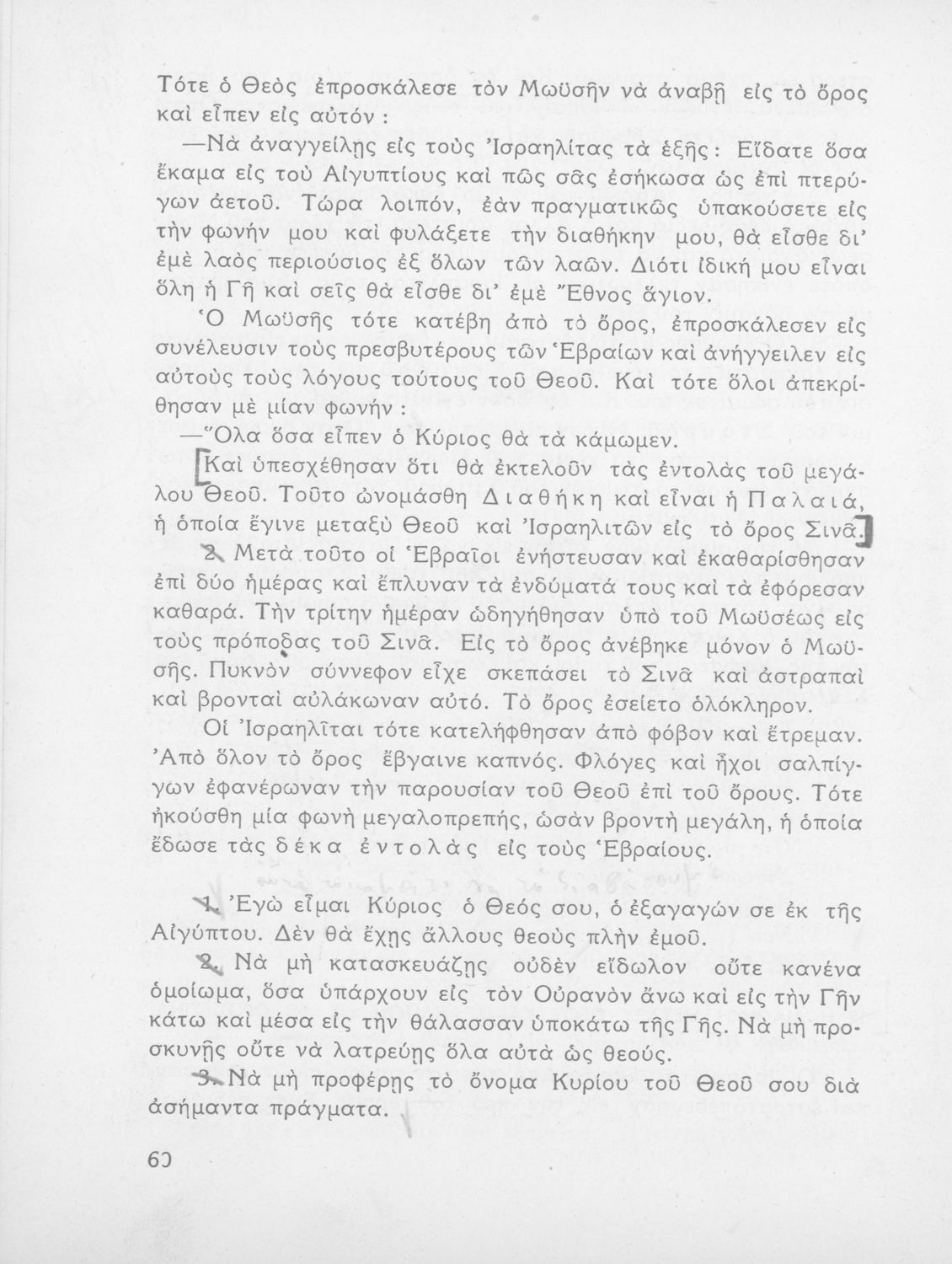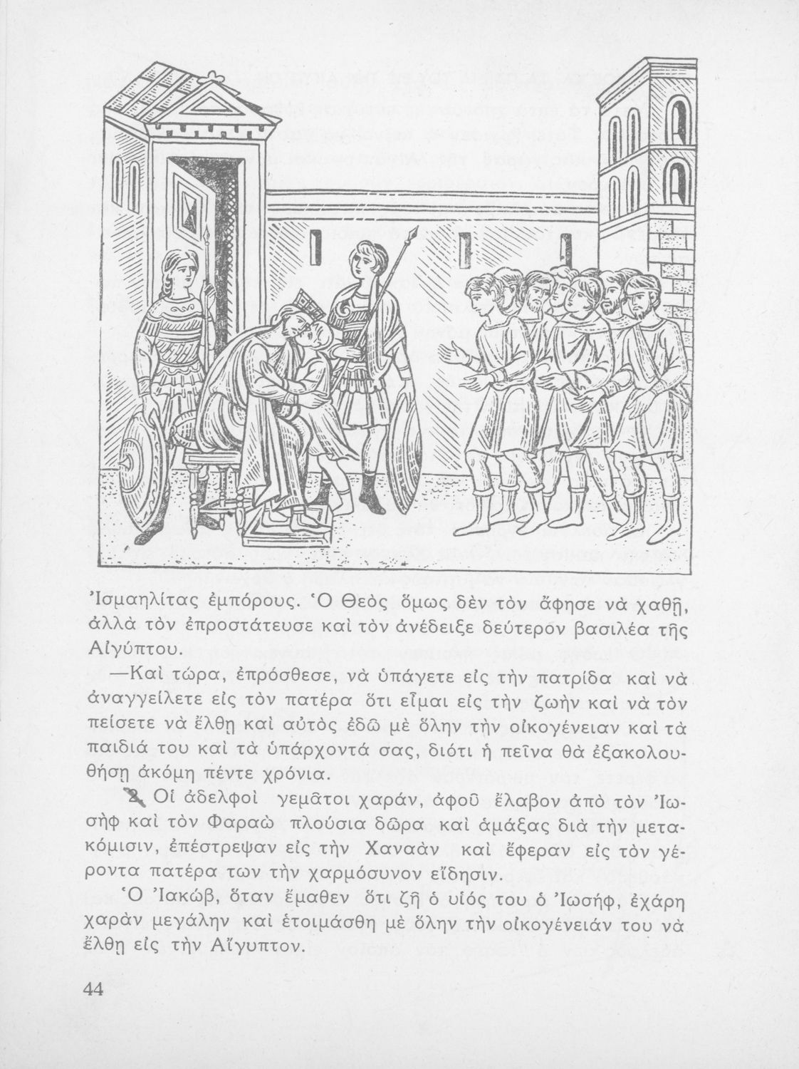 Σχολικό εγχειρίδιο Θρησκευτικών που συνιστά μία εξιστόρηση της Παλαιάς Διαθήκης από τη δημιουργία του κόσμου ως την υποταγή των Εβραίων στους Ρωμαίους. Περιέχει και στοιχεία γεωγραφίας της Παλαιστίνης.