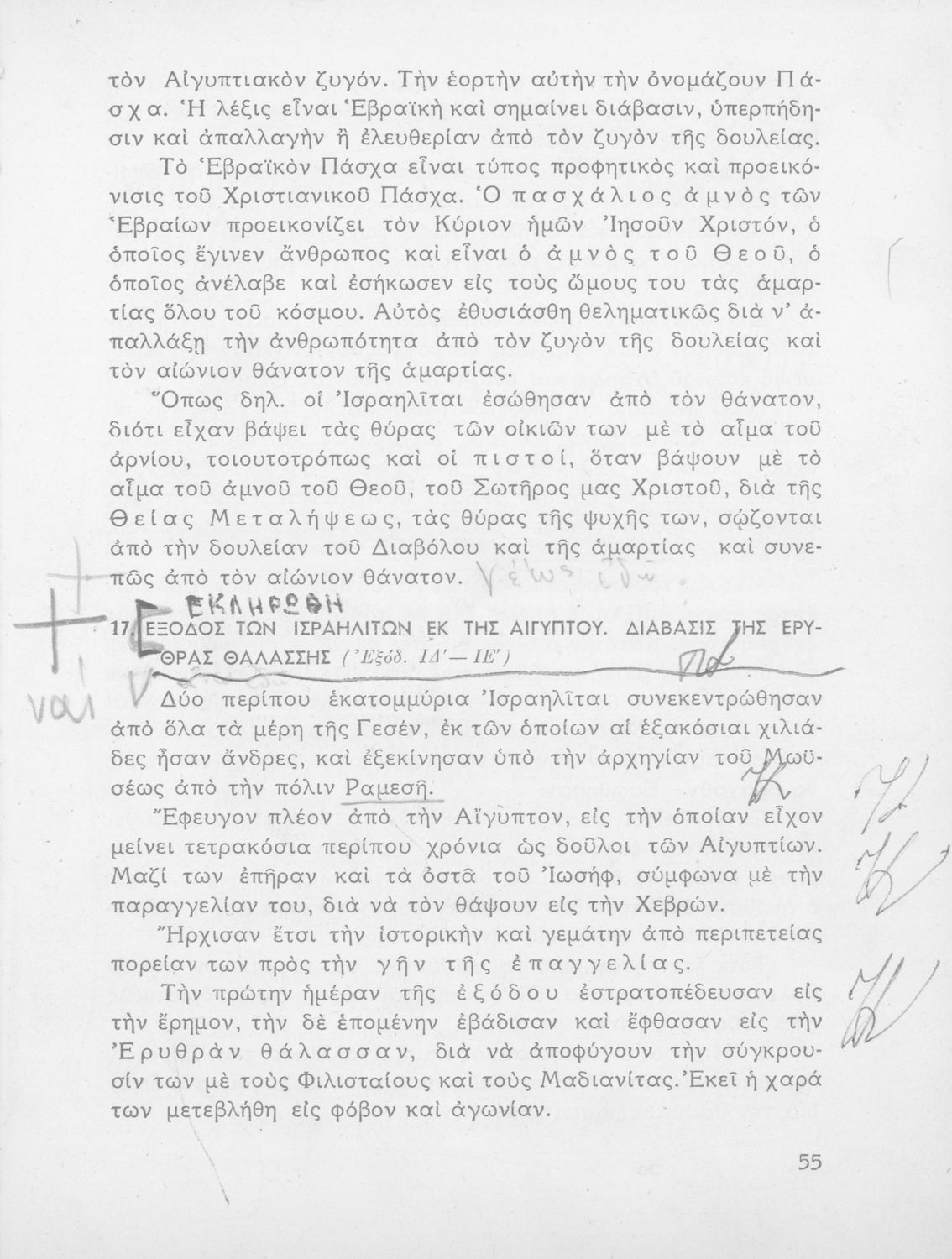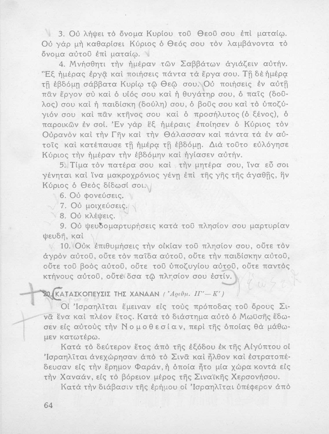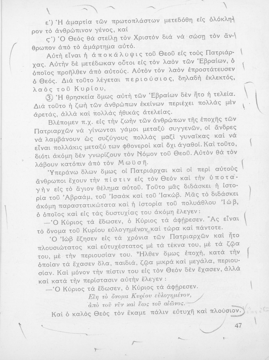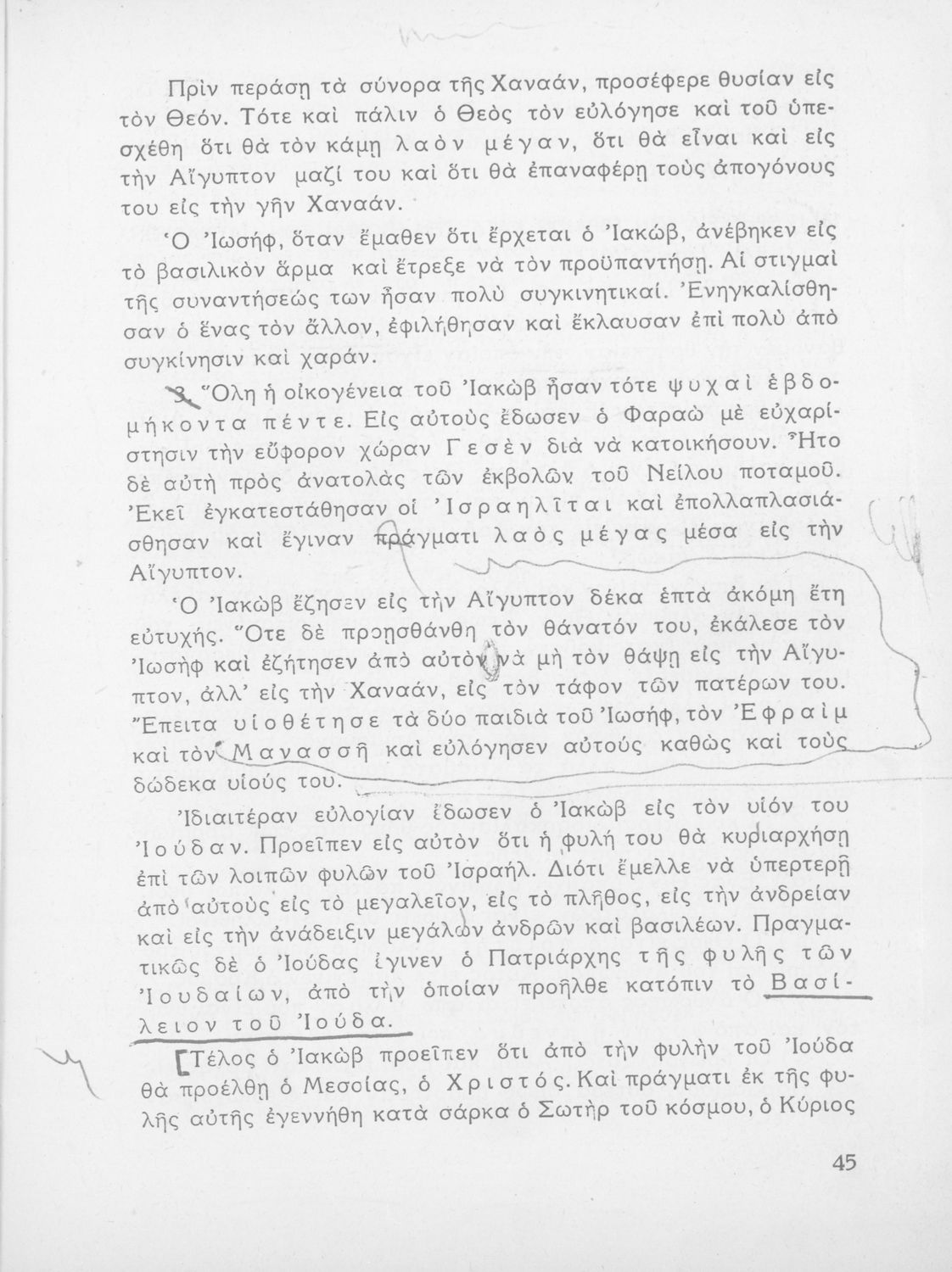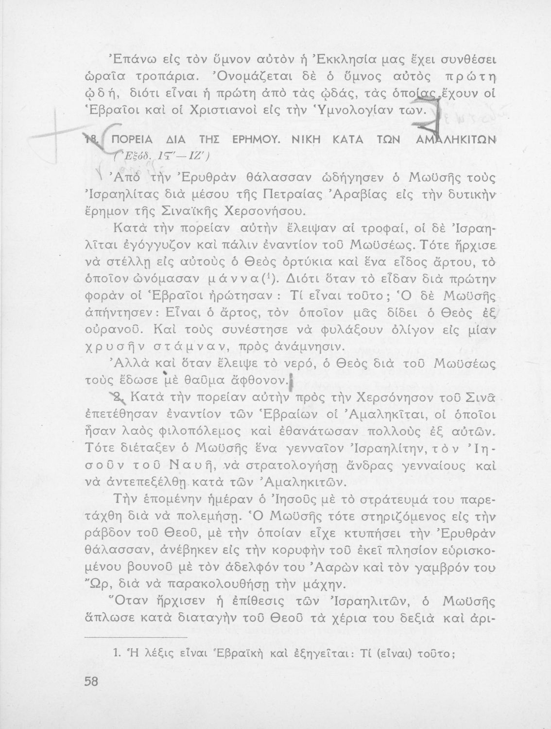 Σχολικό εγχειρίδιο Θρησκευτικών που συνιστά μία εξιστόρηση της Παλαιάς Διαθήκης από τη δημιουργία του κόσμου ως την υποταγή των Εβραίων στους Ρωμαίους. Περιέχει και στοιχεία γεωγραφίας της Παλαιστίνης.