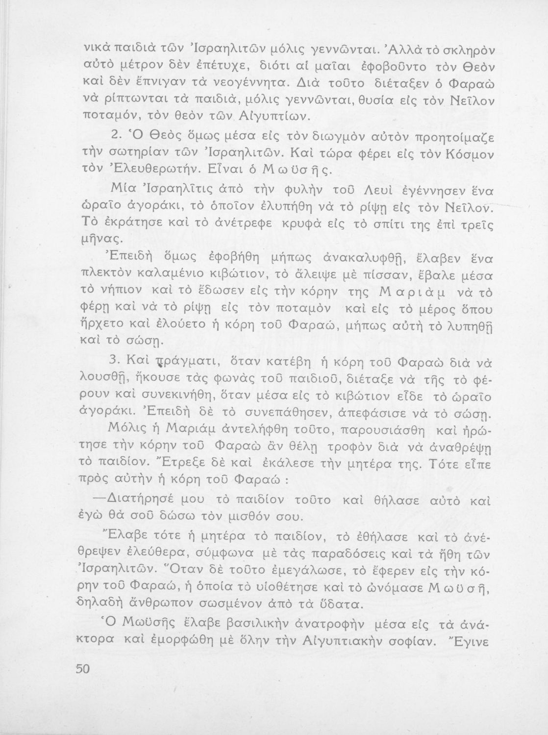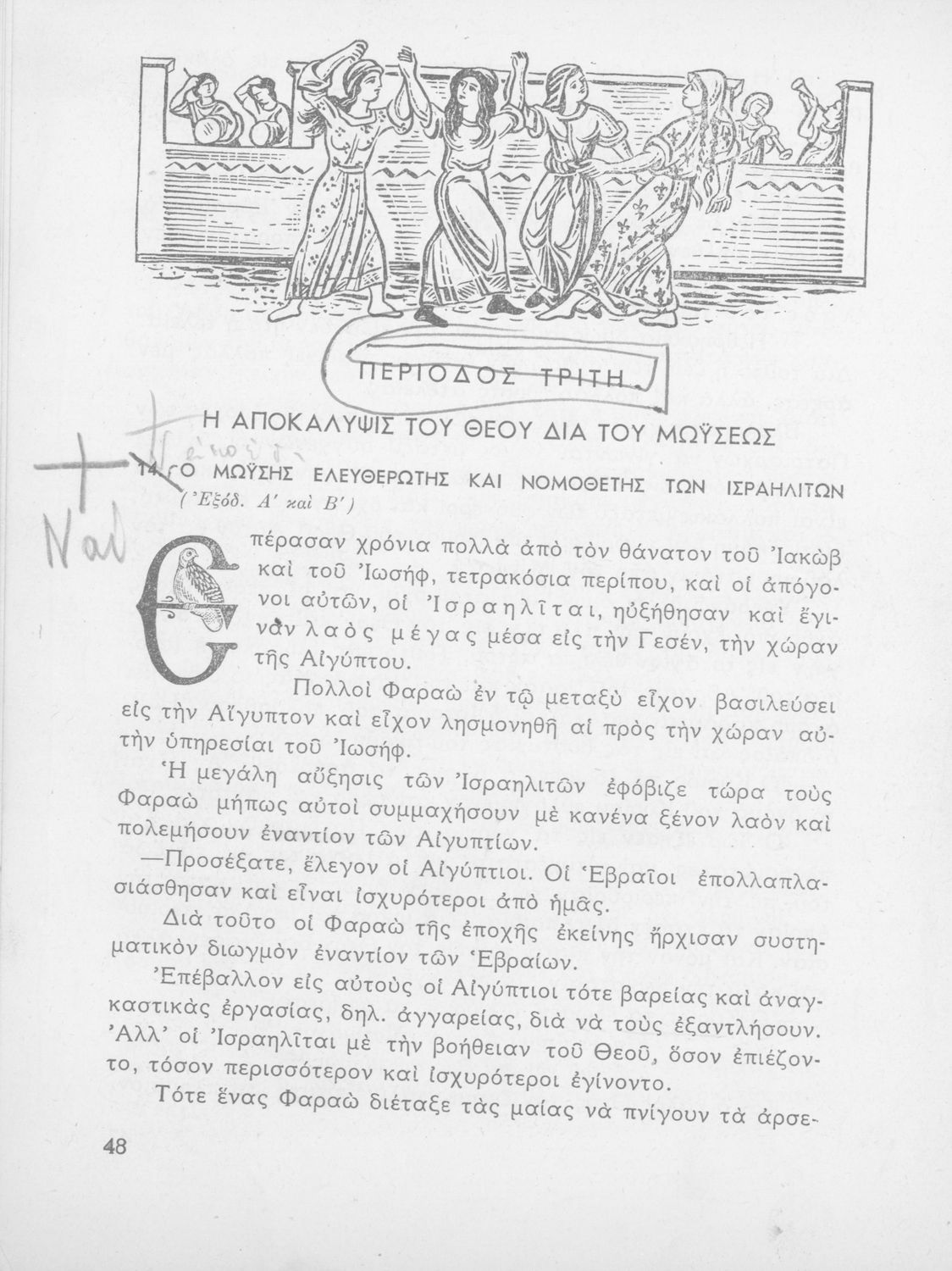 Σχολικό εγχειρίδιο Θρησκευτικών Α΄ Ελληνικού Σχολείου που συνιστά μία εξιστόρηση της Παλαιάς Διαθήκης από τη δημιουργία του κόσμου ως τους Μακκαβαίους.
