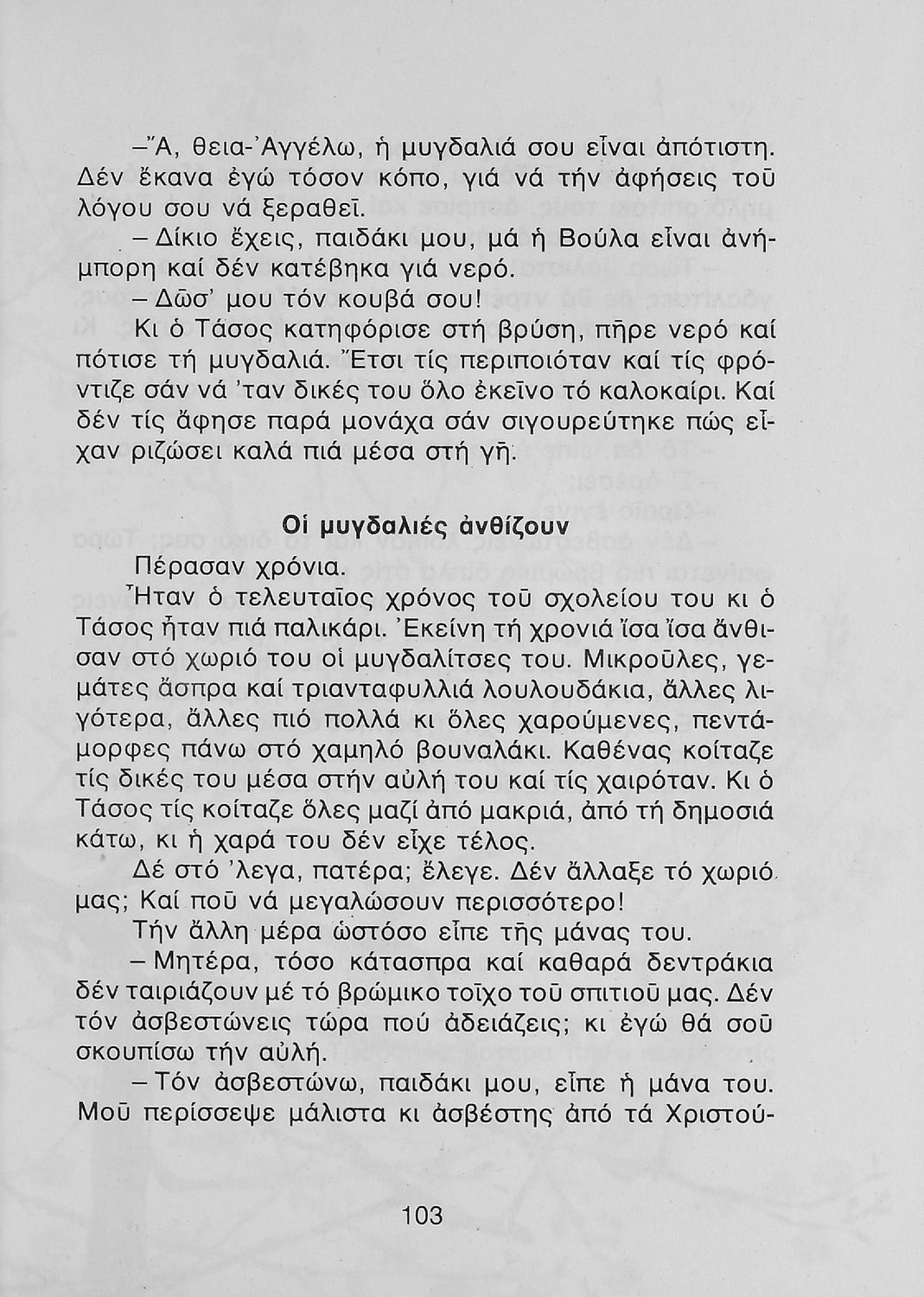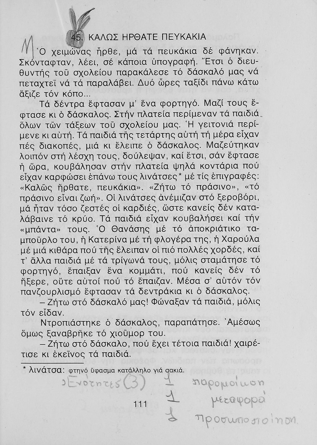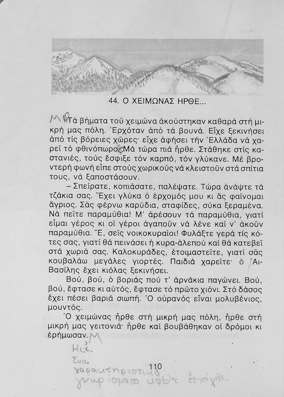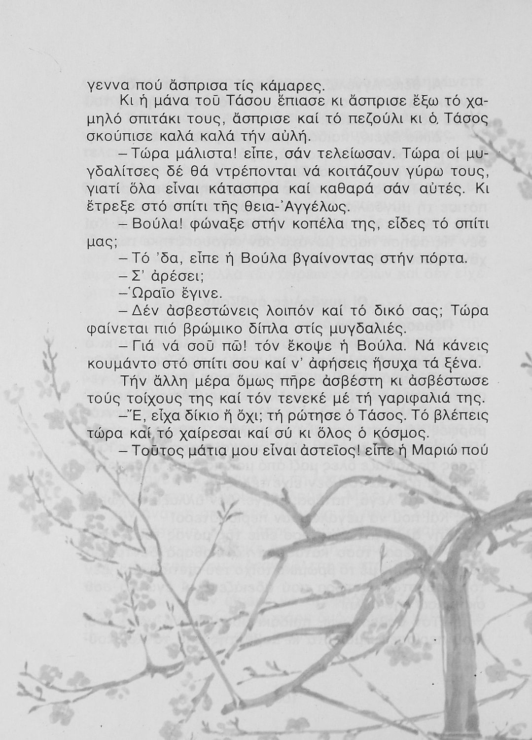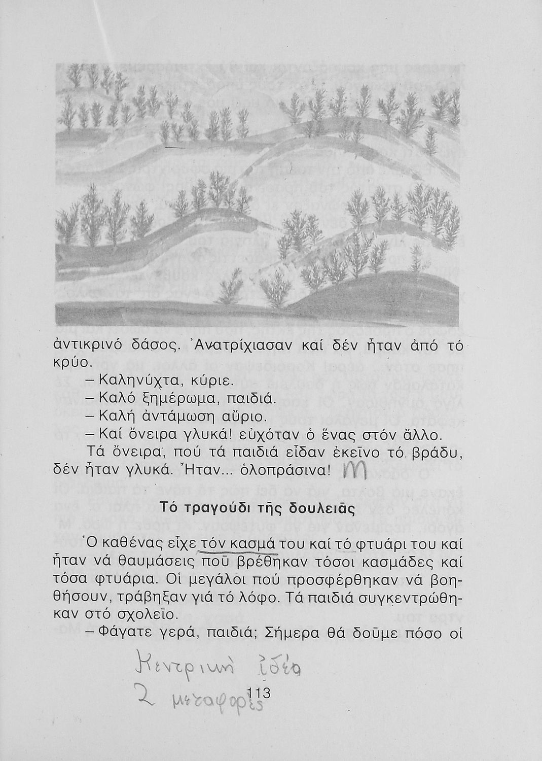 Αναγνωστικό για την Δ΄ τάξη του Δημοτικού. Περιλαμβάνει ένα κείμενο στο οποίο παρεμβάλλονται ποιήματα δημοτικά και Ελλήνων ποιητών.