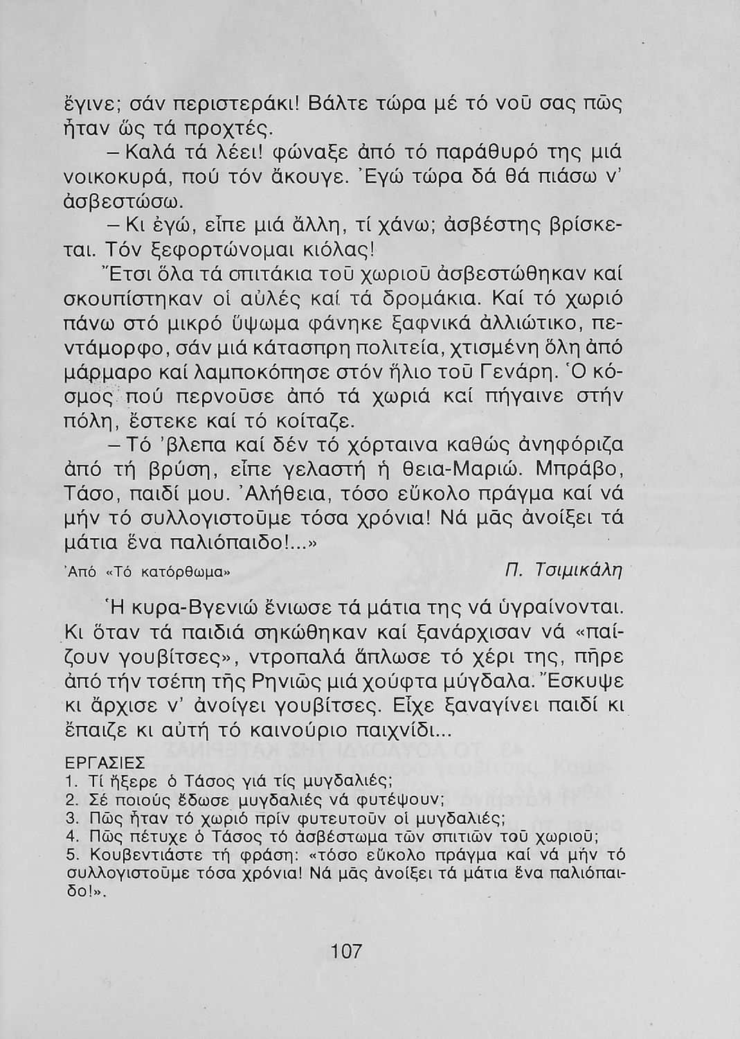 Αναγνωστικό Δ΄ Δημοτικού που περιέχει πεζά και ποιήματα με περιεχόμενο διδακτικό και ηθικοπλαστικό εμπνευσμένα από την αγροτική ζωή και κοινωνική ζωή, την ελληνική φύση και παράδοση, και τις ασχολίες των ...