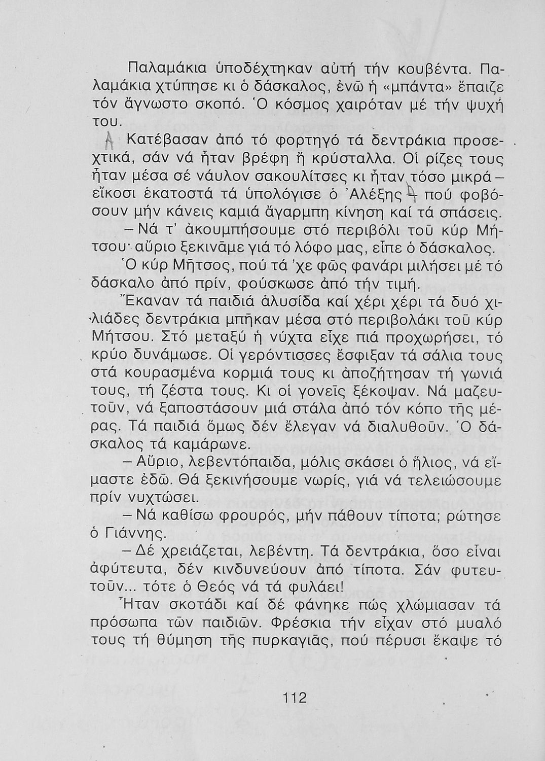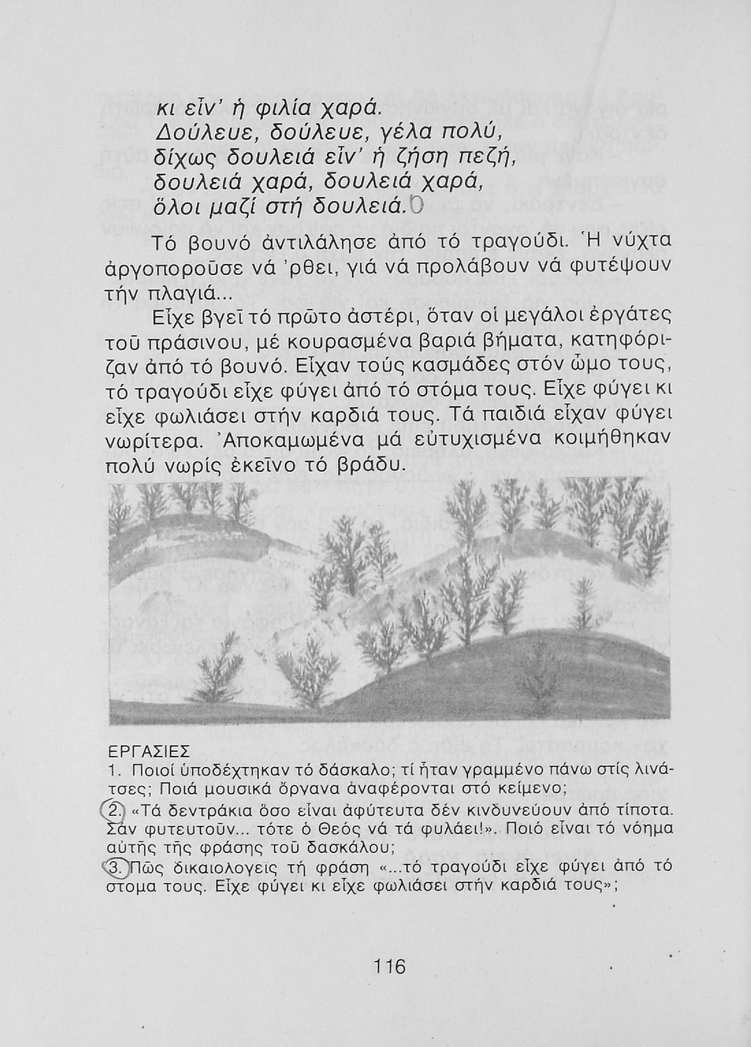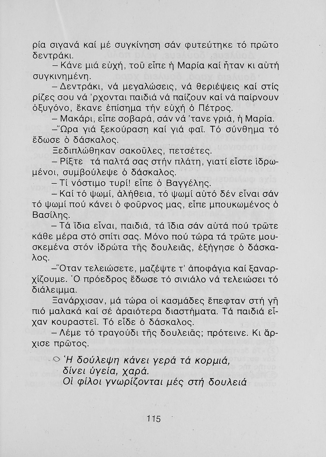 Αναγνωστικό Δ΄ Δημοτικού που περιέχει πεζά και ποιήματα με περιεχόμενο διδακτικό και ηθικοπλαστικό εμπνευσμένα από την αγροτική ζωή και κοινωνική ζωή, την ελληνική φύση και παράδοση, και τις ασχολίες των ανθρώπων. Περιλαμβάνει και σύντομα βιογραφικά σημειώματα των συγγραφέων.