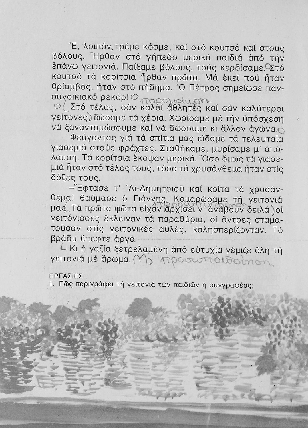 Αναγνωστικό Δ΄ Δημοτικού που περιέχει πεζά και ποιήματα με περιεχόμενο διδακτικό και ηθικοπλαστικό εμπνευσμένα από την αγροτική ζωή και κοινωνική ζωή, την ελληνική φύση και παράδοση, και τις ασχολίες των ...